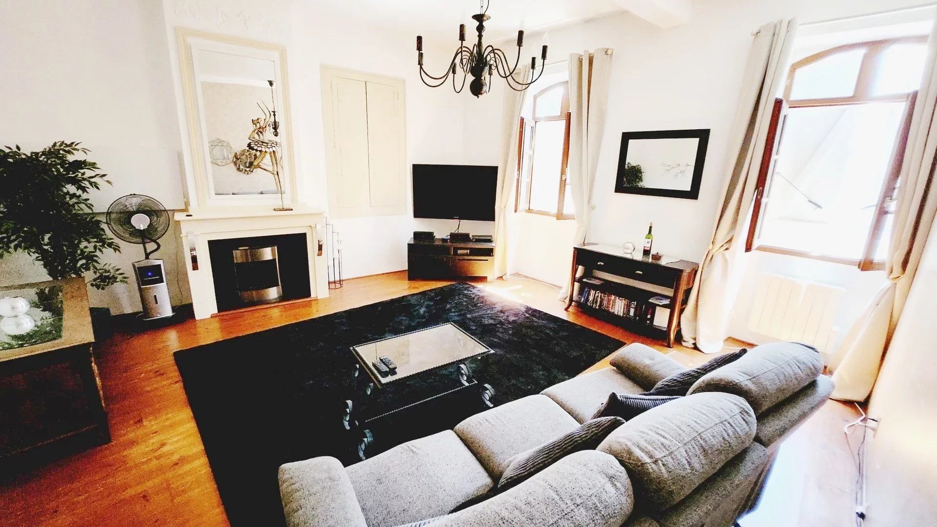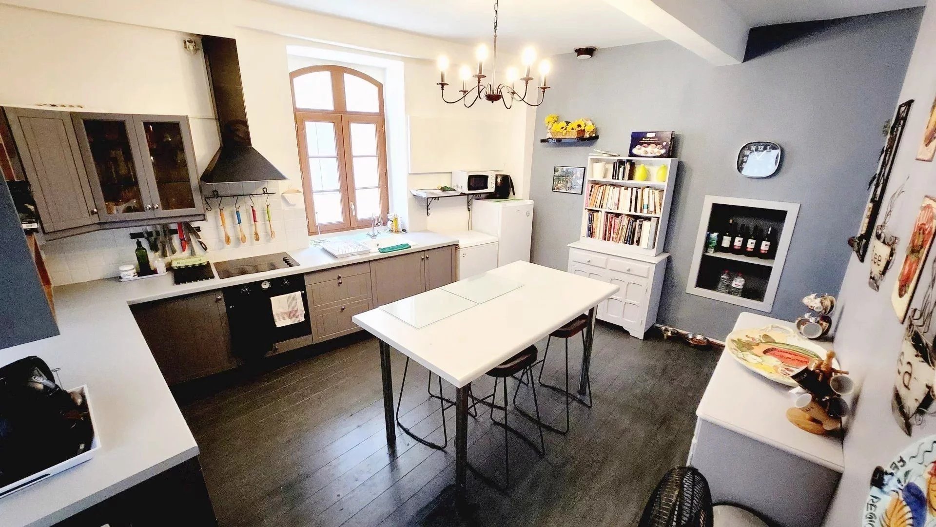 Belle maison en pierre entièrement rénovée .120m² d'espace avec hauts plafonds, cheminées et parquet très lumineux avec vue sur la rivière depuis le 1er et 2ème étage. Il y a aussi deux caves de 41m² RDC : Hall, SAM et grande cuisine entièrement équipée. Sous-sol Cave 1 20m² Cave 2 21m². 1er étage .WC/salle d'eau, Sejour 25m² chambre 1 avec baignoire 13m².2ème étage Chambre 2 27m²,Chambre 4 12m²,Douche/WC 4m².