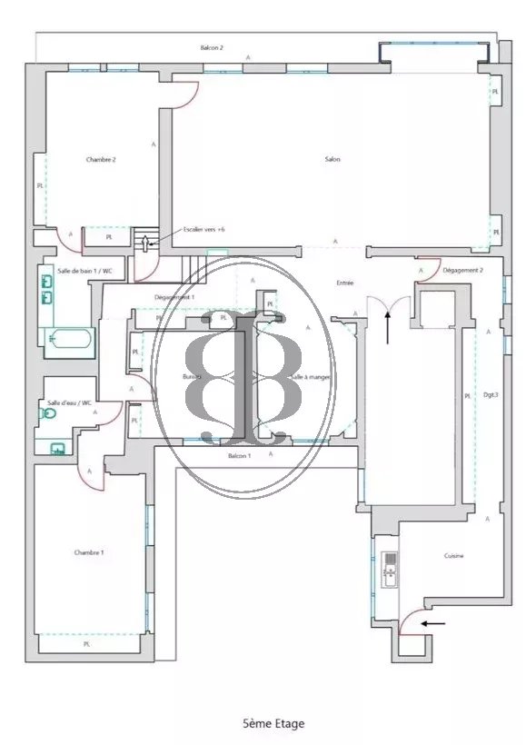 Appartement au 5e étage, seul sur le palier, dans un immeuble en pierre de taille traversant (nord-ouest et sud-est). Il se compose d'un double séjour avec un balcon de 8,32m2 offrant une vue surr les toits de Paris, ainsi que d'une salle à manger séparée. L'appartement dispose de 4 chambres dont 1 transformée en bureau. Une SDB/ WC et une salle d'eau/ WC complètent l'ensemble. La cuisine, charmante, est séparée et équipée. L'appartement est entièrement entouré d'un balcon privatif de 11,63m2 sur cour, décoré de rosiers. Au 6e étage, une chambre de 12 m2 avec sa propre salle de bain/ WC. Appartement lumineux, aménagé avec beaucoup de goût