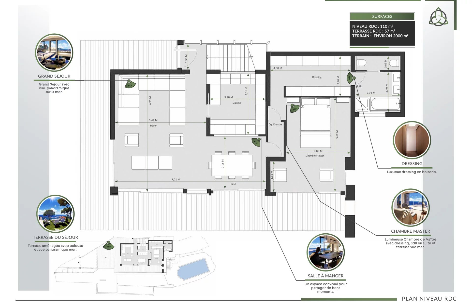 Estelle vous présente la dernière opportunité de saisir une villa d'exception livrée mi-septembre 2024, offrant une vue époustouflante sur la mer et la presqu'île de Roquebrune Cap Martin. Nichée dans un domaine luxueux et intime comprenant seulement trois villas neuves, cette propriété se trouve dans un environnement calme et sécurisé. Localisation : Cette villa bénéficie d'un emplacement idéal, offrant un cadre de vie exceptionnel dans un environnement paisible et verdoyant. Proche de la nature et des commodités, elle permet un accès facile aux villes voisines telles que Monaco et Nice, faisant de ce lieu une résidence idéale. Description : Entièrement rénovée avec des prestations de haute qualité, la villa est bâtie sur un terrain de 2000 m². Elle s'élève sur un étage et se distingue par son entrée accueillante comprenant un garage pour deux voitures et de spacieux espaces verts agrémentés d'une piscine offrant une vue spectaculaire. Au rez-de-jardin, un vaste séjour avec cuisine s'ouvre sur une large terrasse avec vue. Ce niveau comprend également une suite parentale avec dressing aménagé sur mesure et une salle d'eau équipée d'une douche, d'une baignoire et de toilettes. Un escalier mène à l'étage inférieur, où se trouvent trois chambres en suite, chacune avec son propre dressing et sa salle de bain ou douche avec toilettes. En outre, le lotissement offre la possibilité de garer plusieurs voitures, assurant ainsi un confort maximal pour les résidents et leurs invités. Cette villa représente une opportunité rare de vivre dans un cadre luxueux, alliant sérénité, confort et beauté naturelle, au cœur de l'une des régions les plus prisées de la Côte d'Azur. Profitez de cette chance unique de posséder une résidence d'exception avec des vues imprenables et des prestations haut de gamme. Honoraires à charge vendeur. Les informations sur les risques auxquels ce bien est exposé sont disponibles sur le site Géorisques: georisques.gouv.fr