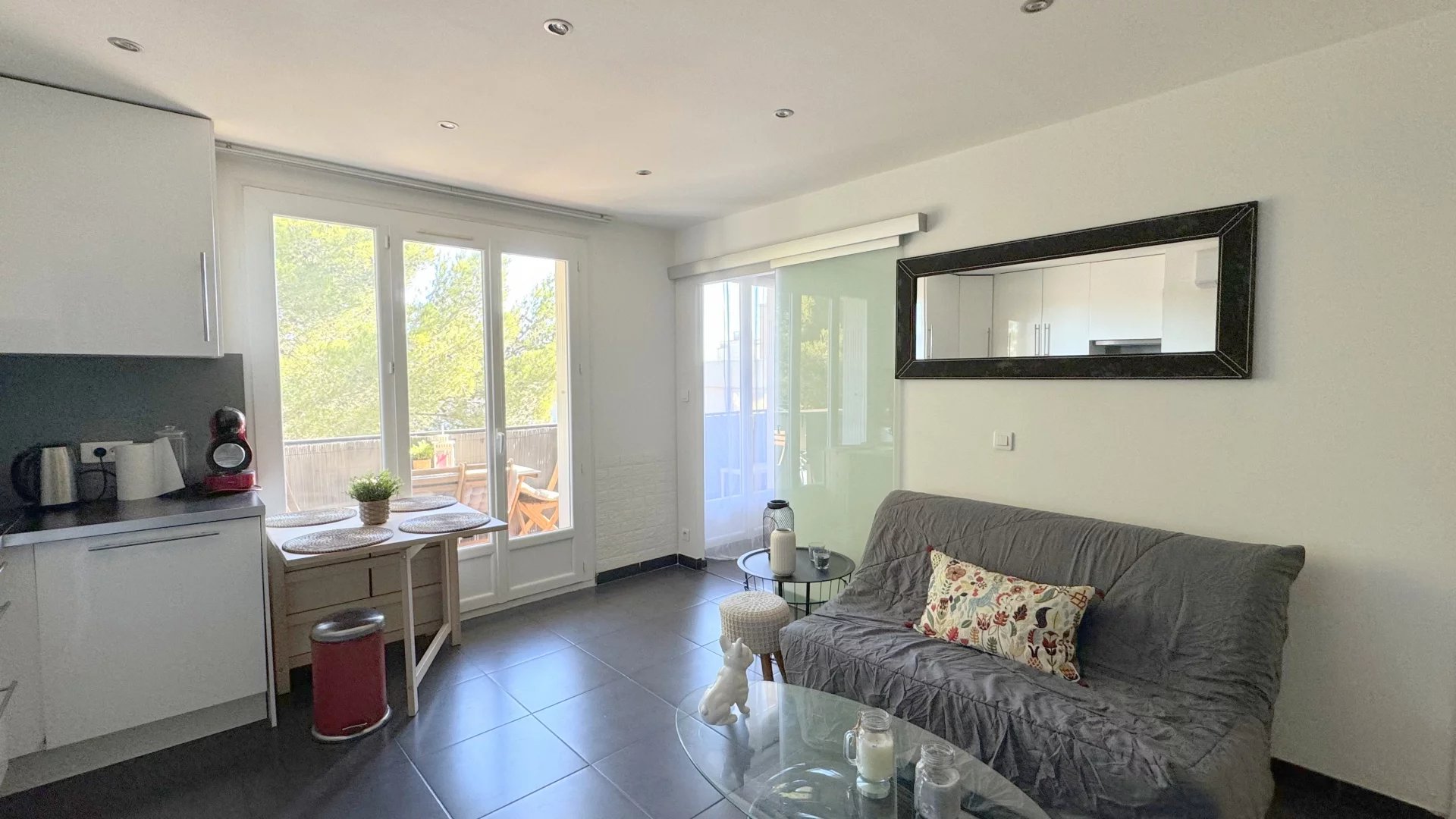 Quartier prisé de Fabrégas à La Seyne sur mer. T2 en dernier étage avec vue dégagée au calme. Entièrement rénové et équipé, séjour avec coin cuisine, chambre séparée, salle d'eau avec wc. Accès sur le balcon depuis le séjour et la chambre. Place de parking privative.