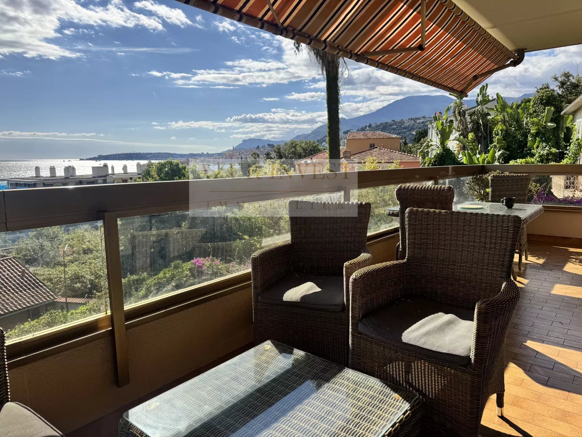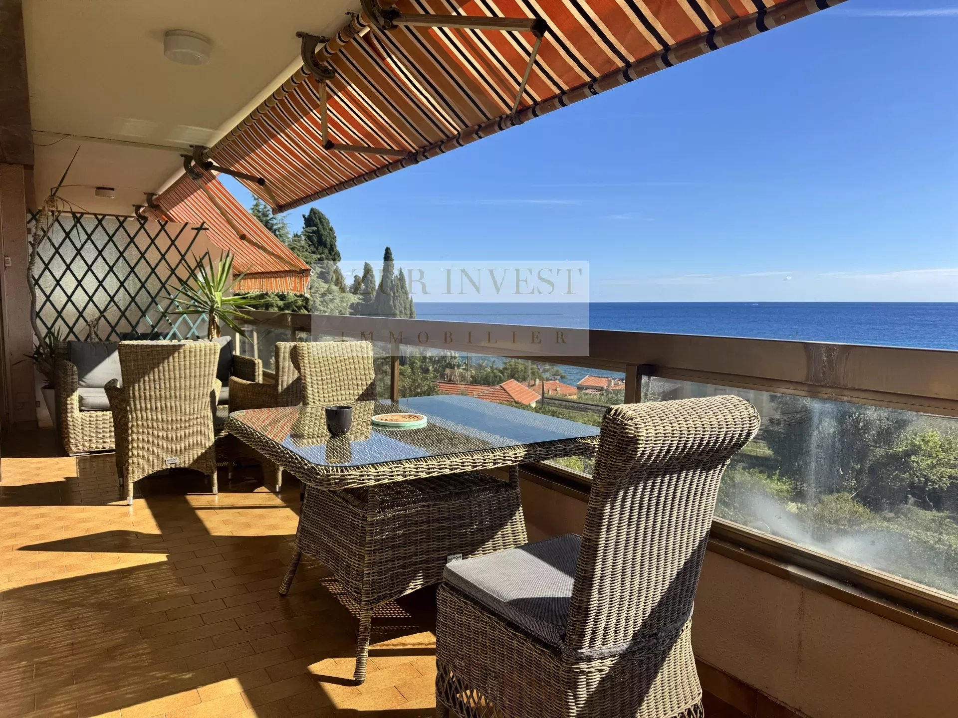 Votre agence Azur Invest vous propose en exclusivité quartier Garavan un appartement 2 pièces en très bon état général de 52 m² composé d'une entrée, cuisine indépendante, un spacieux séjour lumineux donnant sur grande terrasse d'angle de 27 m² offrant une vue mer, une chambre, une salle de bains. Grand garage et cave en supplément. Notre avis: Appartement au calme et ensoleillé offrant une belle vue mer à proximité des plages de garavan. Affaire à saisir