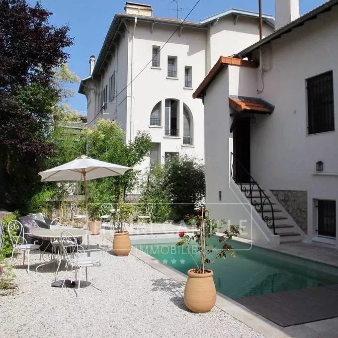 Propriété "Belle époque", au charme indéniable. Située dans un secteur verdoyant et calme du Petit Juas, proche de toutes les commodités. Plein sud. Double réception, bureau, cuisine équipée avec salle à manger attenante ainsi qu'1 double chambre avec sa salle de bains, complètent le rez-de-chaussée. 4 Chambres à l'étage avec douche et salle de bains. Un appartement indépendant. Garage. Idéal pour grande famille. Le tout refait avec sobriété et bon goût. Un très joli jardin avec piscine chauffée.