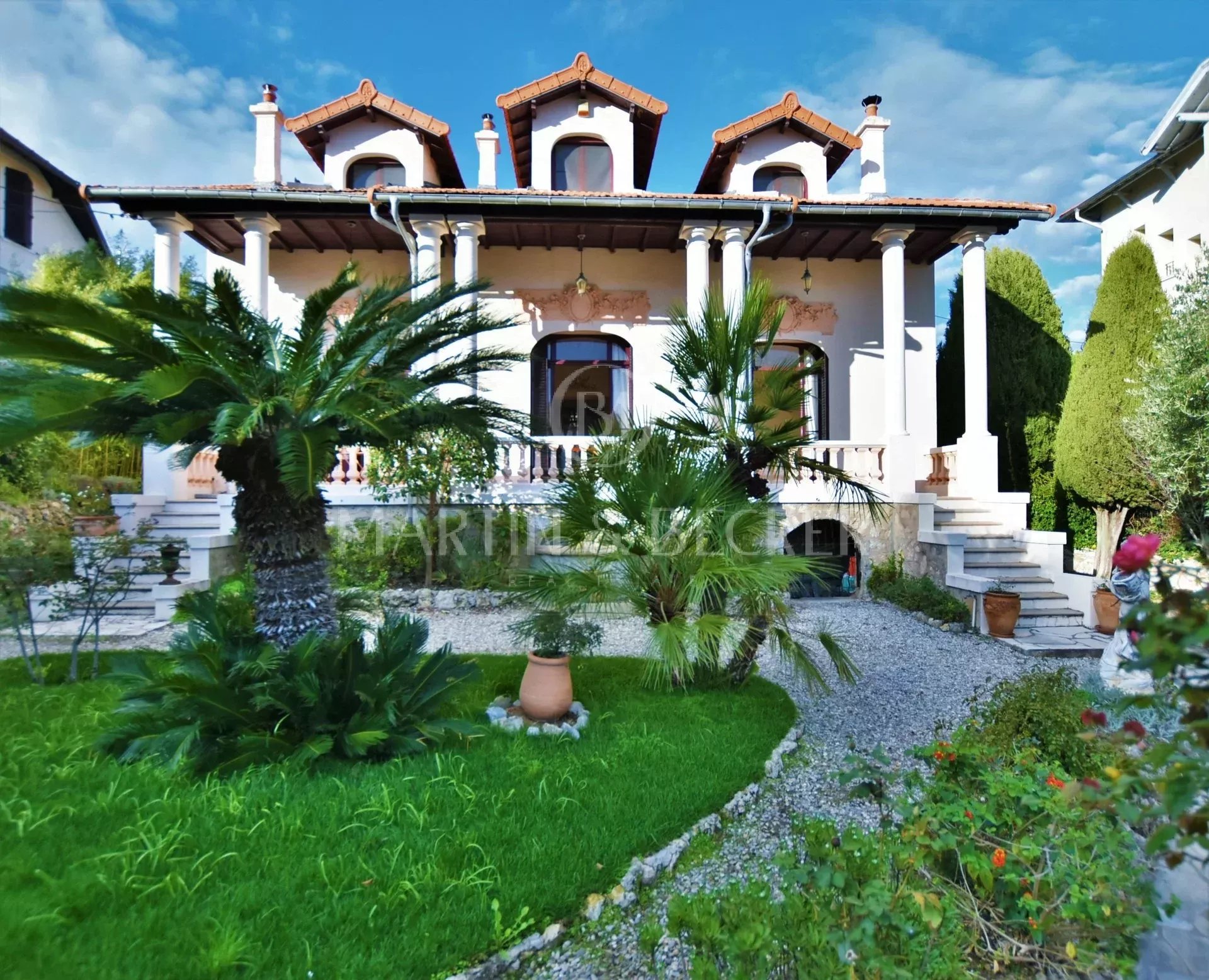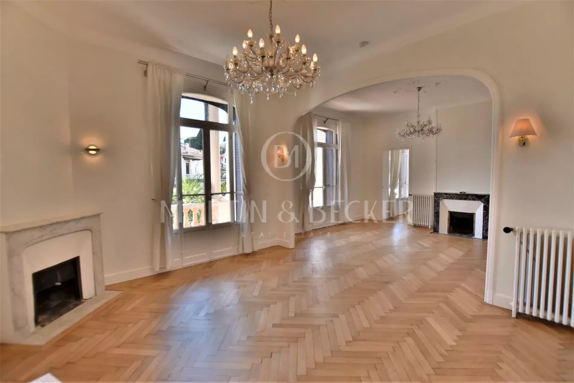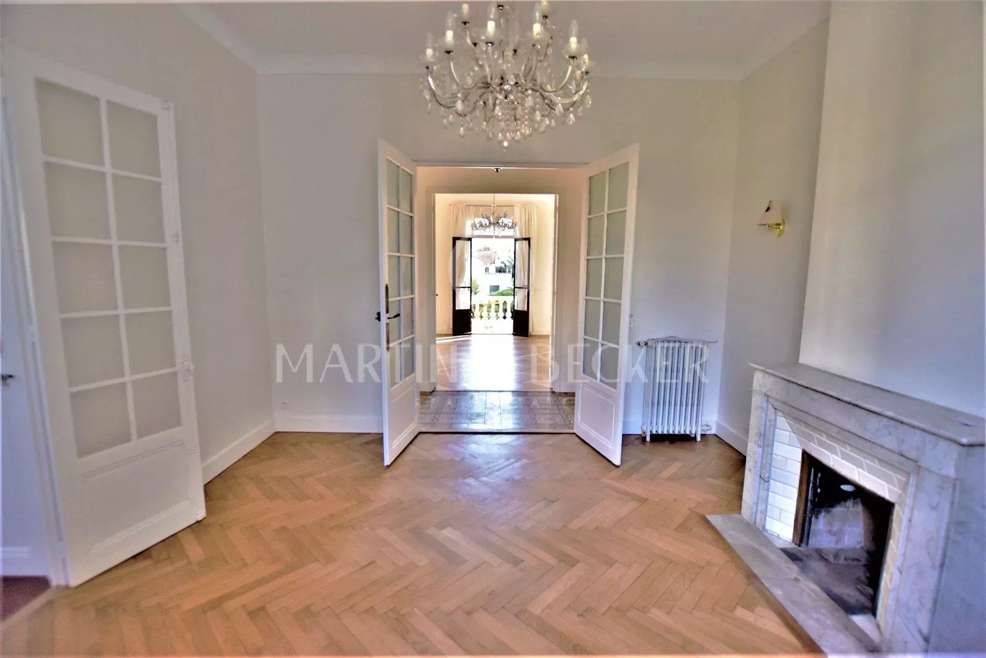 Au calme complet, dans le quartier résidentiel du Petit Juas, à seulement 10 mns à pied de la Croisette, superbe villa "Belle époque" (classée Patrimpoine Culturel de France) de 275 m2 totalement rénovée, au coeur d'un jardin bucolique de 715 m2 avec piscine chauffée au sel. De plain pied, superbe salon lumineux en triple réception avec parquet, cheminées et belle hauteur sous plafond ouvrant par de grands baies vitrées en arc sur la terrasse en colonnade surplombant le jardin et la vue dégagée. La salle à manger se prolonge par une cuisine équipée. La chambre de maître de plain pied dispose d'une salle de bains et d'un bureau attenant. A l'étage, 3 grandes chambres dont 1 avec salle de douches privatives, et 2 autres chambres se partagent une grande salle de bains complètes, ainsi qu'une pièce aménageable en salle de jeux ou dressing. En entresol, vous disposez d'un appartement totalement indépendant de 50 m2. Garage et 2 places de parking extérieures.