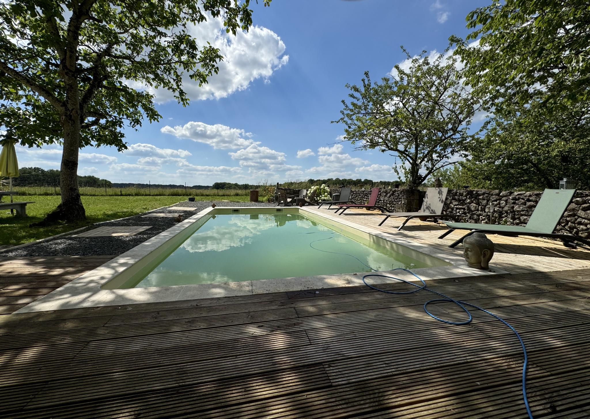 Nichée au coeur de la nature, découvrez cette ancienne demeure de 160 m2, baignée de lumière et en excellent état. Cette maison de 7 pièces, dont 4 chambres, offre un séjour spacieux de 29 m2 et deux salles d'eau. La cuisine aménagée et équipée invite à la convivialité. Les ouvertures en bois laissent entrer la lumière naturelle et offrent une vue dégagée sur le terrain de 4666 m2. Laissez vous séduire par la piscine de 9x5, idéale pour des moments de détente en famille ou entre amis. ... Une grange de 38 m2 complète ce bien.