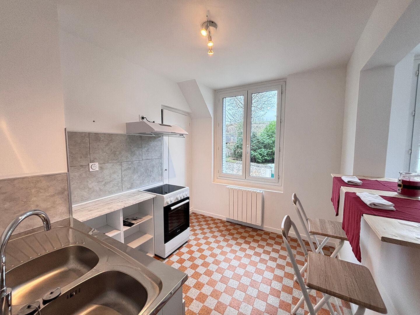 Appartement F2 bis en centre-ville des Andelys Situé au premier étage d'un petit immeuble de ville, cet appartement en très bon état se compose comme suit : Au rez-de-chaussée : une entrée privative. A l'étage : un palier desservant un bureau, un couloir, une cuisine, un séjour, une chambre, des WC indépendants, ainsi qu'une salle d'eau. Les atouts de ce bien : A l'extérieur, vous bénéficierez d'une cave et d'un bâtiment de stockage. Une place de stationnement est également disponible dans la cour commune. Le bien est proche de toutes commodités : il est situé aux pieds des commerces et à cinq minutes des écoles. Niveau transports, la commune est bien desservie. On trouve un arrêt de bus à cinq minutes de l'appartement ainsi que la gare à 15 minutes. L'aéroport le plus proche se situe à 80 km. Pour vos loisirs, vous pourrez compter sur le cinéma d'art et d'essai Palace à quelques minutes du logement. Il y a aussi un bureau de poste et de nombreux restaurants. Un garant vous sera demandé. Si vous avez moins de 30 ans ou que vous soyez intérimaire, vous pouvez également bénéficier de la garantie Visale. Cette garantie est gratuite pour le locataire et le bailleur. https://www.visale.fr