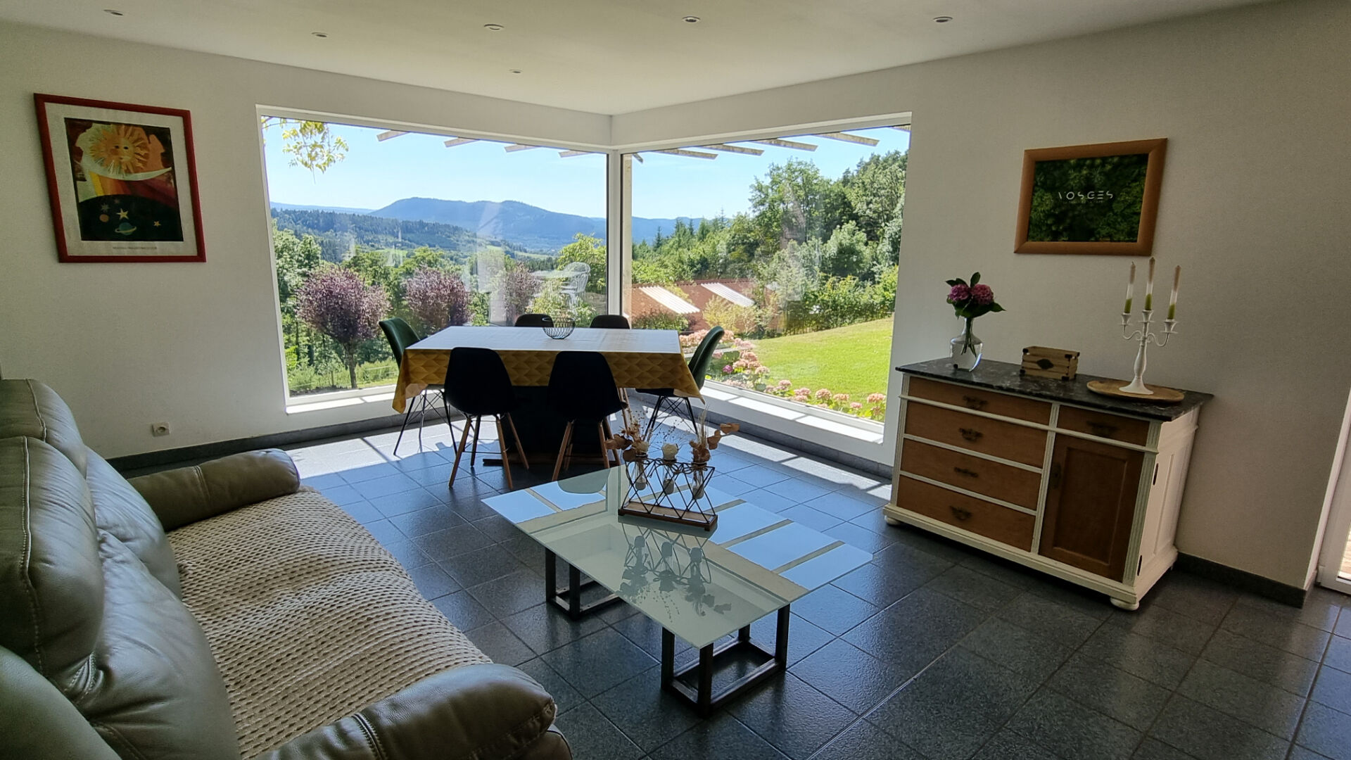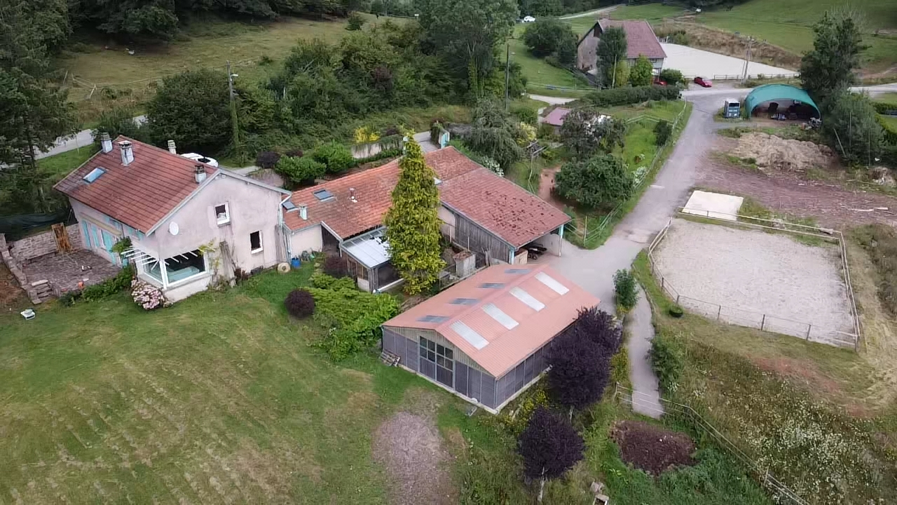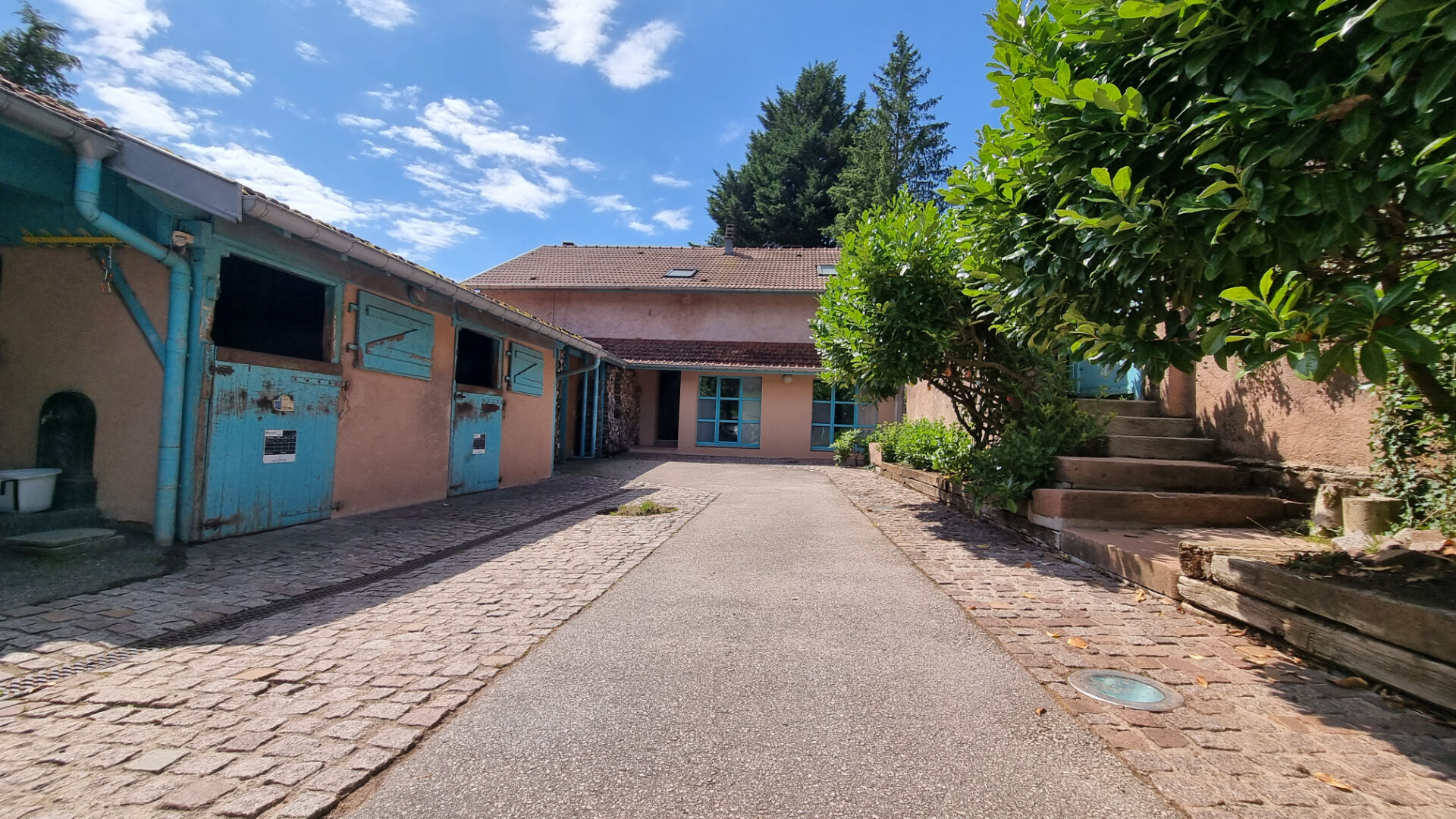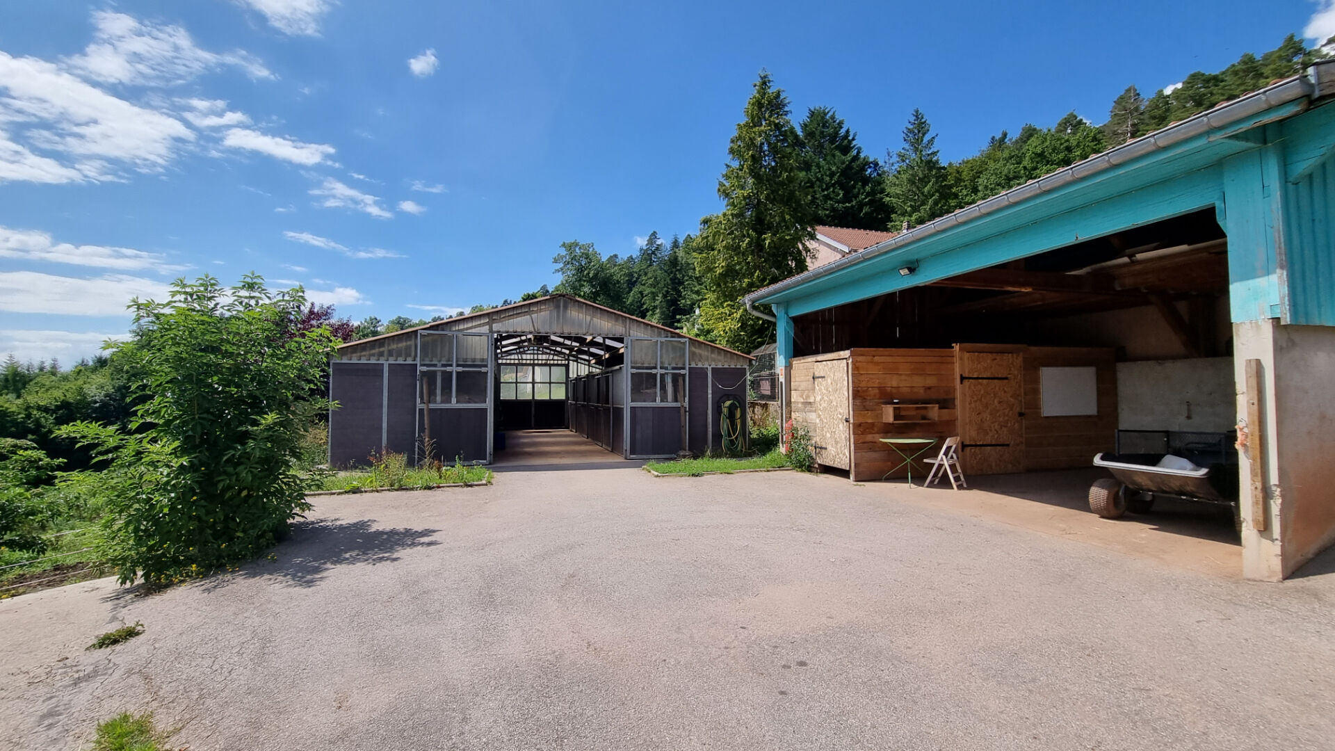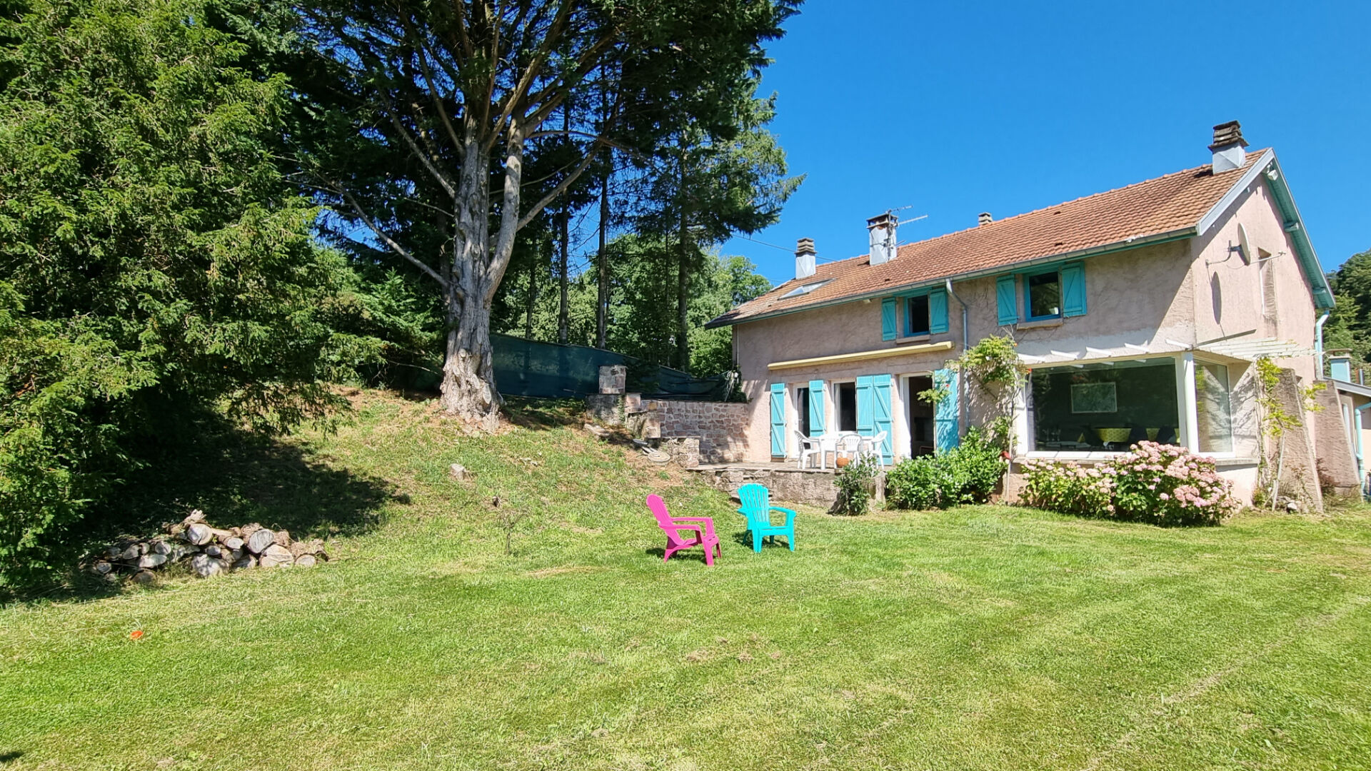 TRES RARE, dans un magnifique environnement avec vue panoramique, exposition Sud, cadre idyllique, en pleine nature proche forêt et des circuits de randonnées, maison de plus de 450 m² de surface utile avec les annexes dont 173 m² habitable sur plus de 4 hectares de terrain, comprenant hall d'entrée avec poêle à granulés ( tubage ), une salle de bains équipée avec wc, salon-séjour avec VUE PANORAMIQUE avec cheminée à l'âtre et accès terrasse, 1 chambre avec accès terrasse, salle d'eau équipée, wc, cuisine équipée et aménagée ( installée en 2024 ), à l'étage, mezzanine, 4 chambres. Buanderie-chaufferie ( chaudière fioul ). Garage. Box à chevaux. Dépendance annexe notamment bâtiment pouvant accueillir 12 chevaux en box. Terrain attenant de plus de 40000 m² dont une partie est constructible en terrain agricole et 2 carrières ( 70 m x 30 m ). Taxe foncière 2024 : 2169 euros
