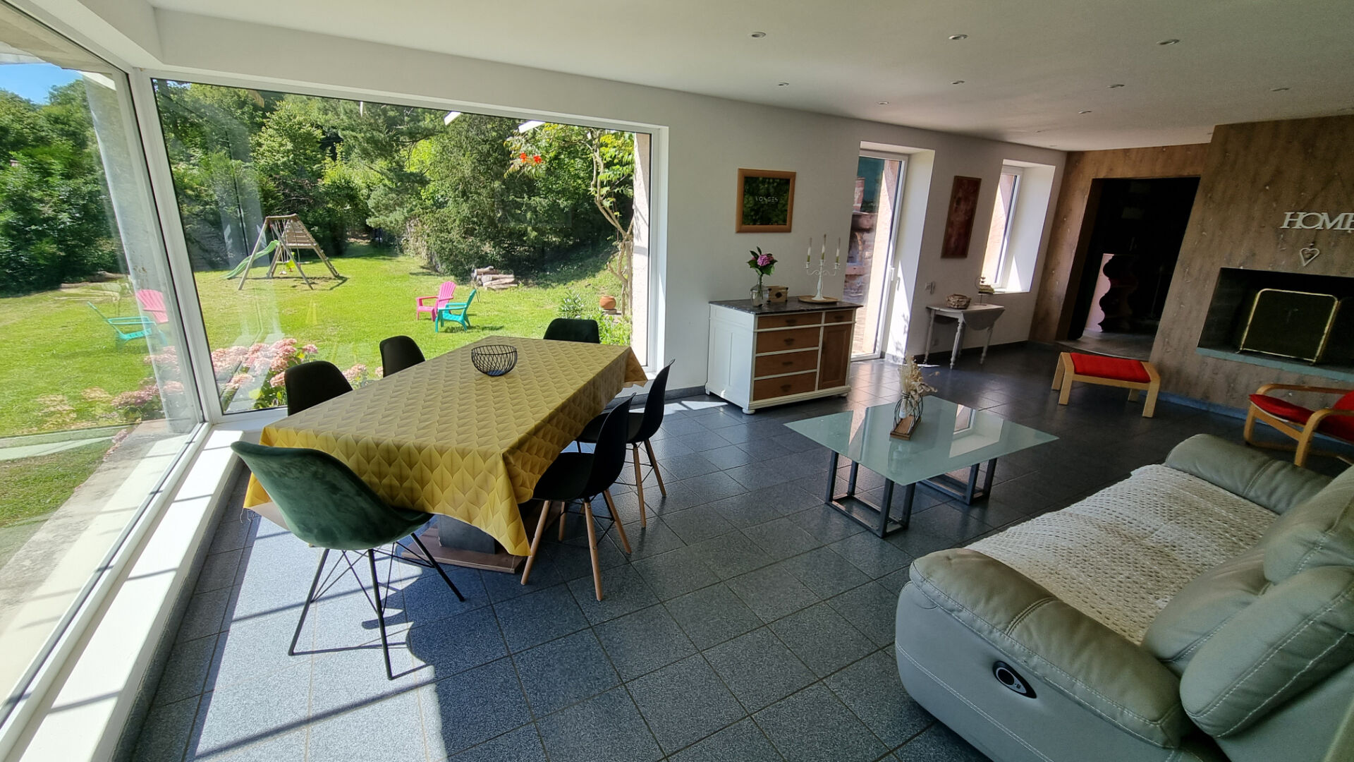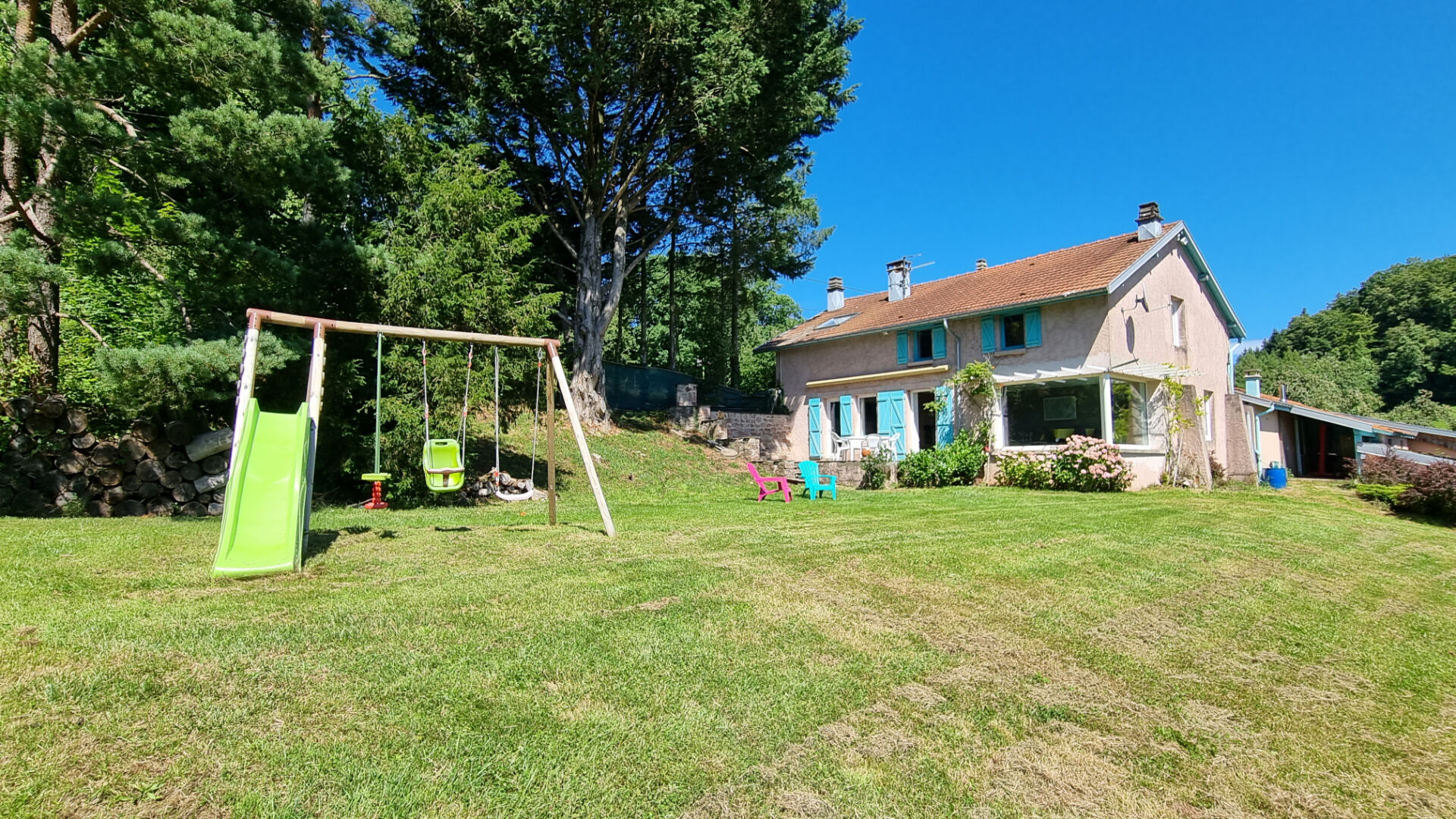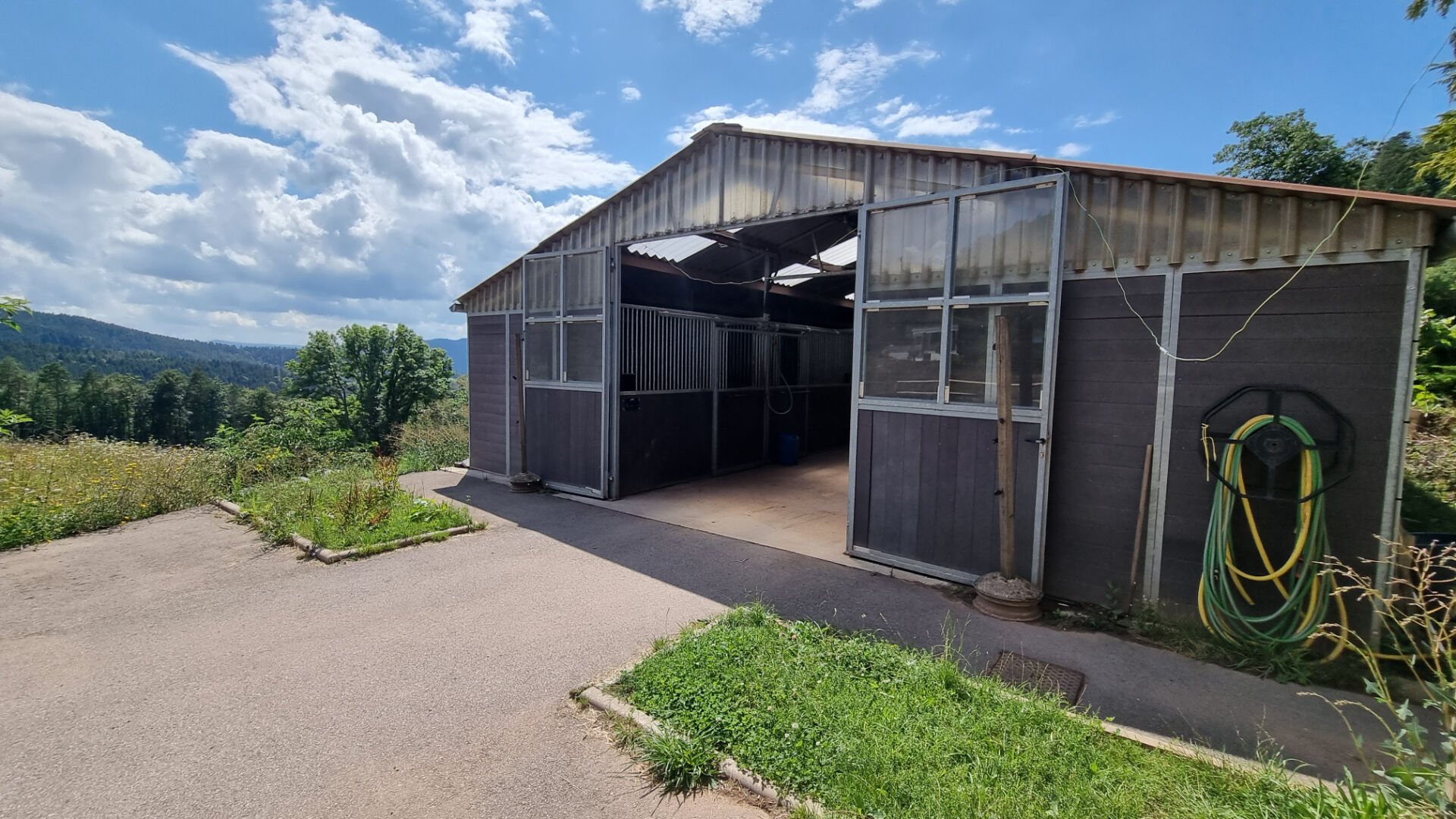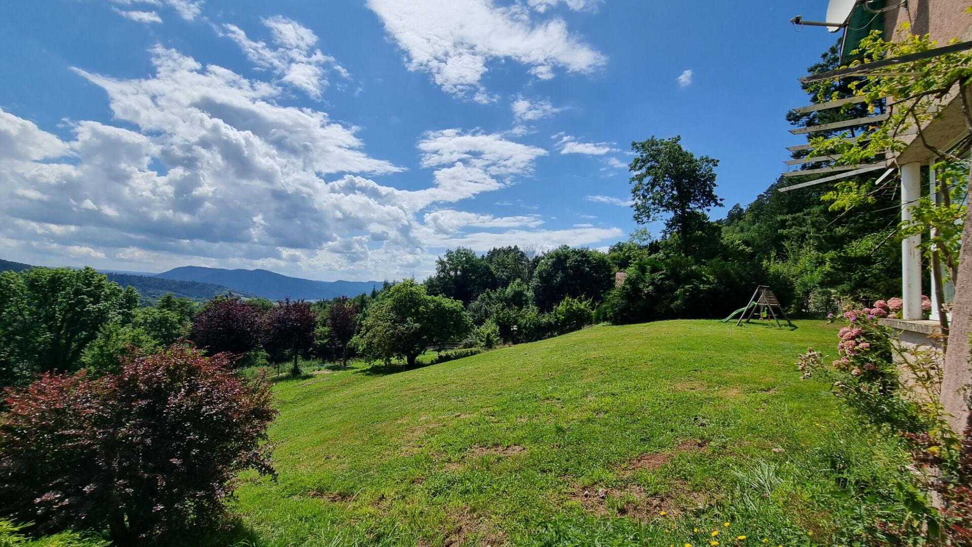 TRES RARE, dans un magnifique environnement avec vue panoramique, exposition Sud, cadre idyllique, en pleine nature proche forêt et des circuits de randonnées, maison de plus de 450 m² de surface utile avec les annexes dont 173 m² habitable sur plus de 4 hectares de terrain, comprenant hall d'entrée avec poêle à granulés ( tubage ), une salle de bains équipée avec wc, salon-séjour avec VUE PANORAMIQUE avec cheminée à l'âtre et accès terrasse, 1 chambre avec accès terrasse, salle d'eau équipée, wc, cuisine équipée et aménagée ( installée en 2024 ), à l'étage, mezzanine, 4 chambres. Buanderie-chaufferie ( chaudière fioul ). Garage. Box à chevaux. Dépendance annexe notamment bâtiment pouvant accueillir 12 chevaux en box. Terrain attenant de plus de 40000 m² dont une partie est constructible en terrain agricole et 2 carrières ( 70 m x 30 m ). Taxe foncière 2024 : 2169 euros