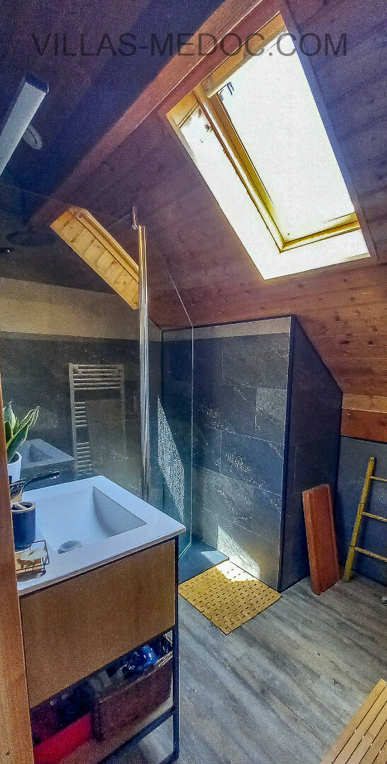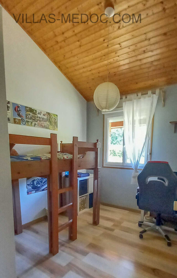 GAILLAN - au calme et à 15 min de l'océan Venez découvrir cette belle villa en bois de 125 m² composée d'une pièce de vie de 64 m² (cuisine équipée ouverte sur séjour), une suite parentale + 30 m², deux chambres, une salle d'eau, deux wc et un cellier/buanderie. Grande terrasse couverte +45 m². Garage double non attenant. L'ensemble sur terrain clos et arboré et de 1500 m². Assainissement et électricité conformes - A ne pas rater (6.43 % honoraires TTC à la charge de l'acquéreur.)