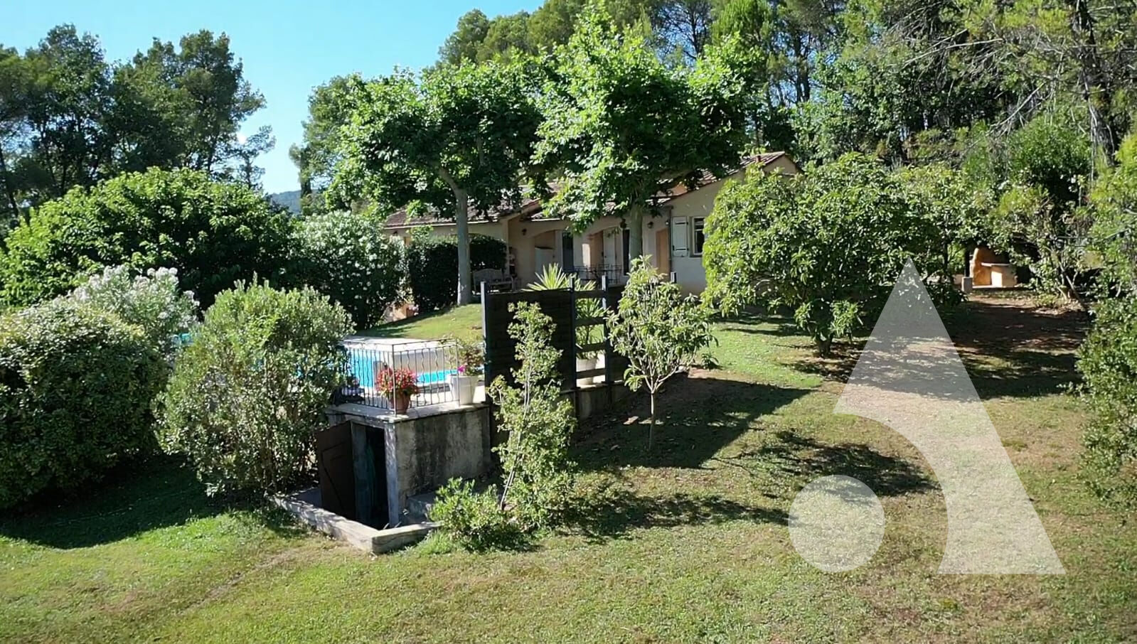 VILLA PLAIN-PIED DE 134 M² - PISCINE - GRAND GARAGE - TERRAIN DE 6.225 m² Un cadre de vie paisible, une vue dégagée, et le charme d'un bien soigneusement entretenu. Au coeur d'un environnement calme, cette villa de plain-pied développe 134 m² habitables et offre un parfait équilibre entre confort, fonctionnalité et sérénité. Orientée plein sud, elle profite d'une belle luminosité naturelle toute l'année. Un intérieur convivial et lumineux L'entrée s'ouvre sur une pièce de vie chaleureuse, articulée autour du salon séjour avec poêle à bois, prolongé par une agréable salle à manger en véranda. La cuisine équipée, fonctionnelle et ouverte, complète cet espace à vivre où l'on se sent tout de suite chez soi. Côté nuit, un couloir distribue trois chambres, une salle de bains, une salle d'eau ainsi qu'un WC indépendant, permettant une organisation fluide du quotidien familial. Des prestations qui font la différence: - Climatisation réversible - Poêle à bois, pour une ambiance chaleureuse en hiver - Véranda lumineuse, véritable pièce de vie en plus Maison en excellent état général, prête à accueillir ses nouveaux occupants Un sous-sol polyvalent de 72 m² En rez-de-jardin, le sous-sol abrite un vaste garage, une buanderie, un espace de stockage conséquent et surtout un studio indépendant avec chambre et salle d'eau, idéal pour recevoir ou exercer une activité libérale. Un extérieur généreux et bien pensé Implantée sur un terrain de 6.225 m², la propriété dispose d'un bel espace paysager agrémenté d'une piscine, d'une terrasse avec cuisine d'été et d'un vaste jardin arboré. Un environnement rare pour les amoureux de nature, de tranquillité? et de barbecue en famille. Pour toute information complémentaire ou pour organiser une visite : Lydie Blanchet au 06 77 61 32 91 Lydie BLANCHET (EI) Agent Commercial - Numéro RSAC : 949 333 777 - DRAGUIGNAN.