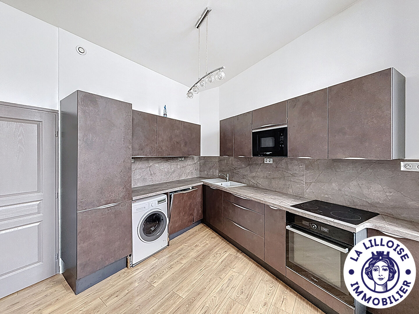 Nouveauté !La Lilloise Immobilier vous propose de venir découvrir au sein d'une copropriété de standing bien entretenue, ce très bel appartement de 96m² en duplex offre un cadre de vie à la fois chic et confidentiel, en plein coeur de ville.Vous serez immédiatement séduit par ses beaux volumes, sa luminosité naturelle et son agencement fonctionnel. Il se compose d'une vaste pièce de vie, idéale pour recevoir , d'une grande cuisine équipée avec son coin diner.Aux étages on retrouve 2 chambres confortables, un bureau (parfait pour le télétravail ou une chambre d'appoint), ainsi que de nombreux rangements. Une salle de bains moderne avec vasque, baignoire et douche).Le charme de l'ancien se mêle à des prestations modernes dans une résidence sécurisée à 2 pas des commerces, transport et lieux de vie du centre ville. (3.63 % honoraires TTC à la charge de l'acquéreur.)