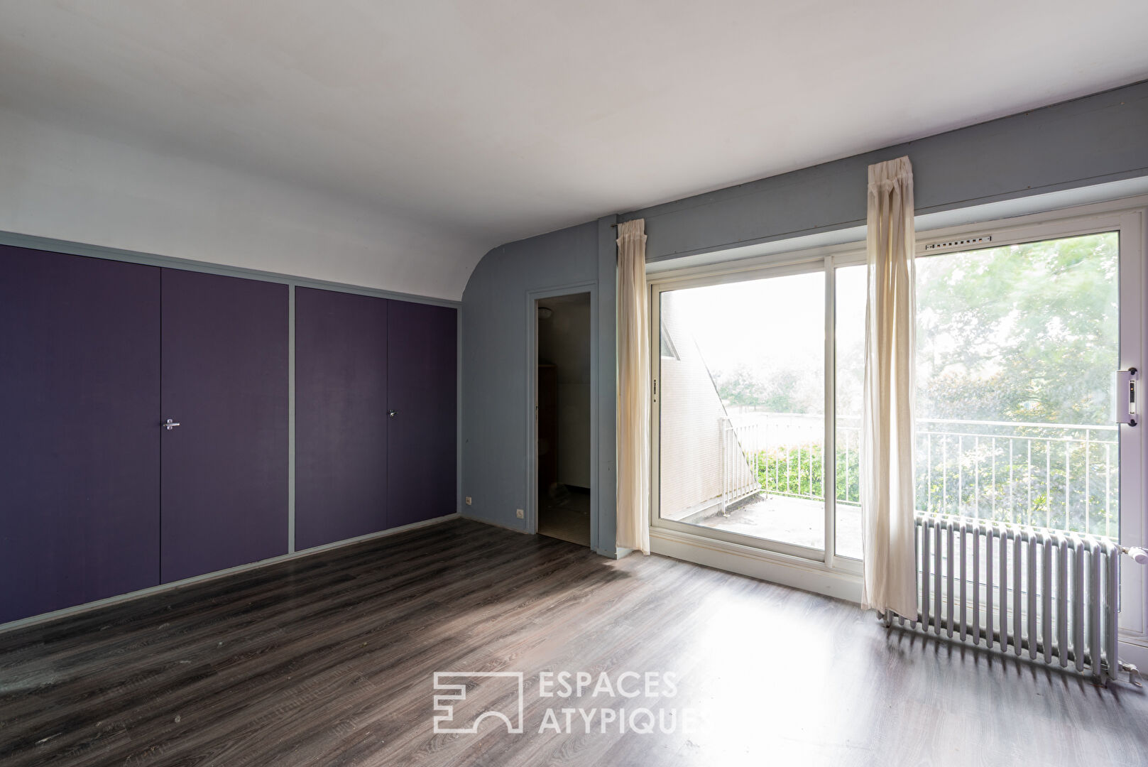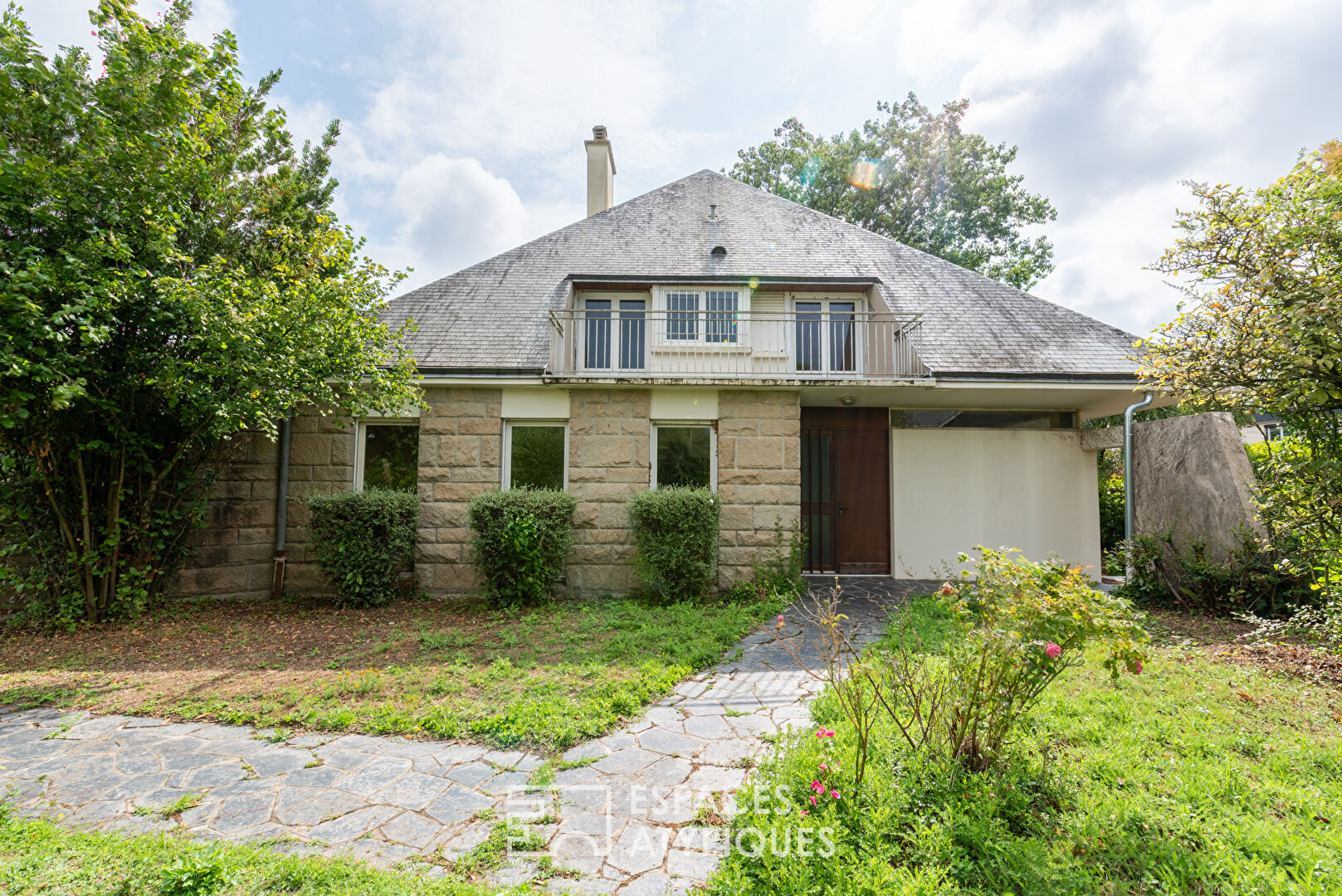 Amateurs d'architecture audacieuse, cette maison est un OVNI des années 70 . A l'entrée du Rheu, à 15 minutes de Rennes, se cache une maison à l'allure folle, tout droit sortie d'un magazine vintage. Ici, on ne parle pas de mètres carrés, on parle de sensations, de lumière, de volumes qui racontent une époque où l'architecture osait tout. Demi paliers en cascade, Cheminée monumentale avec parement cuivre, Matériaux nobles et oubliés : marbre, travertin, crochets en cuivre pour les ardoises... 7 chambres, double garage, sous-sols... Le tout posé sur 1 000 m² de jardin, comme un écrin vert pour ce bijou hors normes. Oui, il y a des travaux. Mais c'est un terrain de jeu pour ceux qui rêvent grand, pour ceux qui veulent redonner vie à un lieu unique sans le dénaturer. Cette maison ne cherche pas un propriétaire. Elle cherche un complice. CLASSE ÉNERGIE: E CLASSE CLIMAT: E Montant moyen estimé des dépenses annuelles d'énergie pour un usage standard, établi à partir des prix de l'énergie de l'année 2021: entre 5000 euros et 8000 euros. Les informations sur les risques auxquels ce bien est exposé sont disponibles sur le site Géorisques : www.georisques.gouv.fr Pour plus d'informations et photos : www.espaces-atypiques.com Contact : Yveline Davenel - 0749967758 agent commercial EI - RSAC 891 217 739 - Rennes (4.88 % honoraires TTC à la charge de l'acquéreur.)