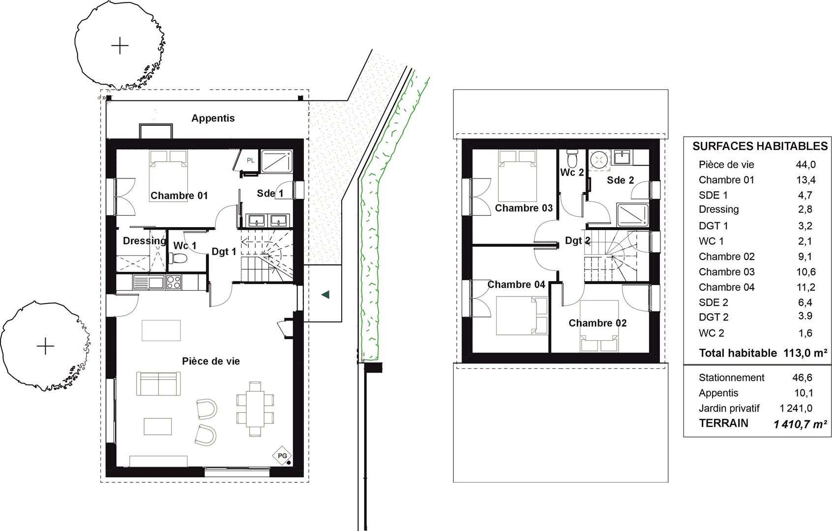 Jolie maison neuve, T5, de 113 m² habitables, sur un terrain de 1412 m², à 500 m d'un centre commercial et du collège du Taillan. Elle se compose, au rez-de-chaussée d'une pièce de vie de 44 m², d'une suite parentale avec salle d'eau et dressing et d'un wc. À l'étage, de trois chambres, d'une salle d'eau et d'un wc. Conforme à la règlementation RE2020, le chauffage est assuré par une pompe à chaleur triple service et la production d'eau chaude par un ballon thermodynamique connecté à la pompe à chaleur. Un poêle à granulés apporte un confort supplémentaire. Un appentis de 10 m² sur le côté de la maison permet d'abriter des deux roues ou des matériels divers. La maison se situe, en bout de rue, dans une copropriété horizontale, de huit maisons et n'est pas mitoyenne. Elle jouit d'un environnement calme. Le parking relais du tram D, vers Bordeaux-centre est à 5 minutes en voiture. La taxe foncière sera de 2100 euros et les charges de 20 euros par mois. Les honoraires sont à la charge du vendeur. Elle sera disponible en mars 2027. Les informations sur les risques auxquels de bien est exposé sont disponibles sur le site Géorisques: www.georisque.gouv.fr