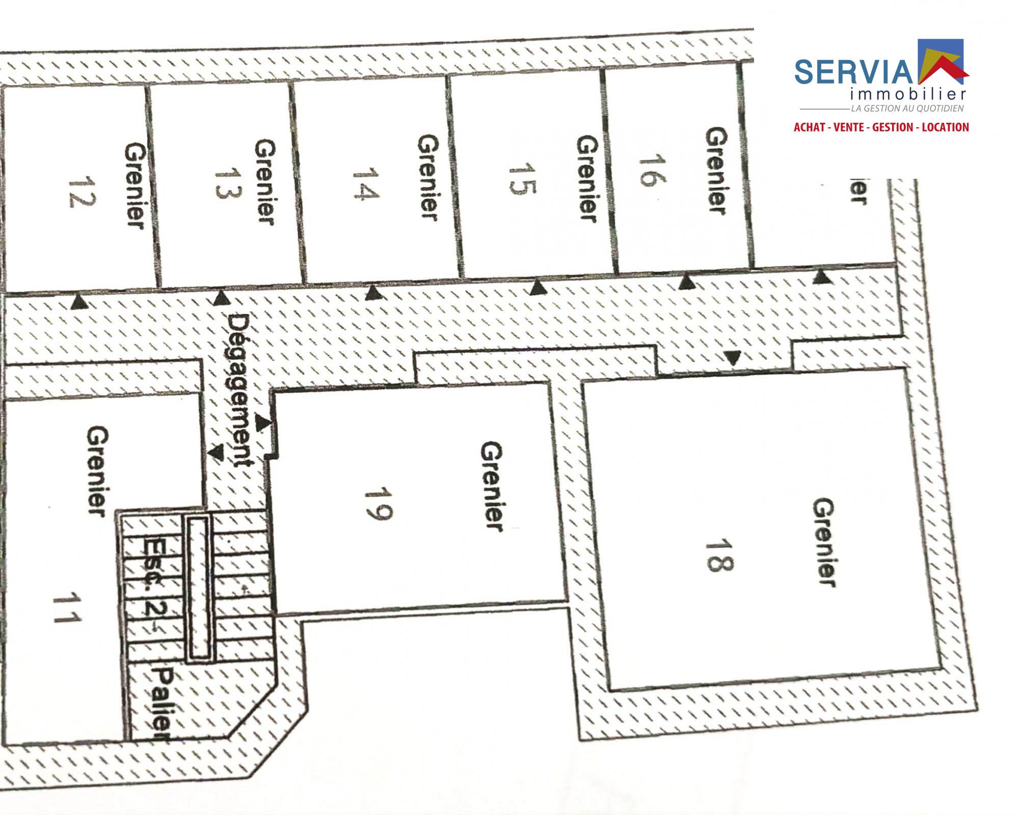 Cet ensemble de greniers, au 4eme et dernier étage d'un immeuble de 1900, offre une surface d'environ 80 m².