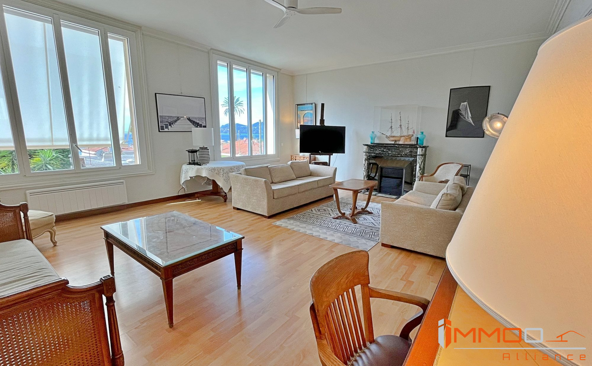 Cet appartement d'environ 173 m² se trouve à quelques minutes à pied des plages et des commodités. Construit en 1928 sur l'ancien jardin du château Saint-Georges, l'immeuble de 7 étages est l'oeuvre des architectes parisiens Charavel et Robert Enault.