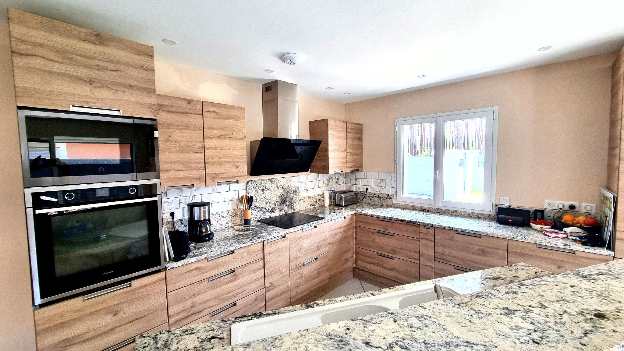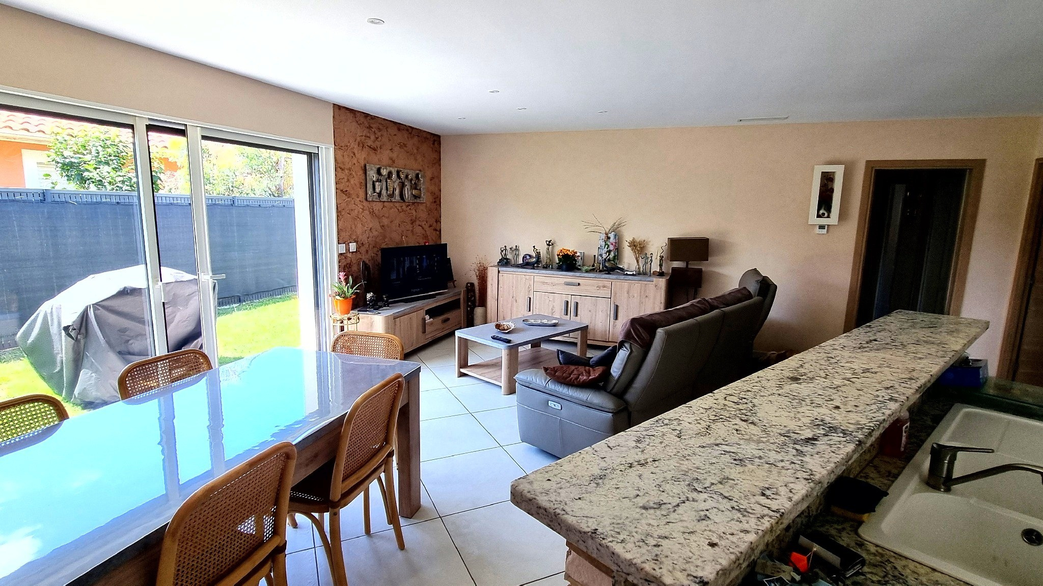 Maison principale (env. 123 m2) Offrant de très belles prestations, elle se compose de : Un vaste séjour lumineux avec cuisine américaine équipée,3 chambres avec placards dont une suite parentale avec dressing et salle d'eau, Une grande salle de bain avec douche à l'italienne, baignoire d'angle et double vasque,2 WC séparés, Un cellier et un garage attenant avec borne de recharge électrique. Confort assuré : chauffage au sol par pompe à chaleur + climatisation gainable !