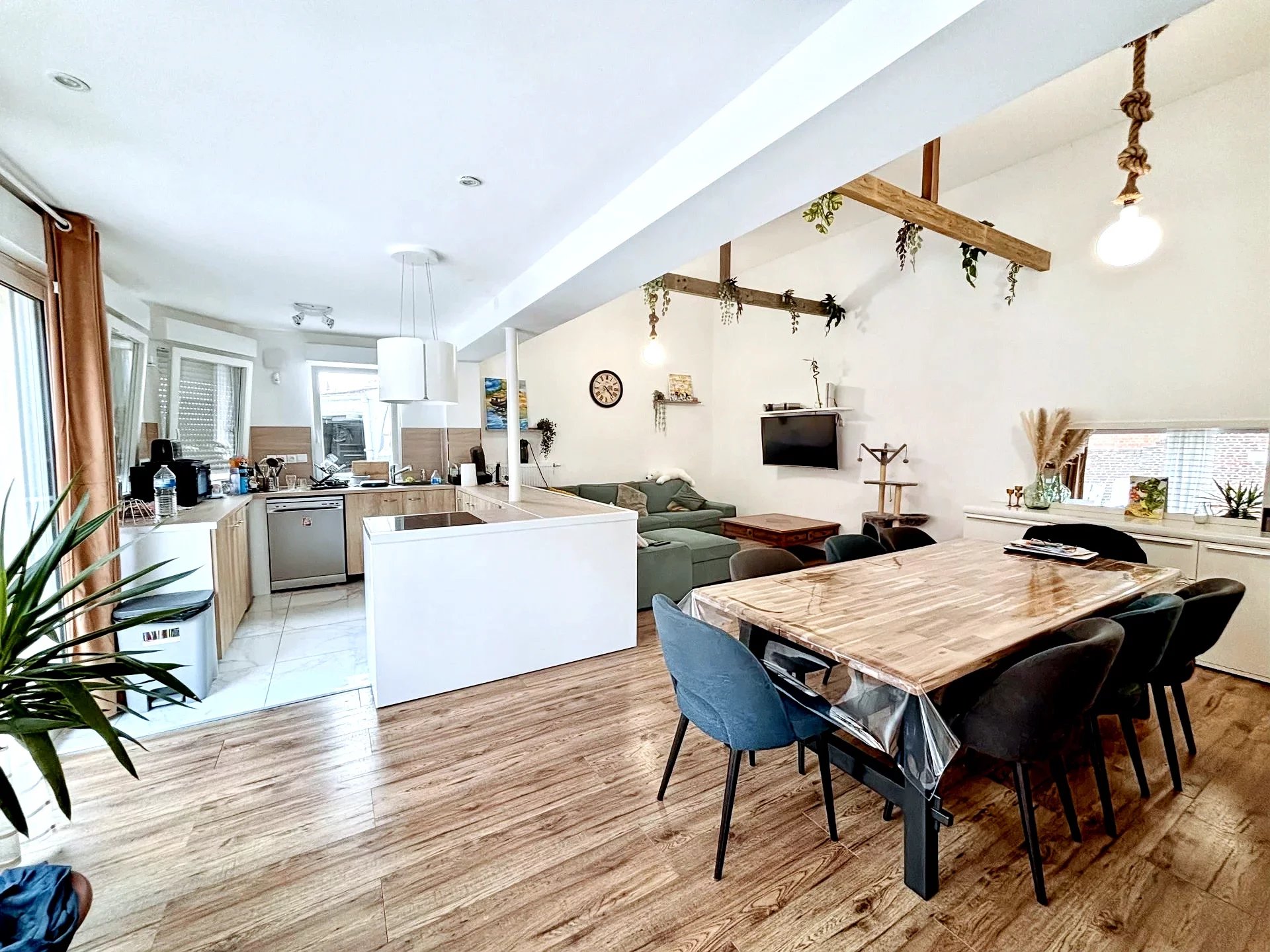 Nouveauté Eleven immobilier. Maison rénovée de 230 m2. Hall d'entrée desservant la pièce de vie lumineuse de 45 m2( salon/séjour/cuisine équipée). Chambre en rdc. Salle de bain et Wc indépendant. Cave. A l'étage, palier desservant 4 belles chambres. Grand jardin et garage. Faire vite! Geoffroy Beauloye Eleven immobilier 883172983 de Douai. 06x84x75x35x64