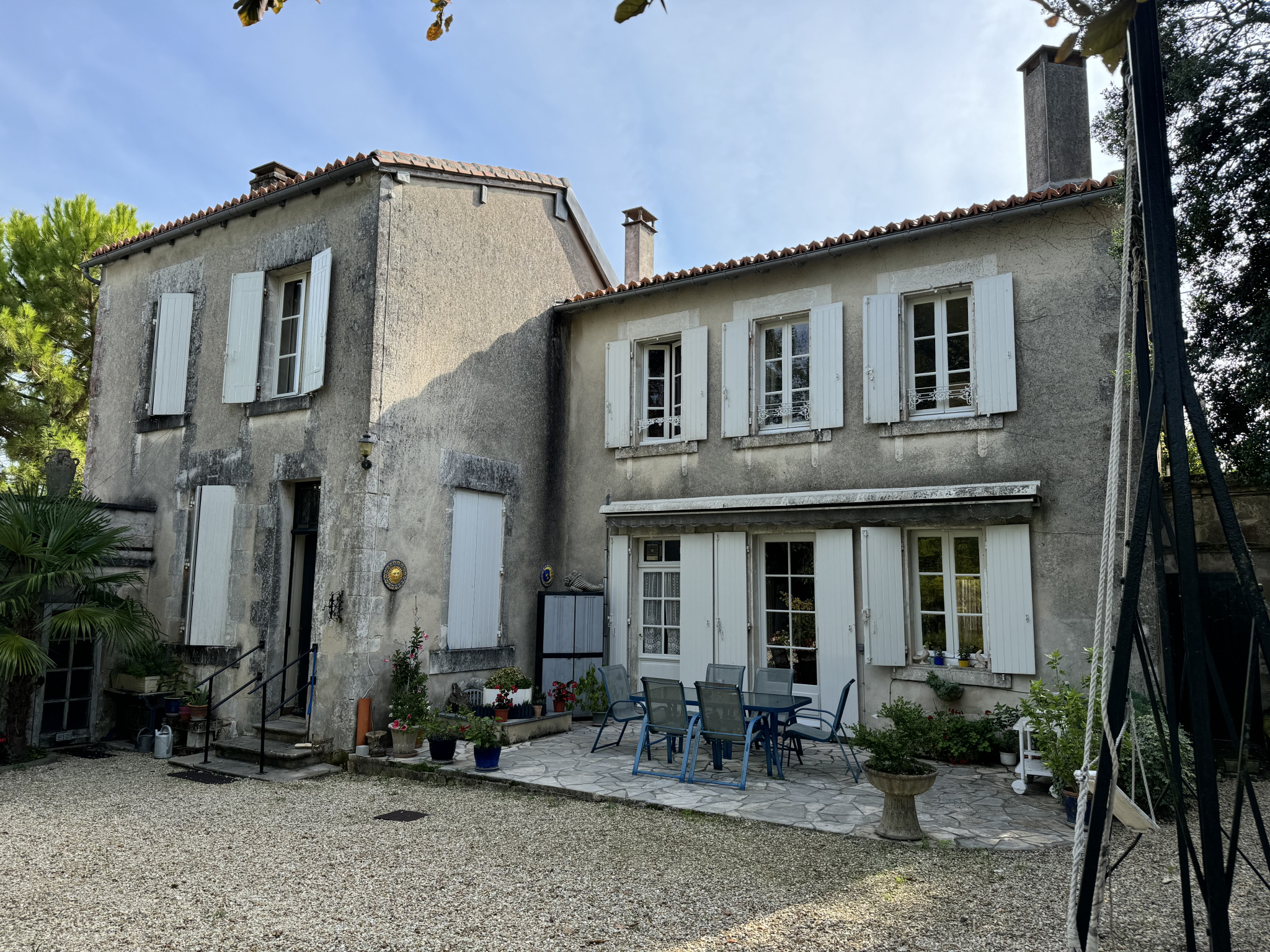 A deux pas du centre de Barbezieux, nous vous proposons cet ensemble immobilier de 407 m2 habitables. Dans un premier temps une Maison de Caractère de plus de 270 m2 vous offre 4 chambres ainsi qu'une bibliothèque, un grand séjour, une salle à manger, salle de bain.. Un second bien d'environ 132 m2 viens compléter cet ensemble. Ce bien est composé d'une grande pièce à vivre avec cuisine ainsi qu'une vaste pièce à l'étage pouvant faire office de chambre. Des travaux récents de couverture ont été réaliser sur ce bien. Un magnifique jardin arboré et entièrement clos d'environ 3000 m2 vient compléter cet ensemble construit en 1850. Ce bien bénéficie également d'une grande piscine 12x5 ainsi qu'une grande plage ou vous pourrez passer vos étés. Offre à saisir commodités accessibles à pied !!