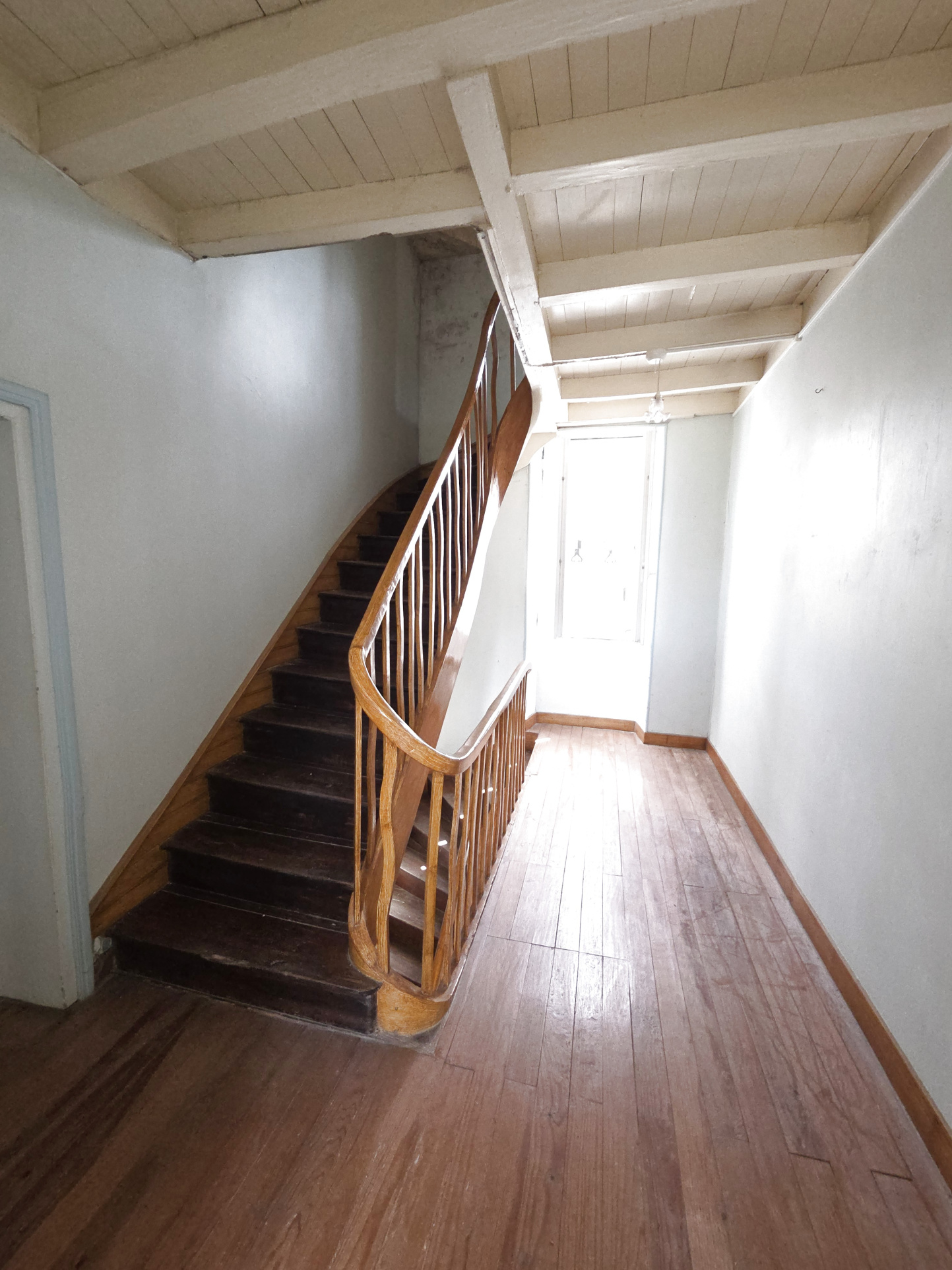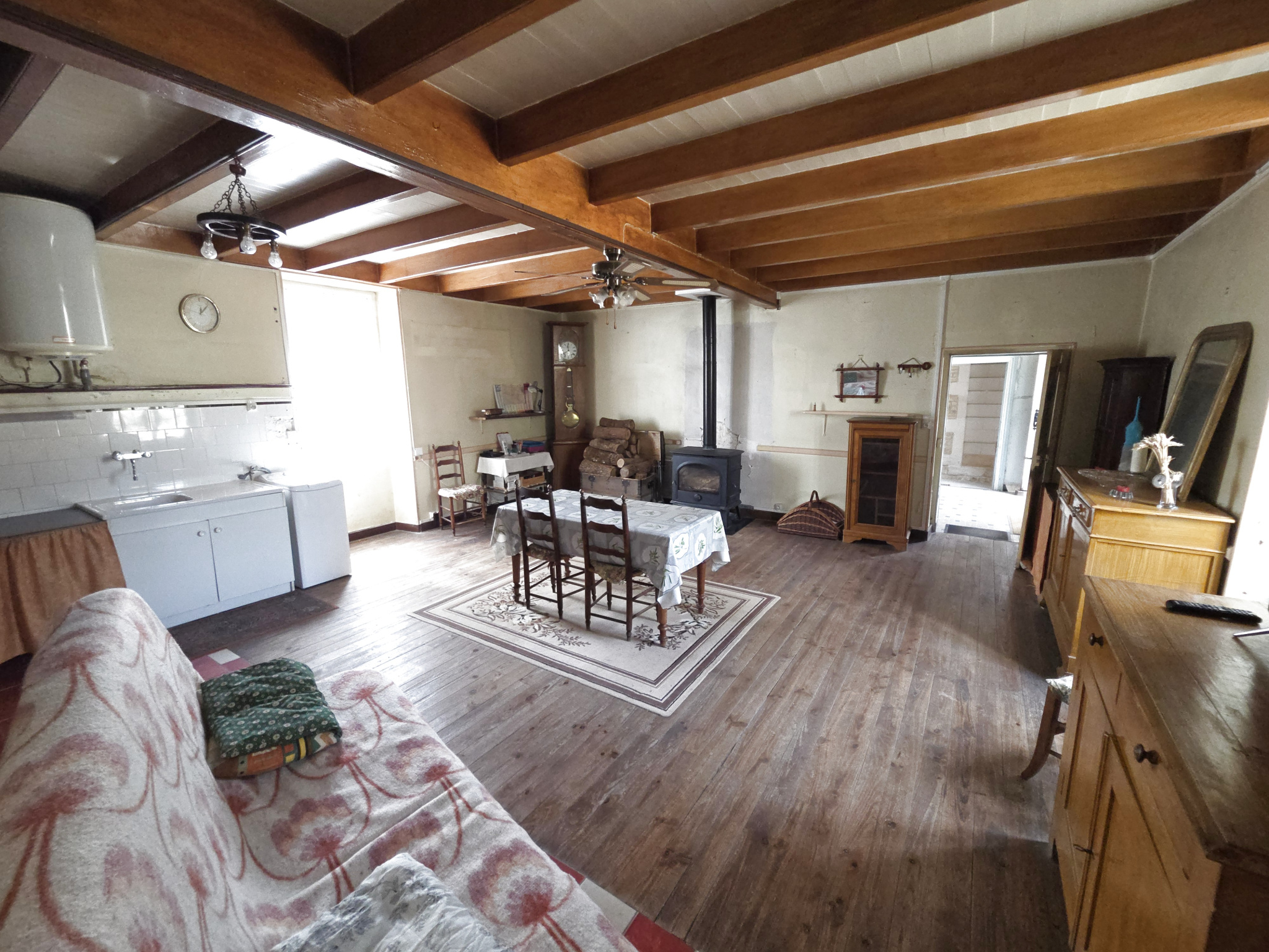 Une Entrée traversante, un salon, une deuxième entrée idéal profession libérale ) , une grande cuisine coin repas avec poêleà bois, une chambre avec son cabinet de toilette, et un