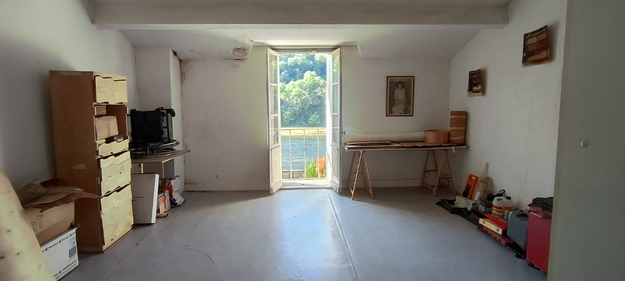 2em : Magnifique 3em chambre de 3800m² avec poutres apparentes et cheminée ouverte + une terrasse de 7m² côté cour et vue sur la Dordogne