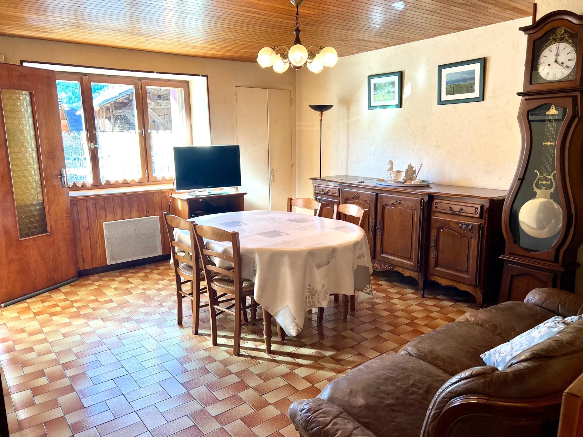 Prenez le chemin de traverse, et découvrez au cœur de l’authentique village de la Compôte, cette maison des années 50, accompagnée de sa grange à proximité, le tout offrant de nombreuses possibilités d’aménagement. Cette maison sur 4 niveaux plus combles, d’une superficie de 160 m² (séjour – cuisine – 6 grandes chambres – 3 salle de bain) nécessite des travaux de rafraichissement. Ce bien est idéal pour un projet familial, une résidence secondaire ou un investissement locatif (rare au cœur des Bauges). La vue depuis les pièces de l’étage est ouverte sur le patrimoine de la Compôte, les grangettes au pied du Mont Colombier et la dent de Rossane avec sa croix aux mille reflets. La grange mitoyenne d’une superficie d’environ 58 m² sur deux niveaux (8 mètre au faitage – toiture en tôle – Electricité) est parfaite pour un investisseur un artisan avec un potentiel de transformation en logement indépendant, atelier ou gîte. Possibilité de changement de destination. Le bien s’ouvre côté Nord sur le Chéran Toiture fibrociment – assainissement en cours de délibération auprès de Grand Chambéry – servitude de passage – jardin potager possible – CONTACT Gisèle 06 79 19 71 39 ou Killian 07 70 54 62 93 "Perchée au sommet de la colline du Mabet, la statue du Sacré Cœur domine le village et semble le protéger de ses bras ouverts. La statue a été installée en 1901 à la fin d’une mission et a été l’objet d’un pèlerinage jusqu’en 1975. Le village de la Compôte est le plus pittoresque des Bauges, avec ses tavalans : Ce sont des sortes de balcons suspendus au-dessus des granges qui étaient utilisés autrefois pour faire sécher les fagots de bois."