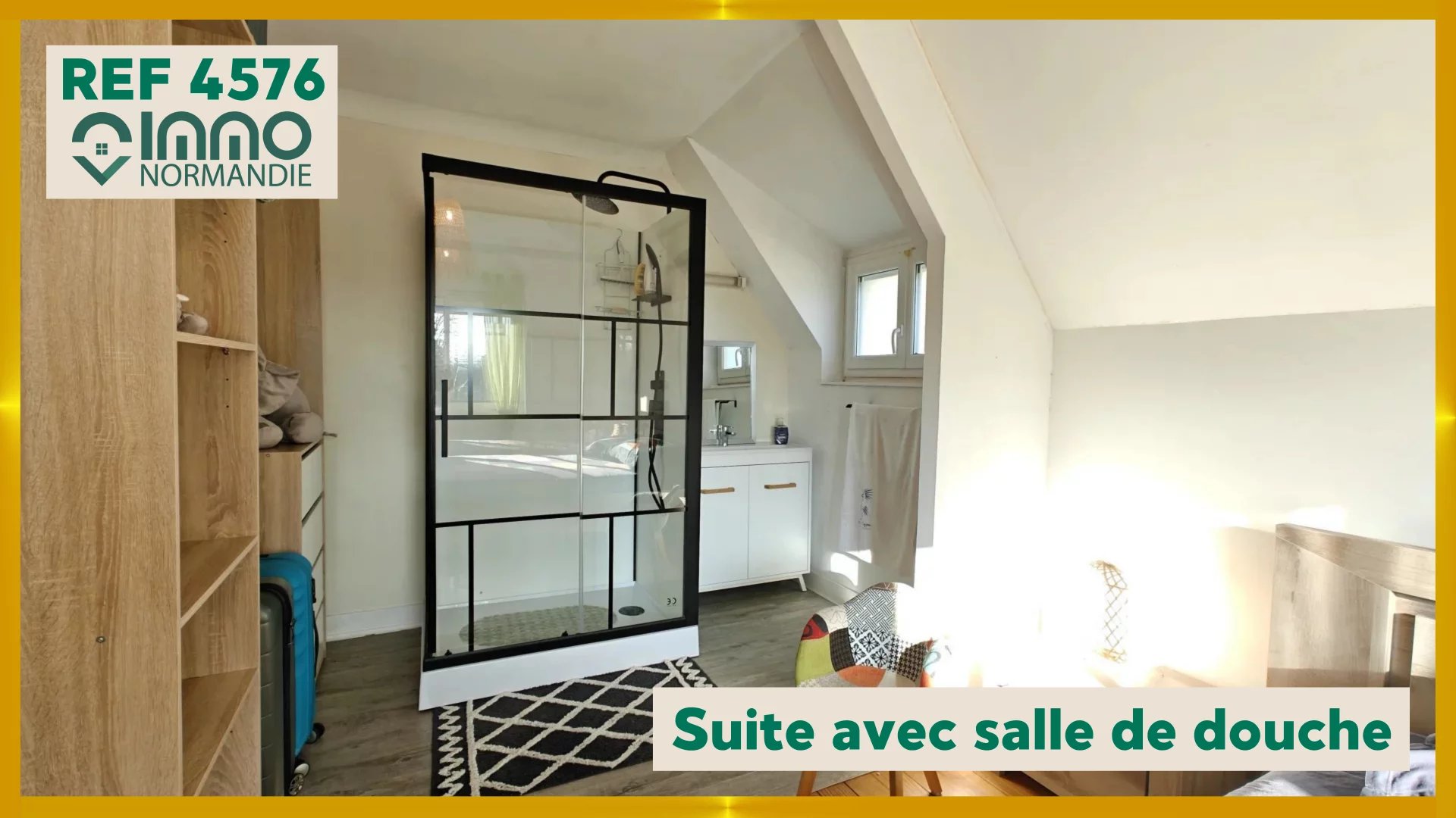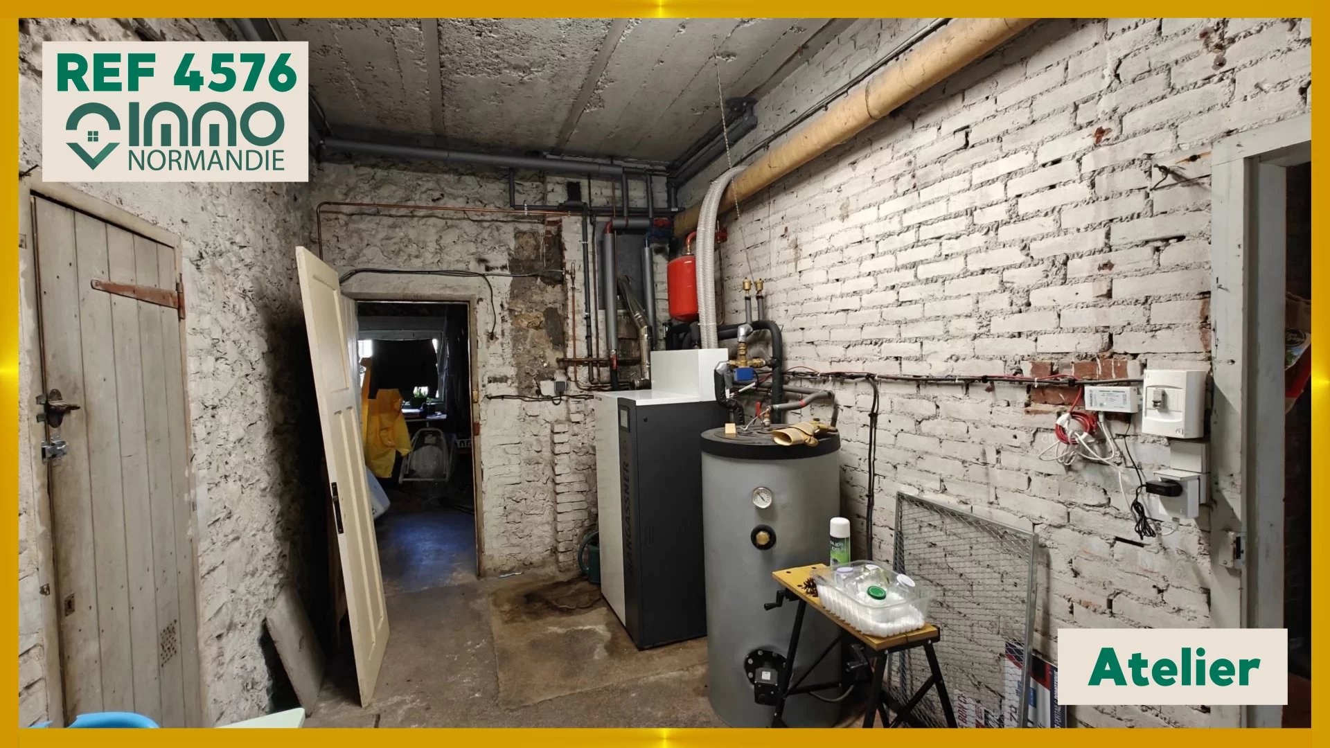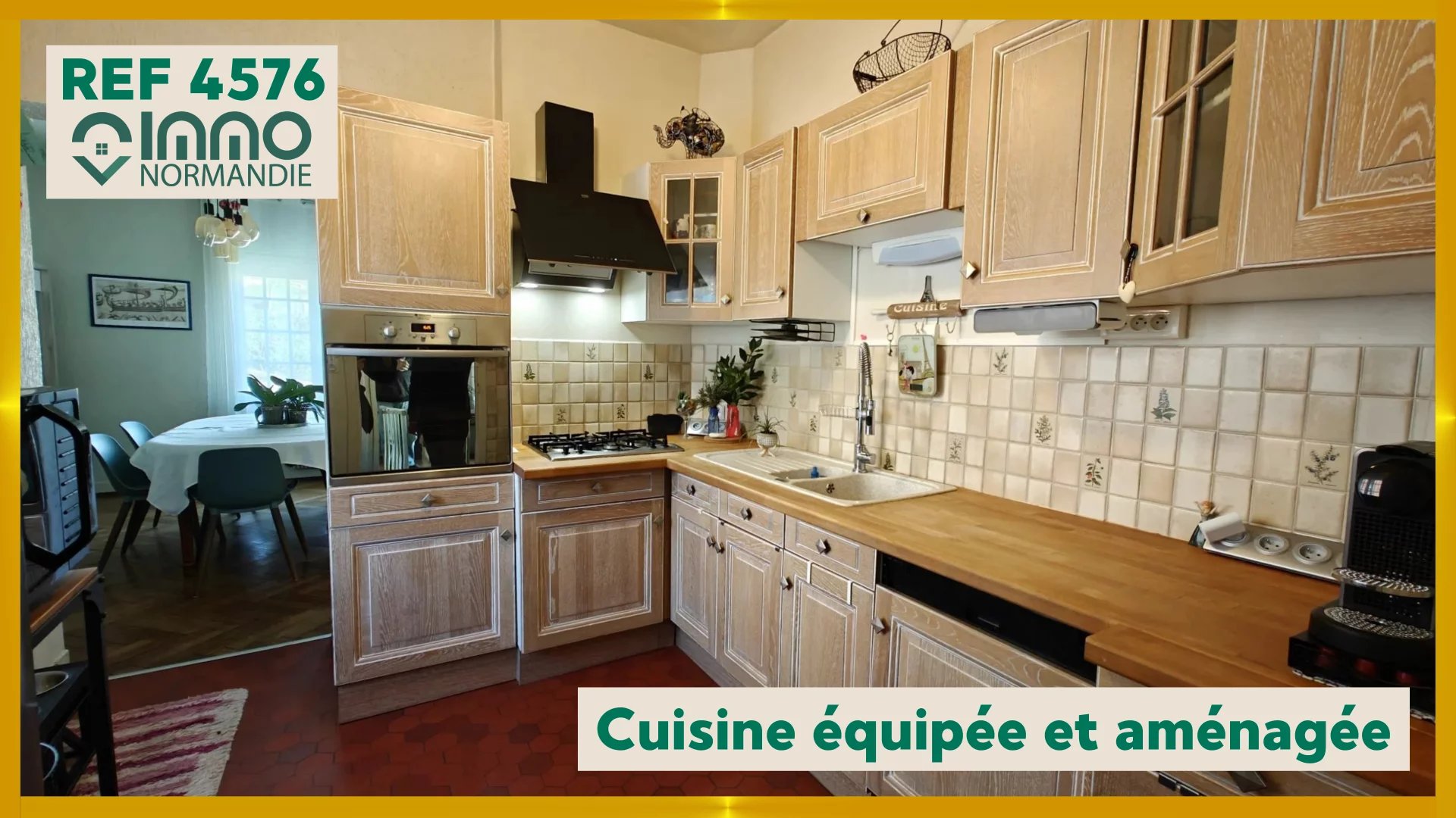 Maison de caractère vivable de plain-pied comprenant : Centre ville de Brionne et commerce à pied. RDC : entrée, salle à manger, séjour, cuisine aménagée & équipée, salle de douche avec WC & lingerie, chambre. A l'étage : palier, 3 chambres dont une suite avec salle de douche, bureau, dressing, WC séparé. Sous-sol complet en rez-de-jardin avec local chaufferies, cave, atelier, cellier, cuisine d'été. Terrain de 830m². PVC double vitrage, volets roulants électriques solaires, tout à l'égout, adoucisseur d'eau.