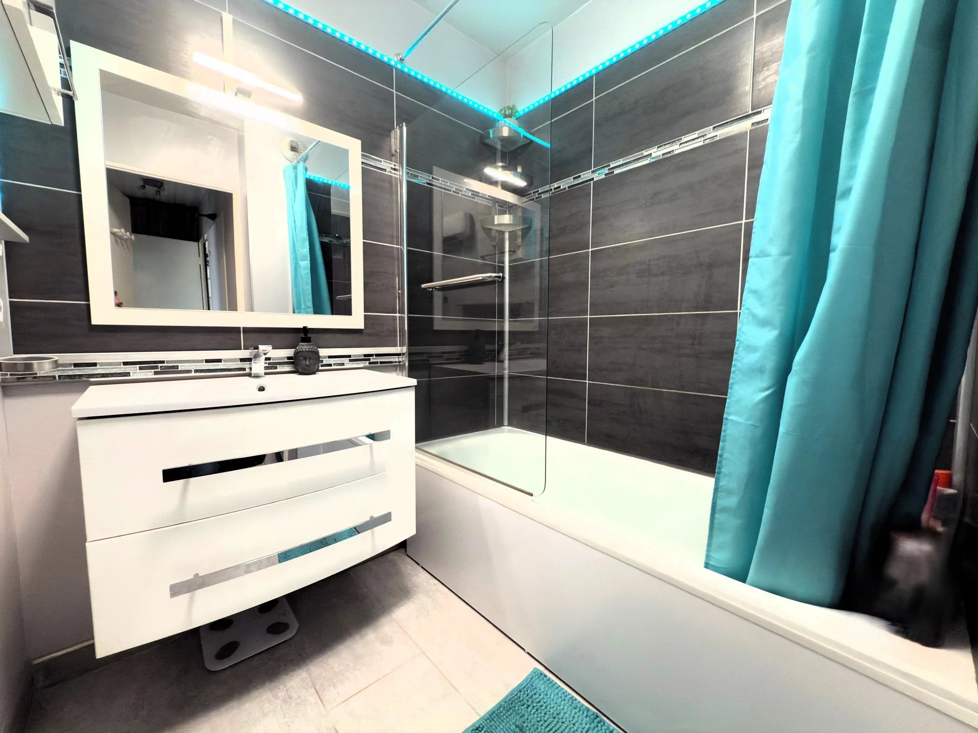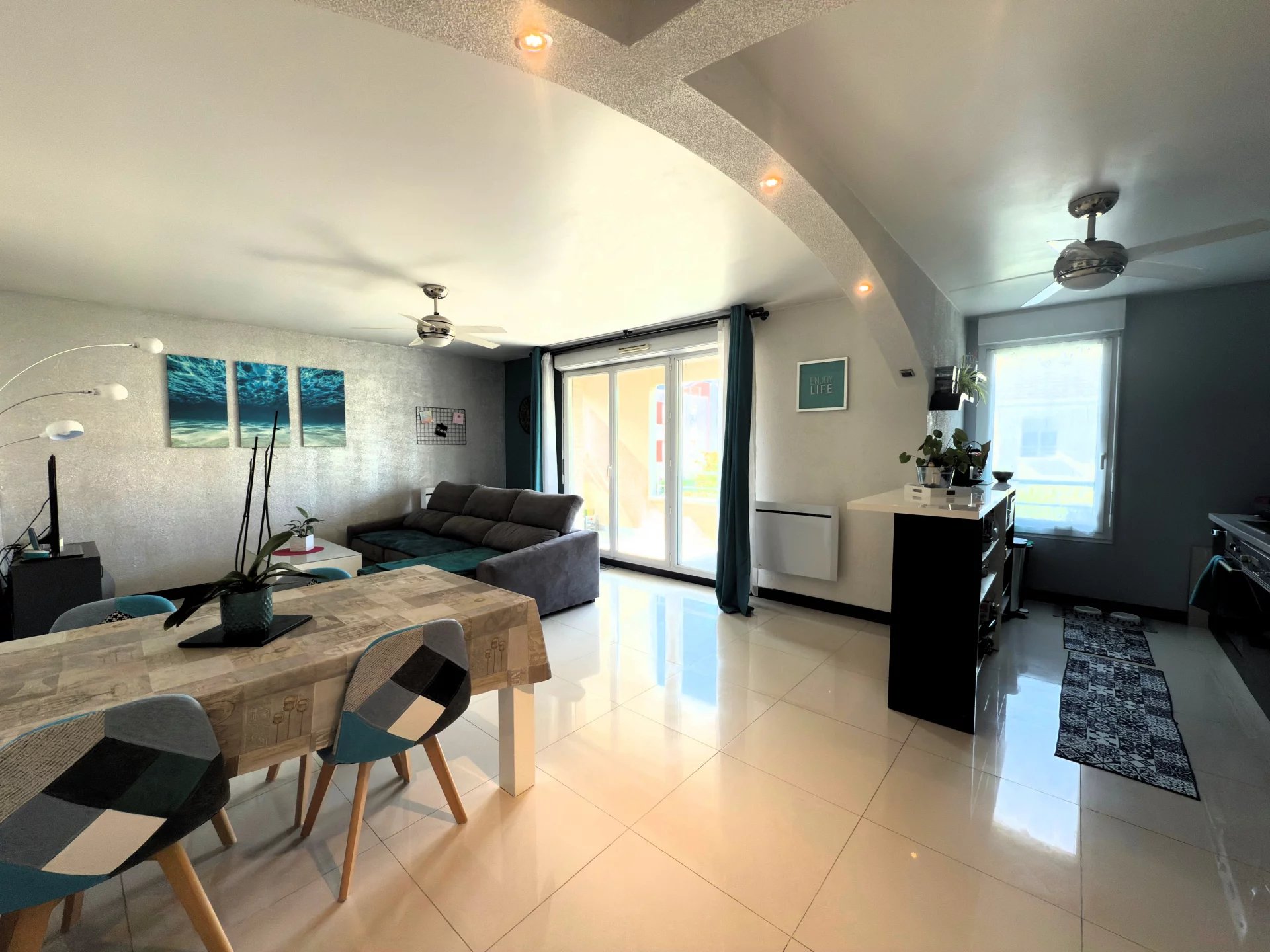 Cet appartement se compose d'une entrée donnant sur une grande pièce à vivre d'environ 32 m² avec cuisine américaine entièrement aménagée, vous profiterez également d'un grand balcon exposé plein Sud. Une partie nuit composée d'un dégagement, deux chambres avec placards, une superbe salle de bains aménagée, un toilette séparé. Le plus deux parkings l'un au sous-sol (second parking possible + 8 000 €).