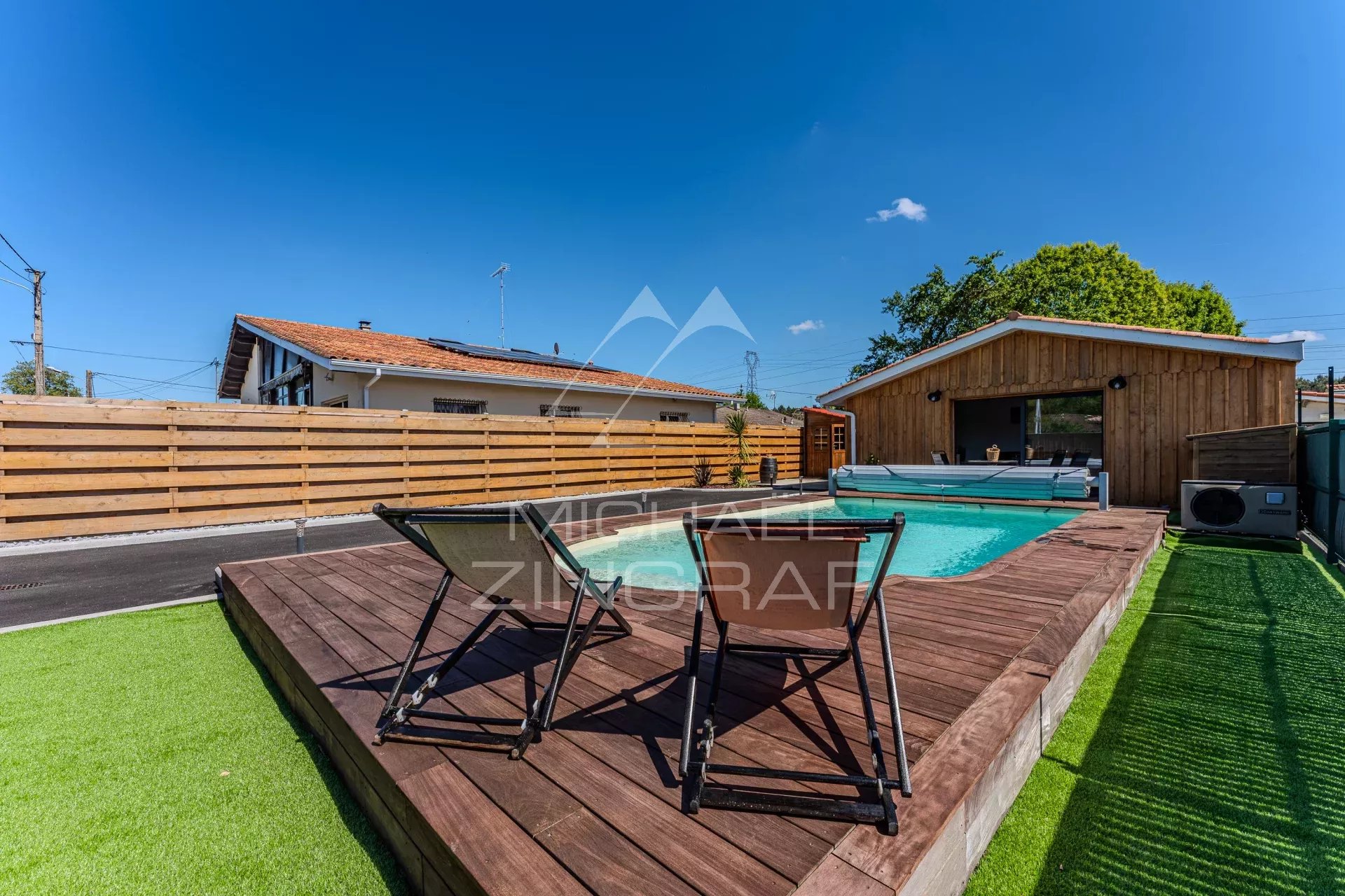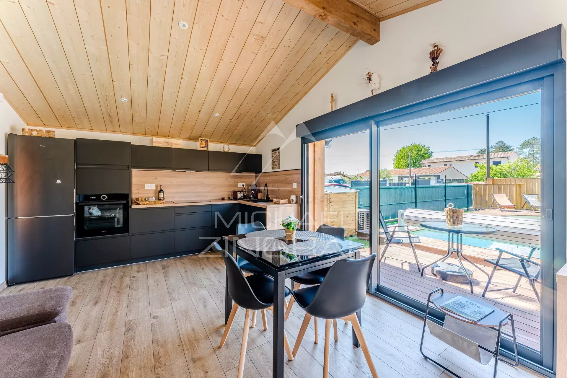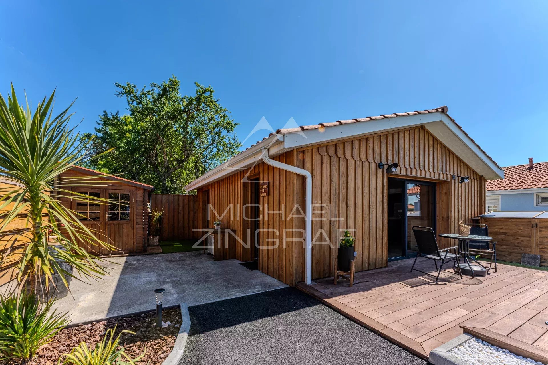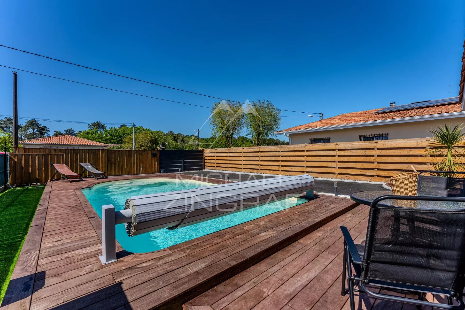 Michael Zingraf vous présente, à Marcheprime, cette charmante maison de plain-pied d’environ 45 m², édifiée sur un terrain clos de 250 m² avec piscine chauffée. Nichée dans un quartier paisible et résidentiel, cette maison offre un cadre de vie agréable et fonctionnel. Elle se compose d’un séjour convivial avec cuisine ouverte entièrement équipée, d’une chambre avec placard intégré et d’une salle d’eau moderne. L’ensemble bénéficie de prestations confortables, telles que la climatisation réversible pour un confort optimal en toute saison. À l’extérieur, vous profiterez d’un espace parfaitement aménagé : une piscine chauffée pour vos moments de détente, un cabanon pratique pour le rangement des vélos ou des équipements, ainsi qu’un portail électrique sécurisant l’accès à la propriété. Facile à entretenir, cette maison représente une opportunité idéale pour une résidence principale, une résidence secondaire ou un investissement locatif à seulement quelques minutes des axes principaux et des commodités. Un bien rare sur le secteur, à visiter sans tarder.