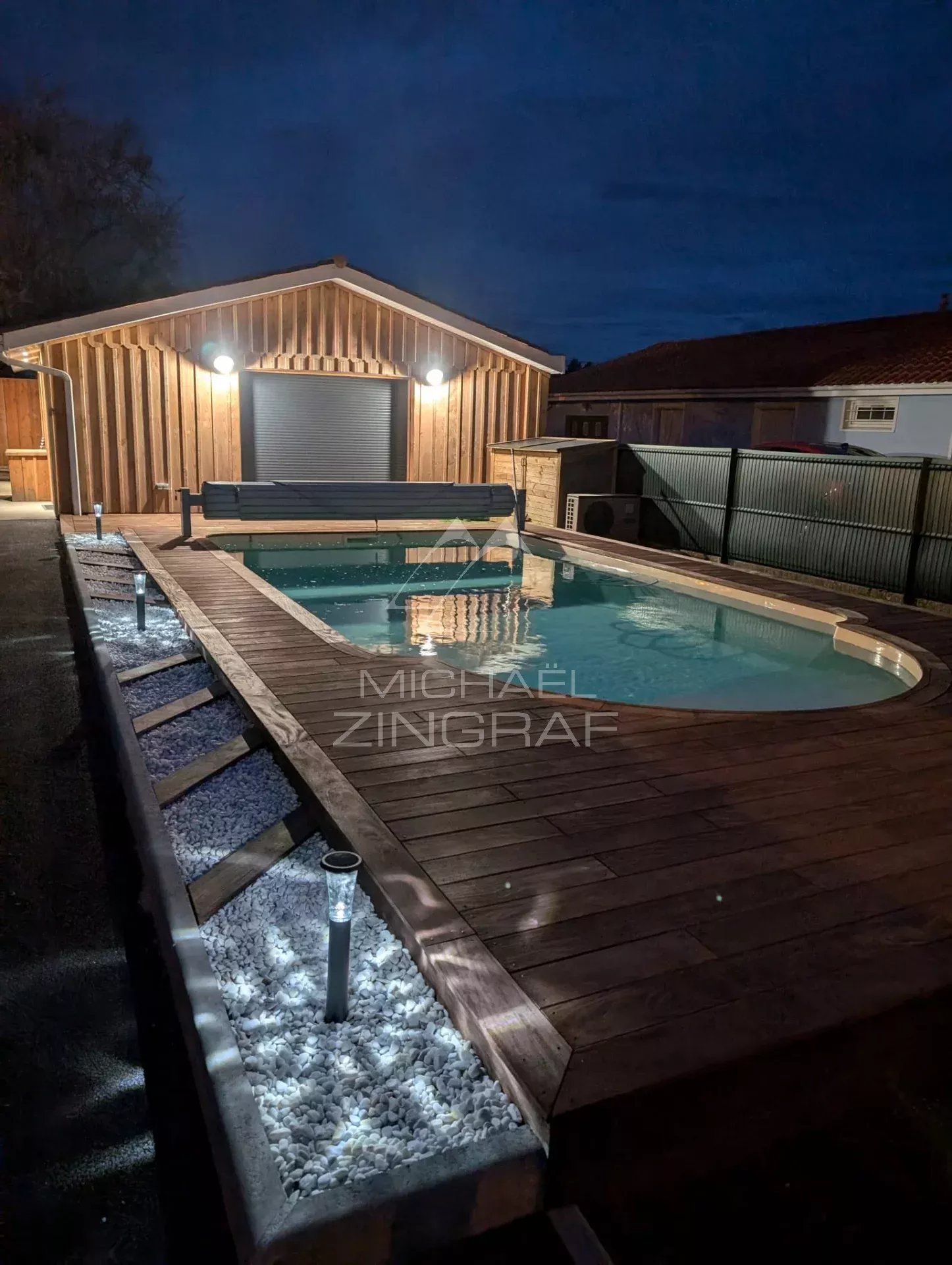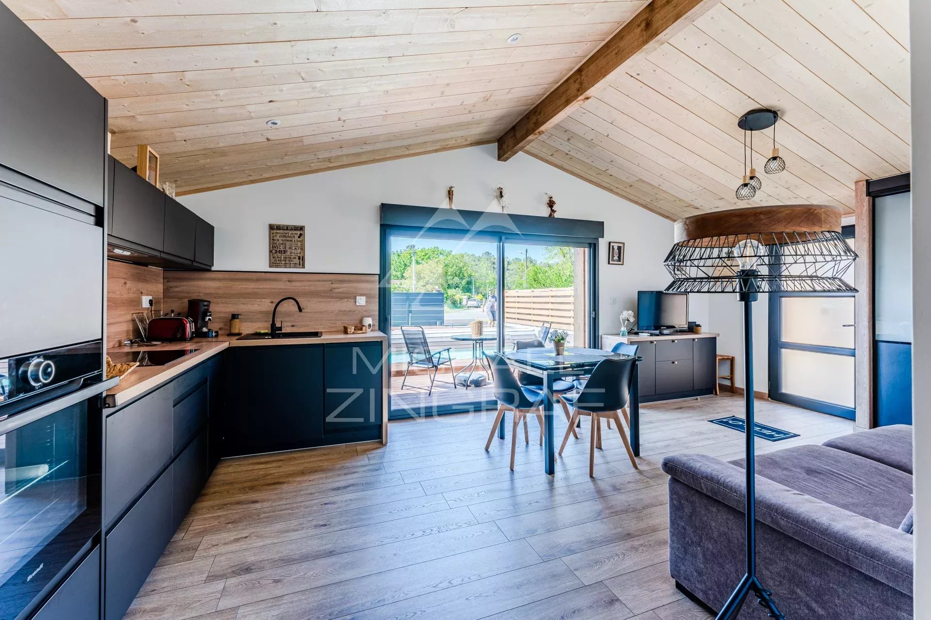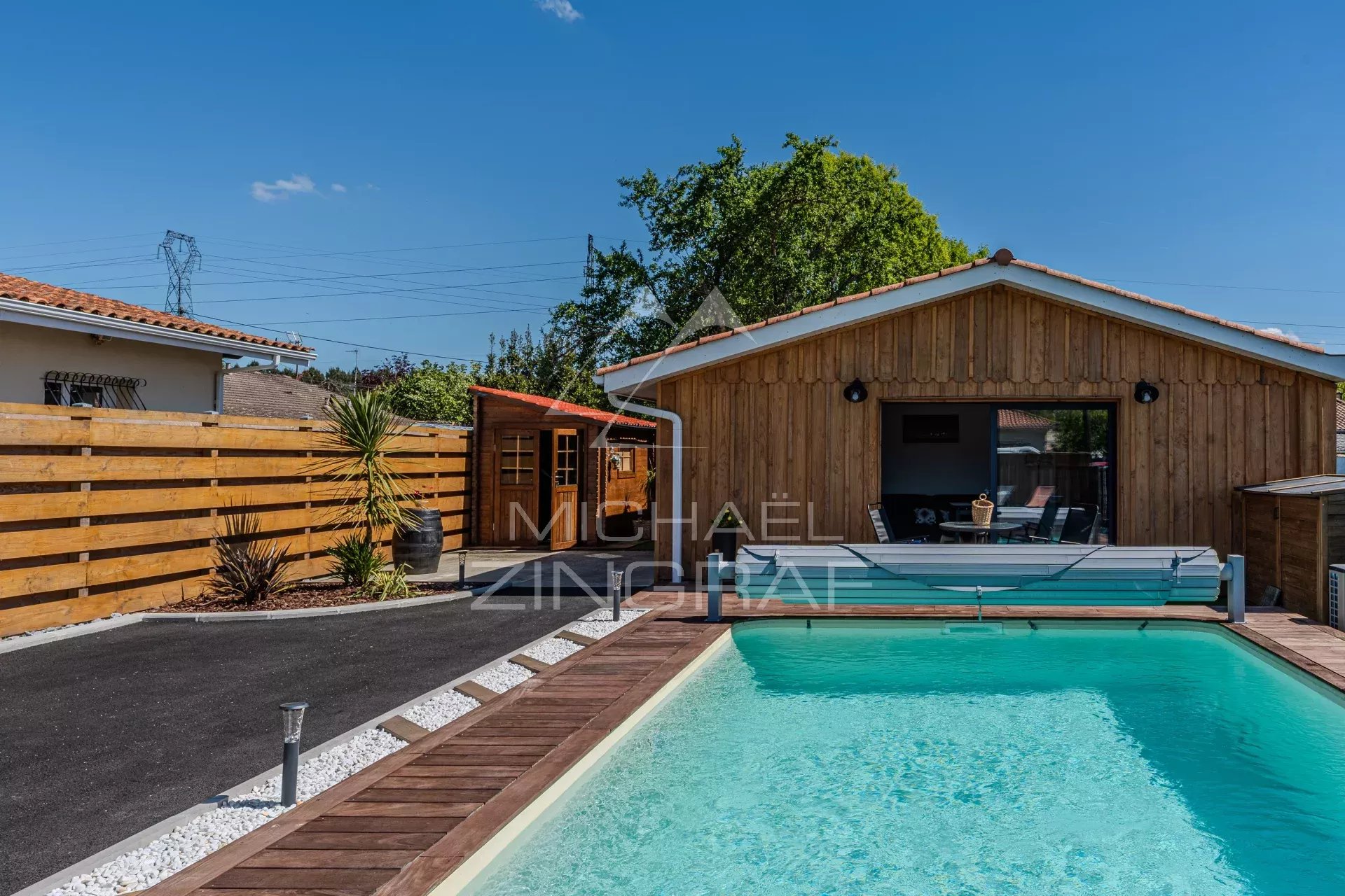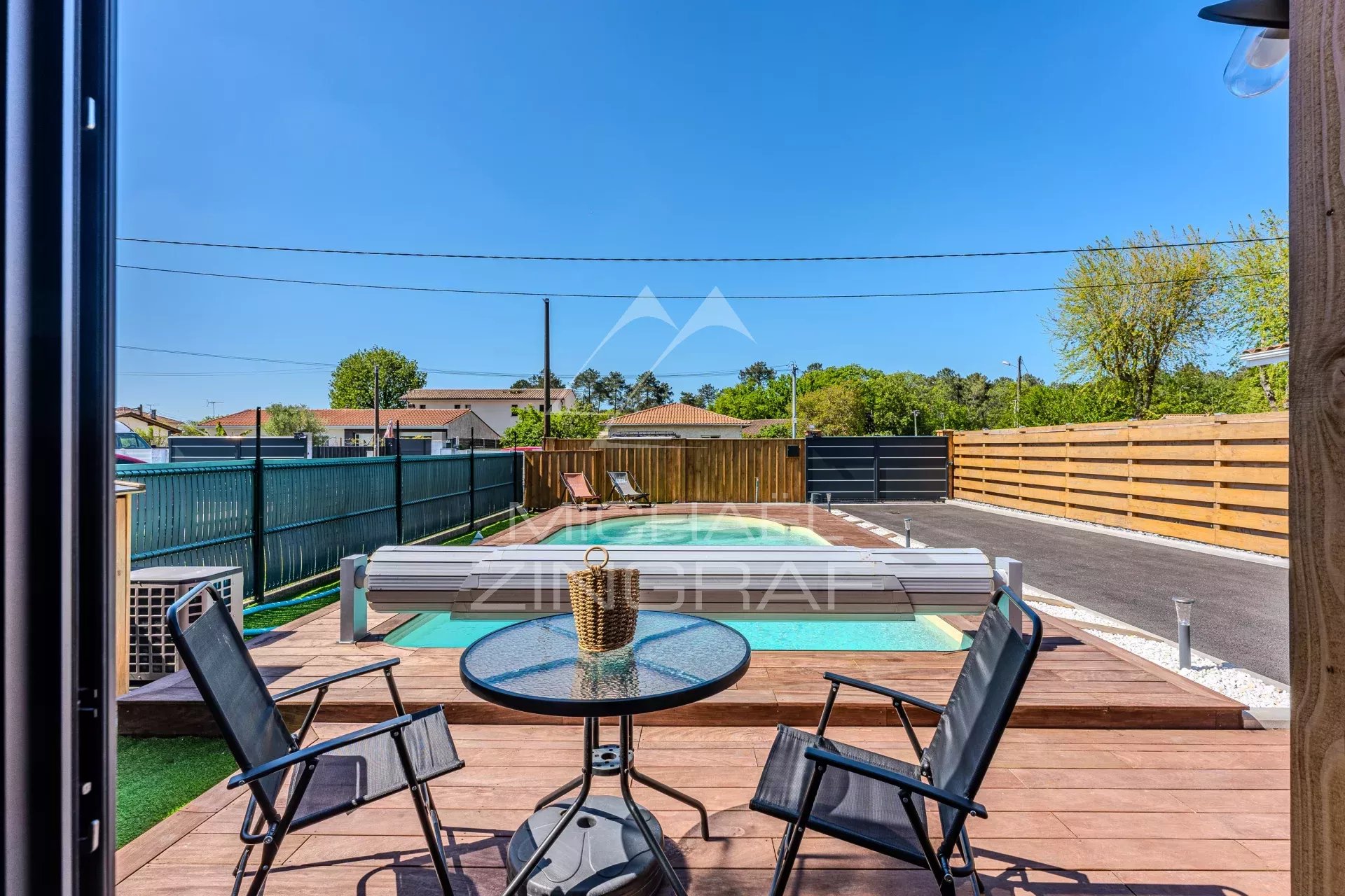 Michael Zingraf vous présente, à Marcheprime, cette charmante maison de plain-pied d’environ 45 m², édifiée sur un terrain clos de 250 m² avec piscine chauffée. Nichée dans un quartier paisible et résidentiel, cette maison offre un cadre de vie agréable et fonctionnel. Elle se compose d’un séjour convivial avec cuisine ouverte entièrement équipée, d’une chambre avec placard intégré et d’une salle d’eau moderne. L’ensemble bénéficie de prestations confortables, telles que la climatisation réversible pour un confort optimal en toute saison. À l’extérieur, vous profiterez d’un espace parfaitement aménagé : une piscine chauffée pour vos moments de détente, un cabanon pratique pour le rangement des vélos ou des équipements, ainsi qu’un portail électrique sécurisant l’accès à la propriété. Facile à entretenir, cette maison représente une opportunité idéale pour une résidence principale, une résidence secondaire ou un investissement locatif à seulement quelques minutes des axes principaux et des commodités. Un bien rare sur le secteur, à visiter sans tarder.