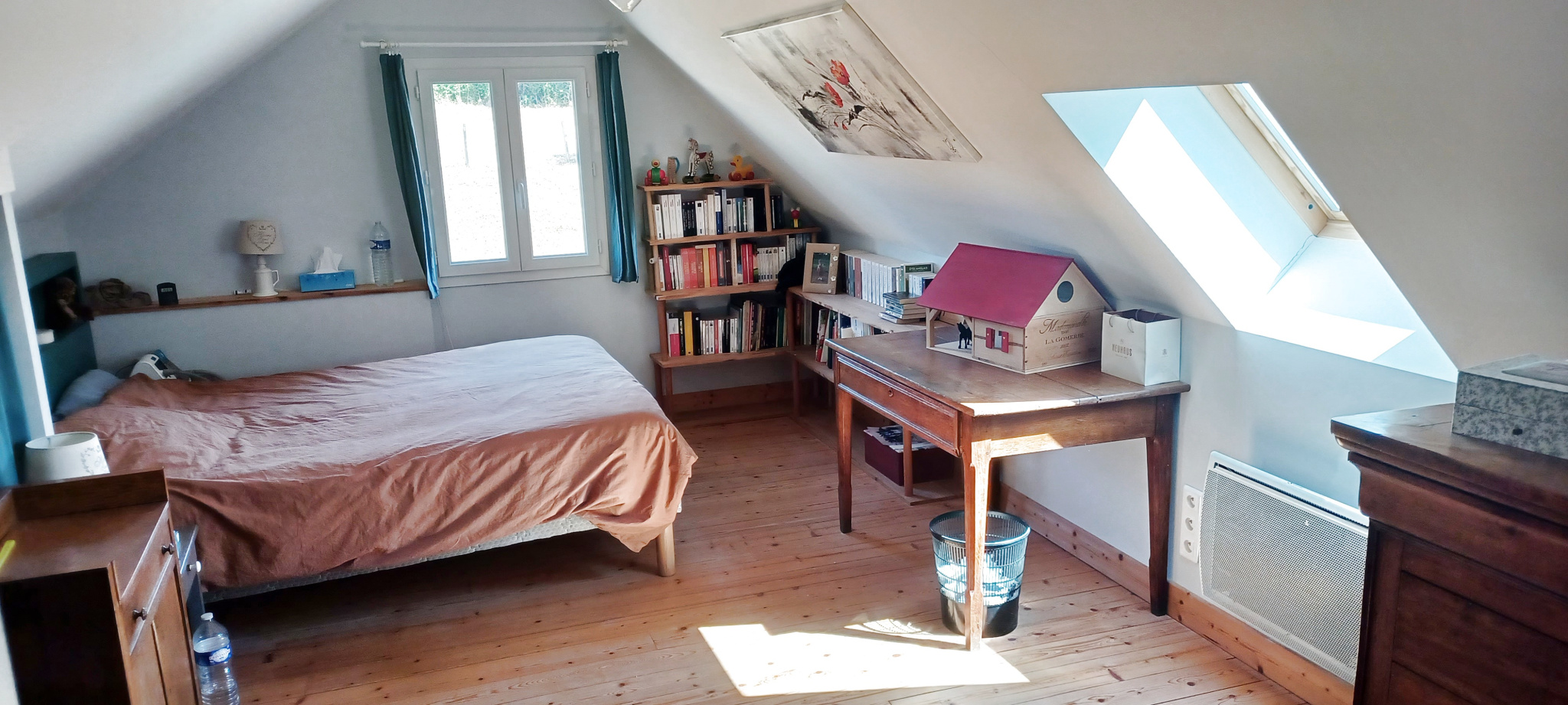A l'étage palier-salon en mezzanine et couloir desservant 4 chambres sur parquets, salle d'eau et toilettes séparées. Isolation. Huisseries bois double vitrage. Radiateurs.