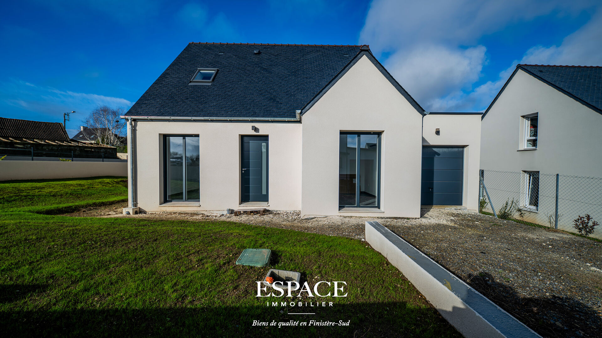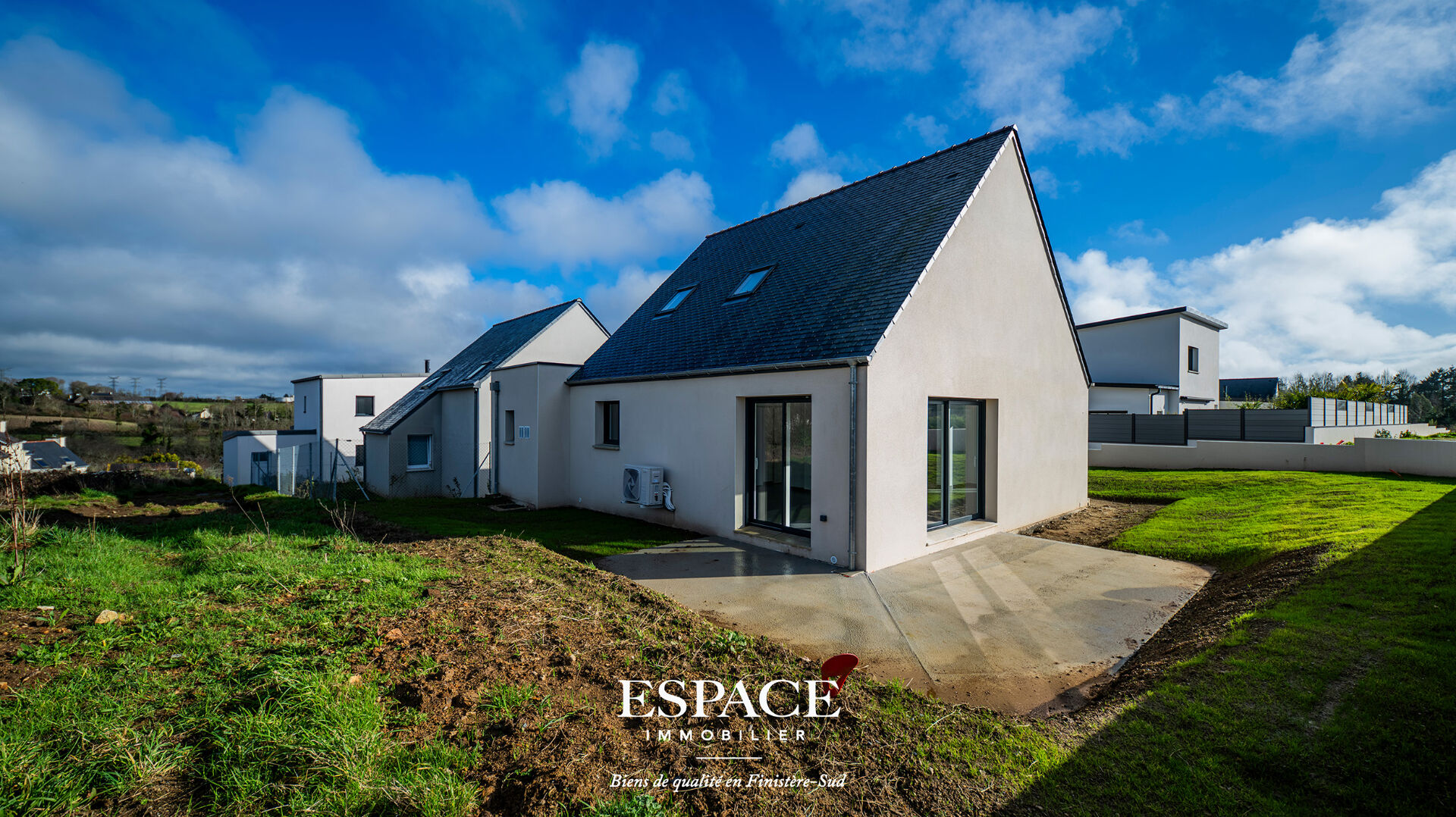 Située à seulement 5 à 10 minutes du centre-ville, cette maison neuve de 97 m², édifiée sur un terrain de 350 m², vous offre le confort et les avantages d'un bien déjà construit, sans attendre la fin du chantier. Au rez de chaussée, vous découvrirez un lumineux salon-séjour ouvrant sur la terrasse, une belle cuisine équipée, une chambre et une salle de douche avec WC, idéales pour vivre de plain-pied, un cellier pratique, un garage attenant. A l'étage le palier dessert deux chambres, une salle de bains, un WC. Cette maison bénéficie de bonnes prestations et d'une conception pensée pour le confort au quotidien. Cette maison est à découvrir avec l'agence ESPACE IMMOBILIER, biens de qualité en Finistère Sud. Contactez-nous dès aujourd'hui pour programmer une visite. Les informations sur les risques auxquels ce bien est exposé sont disponibles sur le site Géorisques : [www.georisques.gouv.fr](http://www.georisques.gouv.fr). (3.76 % honoraires TTC à la charge de l'acquéreur.)