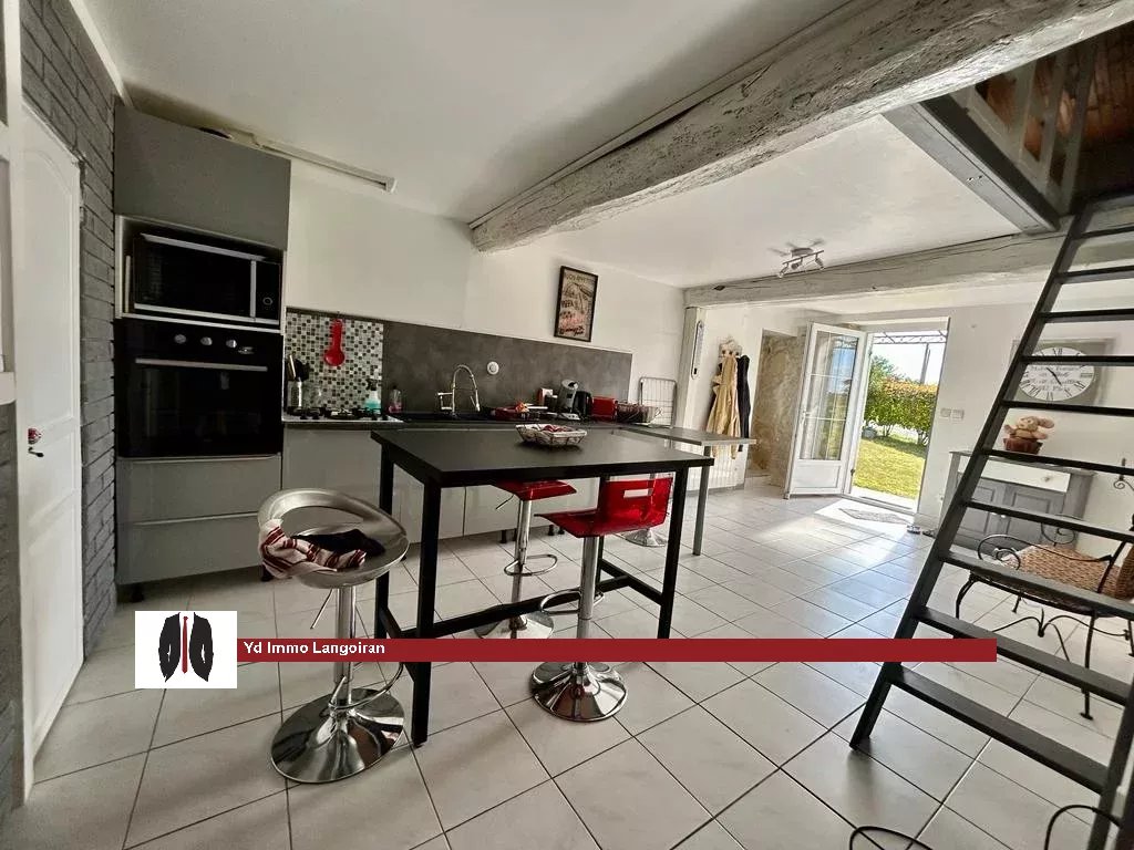 Environnement calme et privilégié pour cette jolie maison en pierre de 100m² habitables de plain-pied avec ses 2 jardins répartis à l'avant et à l'arrière de l'habitation. Située au grand calme, la maison s'ouvre sur une belle cuisine aménagée et équipée surplombée d'une mezzanine permettant un espace nuit, salle de jeux ou espace de rangement. 2 chambres dont une donnant accès au jardin, une salle d'eau carrelée ainsi qu'un wc séparé. La partie salon/salle à manger, ancien chai réhabilité, propose un espace cosy propice à la détente. Il donne accès à un second jardin exposé Sud/Ouest avec sa terrasse et son cabanon en bois. Petite dépendance extérieure. Bien prêt à vivre, contactez votre agence YD Immo OO