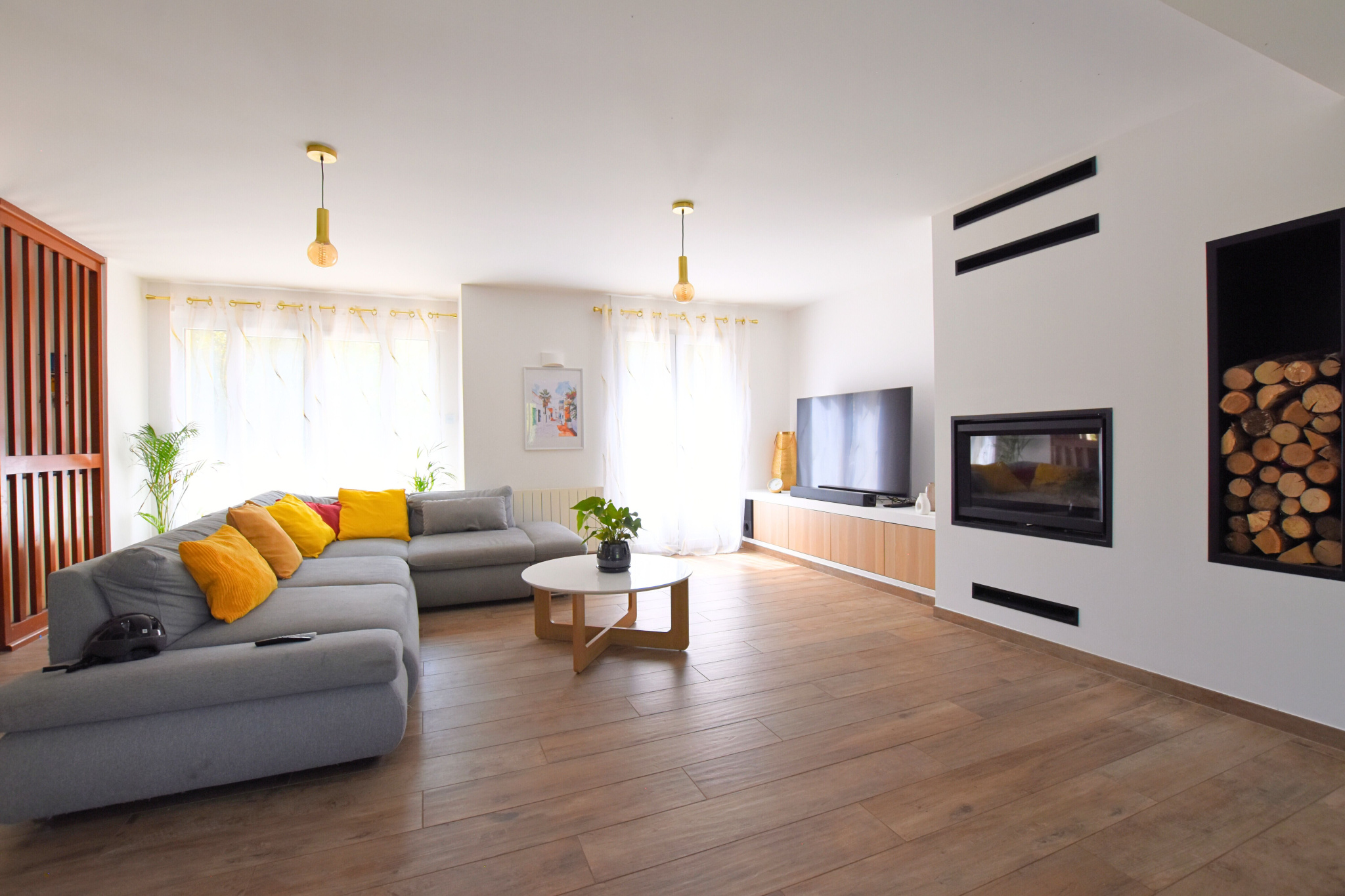 Une entrée accueillante vous mène vers un VASTE ESPACE DE VIE LUMINEUX de 46 m2, sublimé par un poêle à bois Stûv, créant une ambiance chaleureuse et conviviale. La cuisine dînatoire entièrement équipée est idéale pour partager de bons moments en famille ou entre amis. Ce niveau comprend également 1 suite parentale avec salle d'eau de 16.5 m2, une buanderie et un WC indépendant.