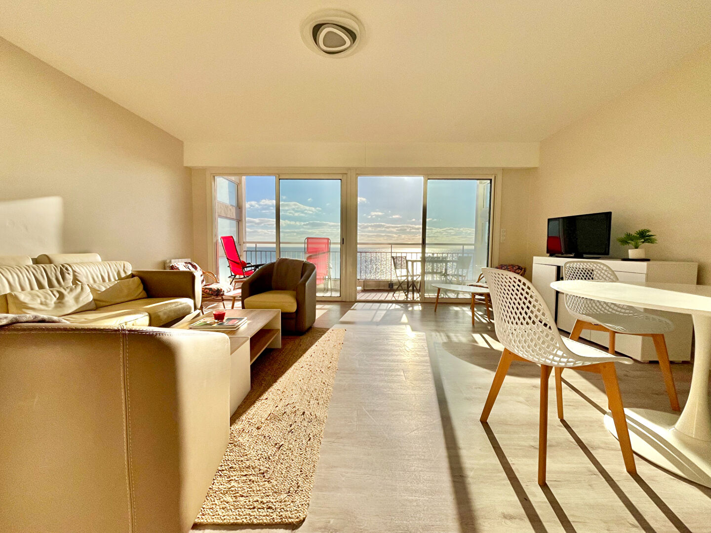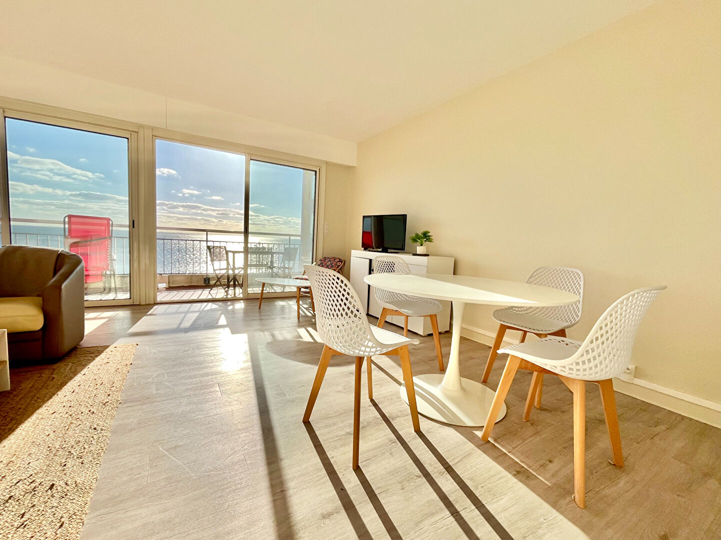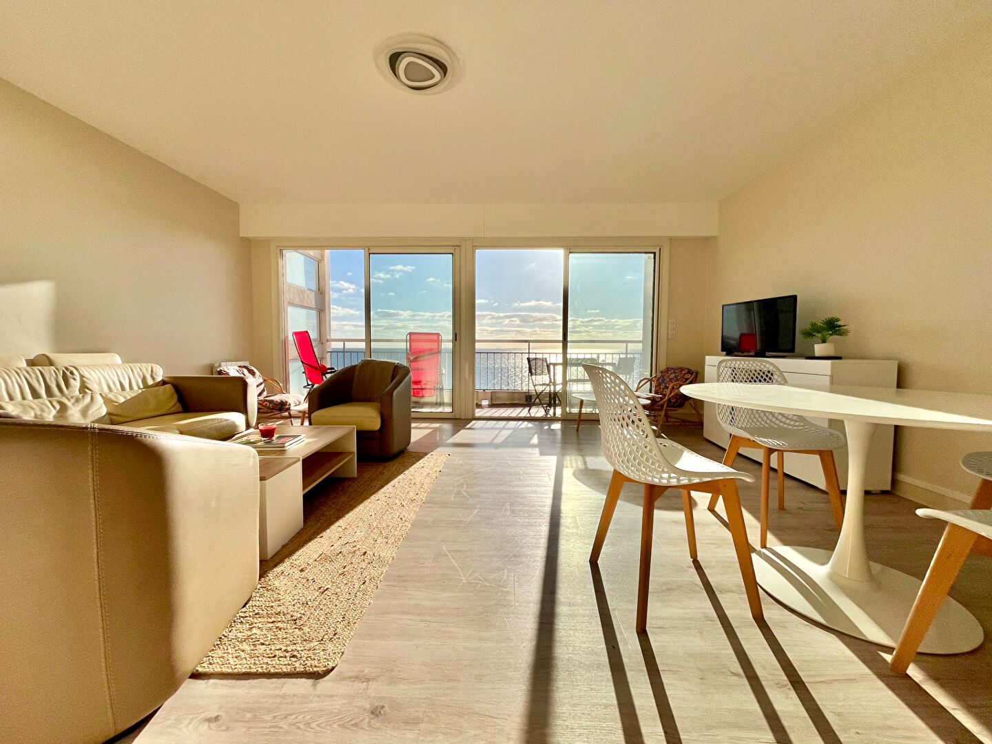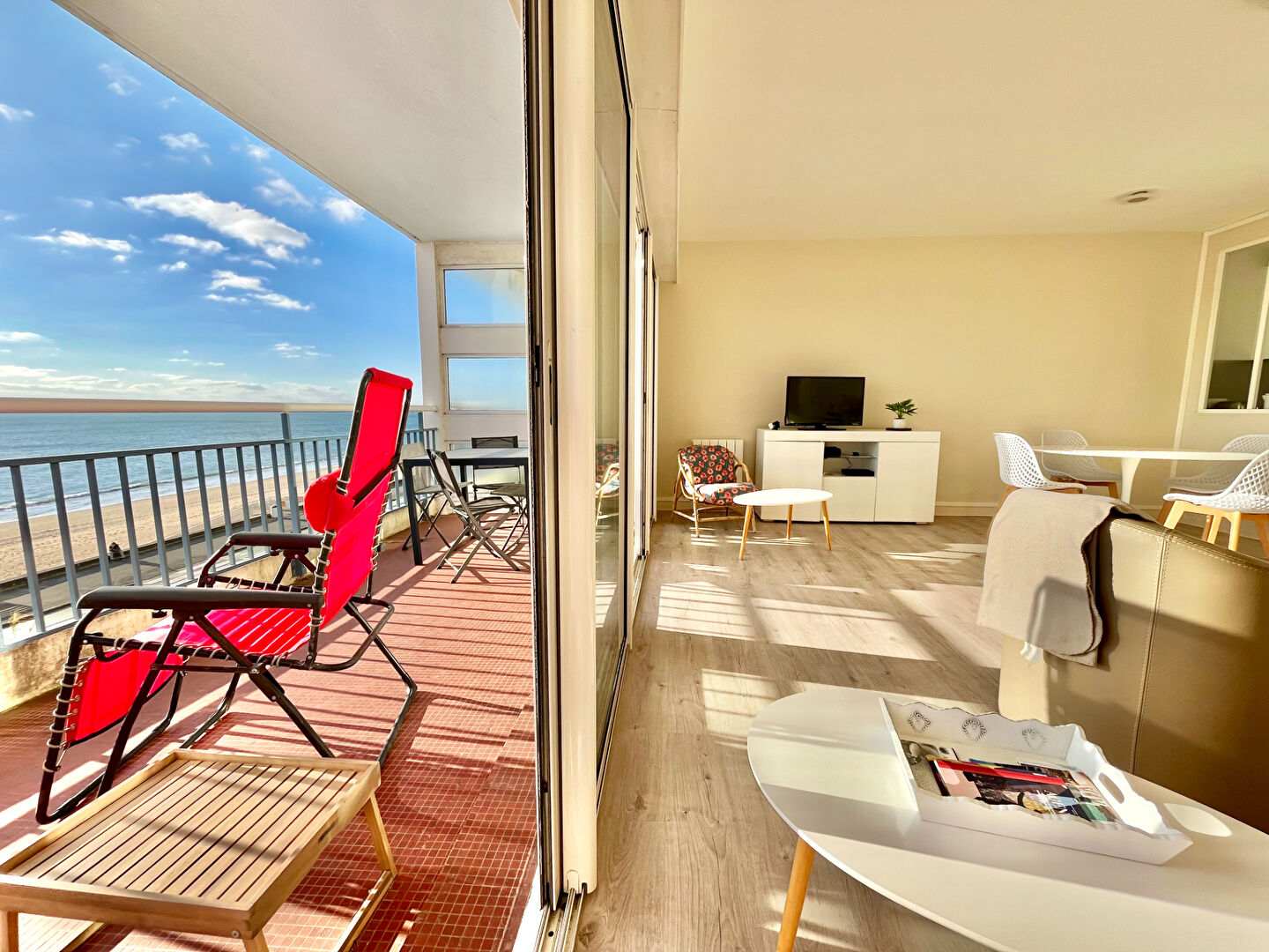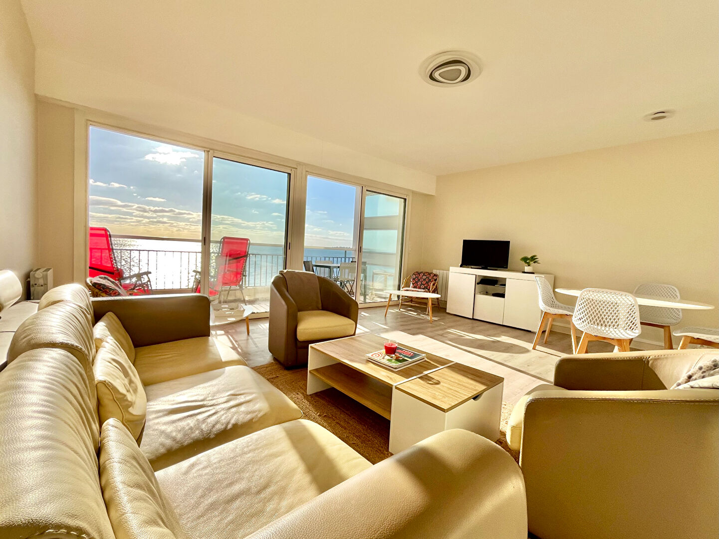 FACE MER, venez découvrir cet appartement traversant aux très beaux volumes, situé à quelques minutes à pieds seulement des commerces de l'avenue Lajarrige. Il se compose d'une grande entrée, une vaste pièce de vie avec double baie face mer, et une cuisine ouverte entièrement A/E avec verrière, une salle d'eau et des WC indépendants. Sur l'arrière 2 belles chambres . Grande terrasse de plus de 11m2 offrant une vue imprenable sur toute la baie de La Baule. Un stationnement intérieur et une cave viennent compléter ce bien. Très beaux volumes pour cet appartement entièrement rénové en 2024, au sein duquel vous n'aurez qu'à posez vos valises. Bien rentré par Stéphanie SOUDY - 07 81 53 85 20 - agent commercial, titulaire de la carte professionnelle n° CPI 4402 2016 000 011 776. (4.00 % honoraires TTC à la charge de l'acquéreur.) Copropriété de 164 lots - dont 71 lots habitation. (Pas de procédure en cours). Charges annuelles : 1600 euros. Stephanie SOUDY (EI) Agent Commercial - Numéro RSAC : - .