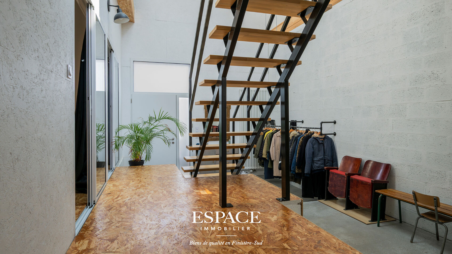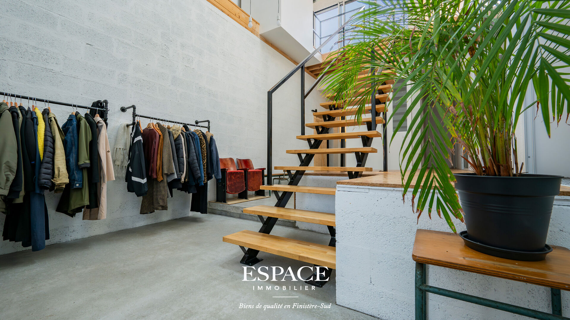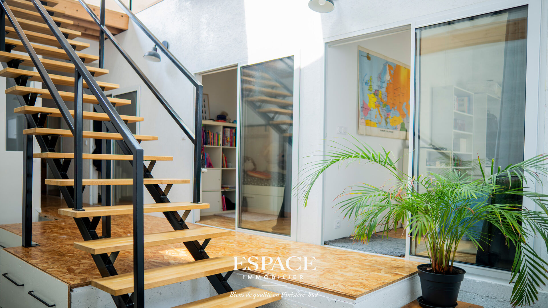 Au coeur de CONCARNEAU, à deux pas de la ville Close, du port, des commerces et services, cette maison moderne et rare à l'esprit « Loft » est née en 2021 de la transformation subtile d'un ancien bâtiment professionnel. Elle déploie aujourd'hui une surface de près de 200 m² aux volumes généreux et à l'atmosphère singulière, où le métal, le béton, le bois et la lumière composent un univers résolument contemporain. Le rez de chaussée pensé comme un espace intime et fonctionnel accueille quatre chambres aux fermetures vitrées, filtrant la lumière et conférant au lieu une douce originalité. Une salle d'eau, un WC indépendant et une buanderie complètent ce niveau, auquel s'ajoute une pièce isolée, aujourd'hui studio musical, offrant un univers créatif ou professionnel selon vos besoins. Un bel escalier associant bois et métal conduit au niveau supérieur. La pièce de vie baignée de lumière par deux baies vitrées et des châssis de toits, met en valeur une superbe charpente métallique apparente. Cet espace convivial regroupe le salon-séjour et la cuisine ouverte équipée. L'ensemble s'ouvre sur une terrasse de 40 m², exposée Sud et Ouest, sans vis-à-vis, véritable prolongement de l'espace de vie aux beaux jours. A ce niveau, la suite parentale, propose chambre, dressing et salle de douche. Côté stationnement et rangement, la maison bénéficie d'un garage de 35 m², rare privilège en centre-ville, offrant de multiples possibilités : stationner un grand véhicule, créer un atelier ou combiner espace de stockage et zone de bricolage. Un bien rare pour les amateurs d'espaces atypiques, de confort moderne et de vie citadine est à découvrir avec l'agence ESPACE IMMOBILIER, spécialiste des belles maisons et des beaux appartements en Finistère Sud. Les diagnostics immobiliers seront réalisés en septembre 2025. Contactez-nous dès aujourd'hui pour programmer une visite. Les informations sur les risques auxquels ce bien est exposé sont disponibles sur le site Géorisques : [www.georisques.gouv.fr](http://www.georisques.gouv.fr). (3.65 % honoraires TTC à la charge de l'acquéreur.)