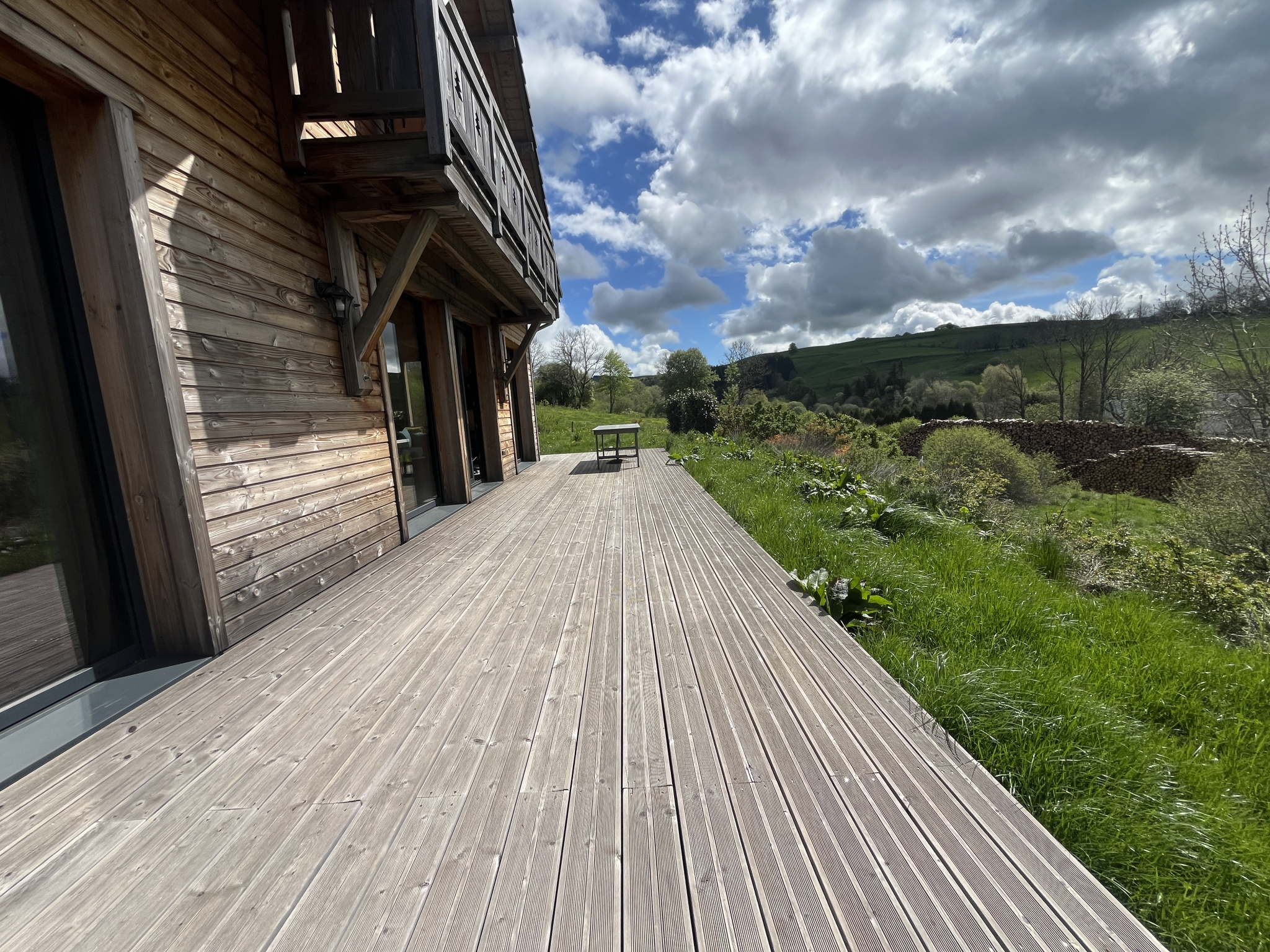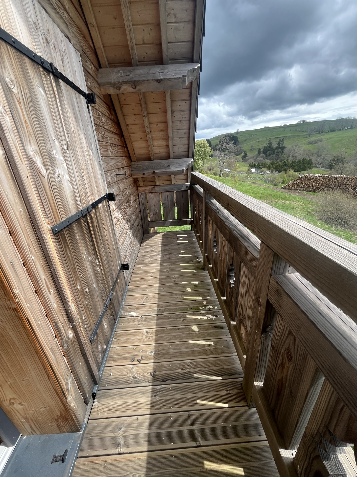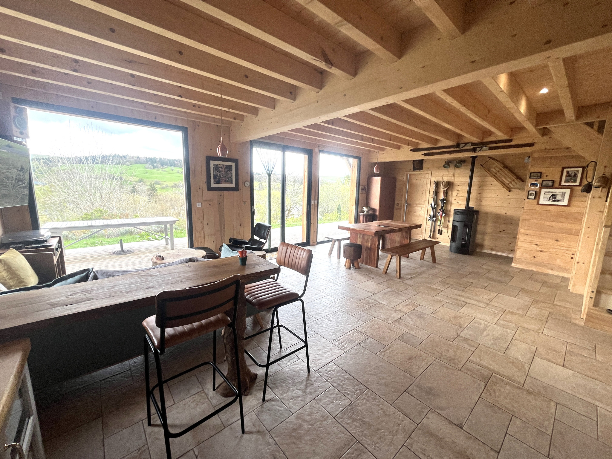 Sur les hauteurs d'Espinchal beau chalet d'environ 104m2 sur environ 2387m2 de terrain. Il dispose de 46m2 d'espace de vie confortable comprenant un séjour cuisine équipé d'un poêle à bois donnant sur une terrasse, trois chambres (dont deux sur balcon), un bureau, une salle de bain avec wc et une buanderie avec wc.