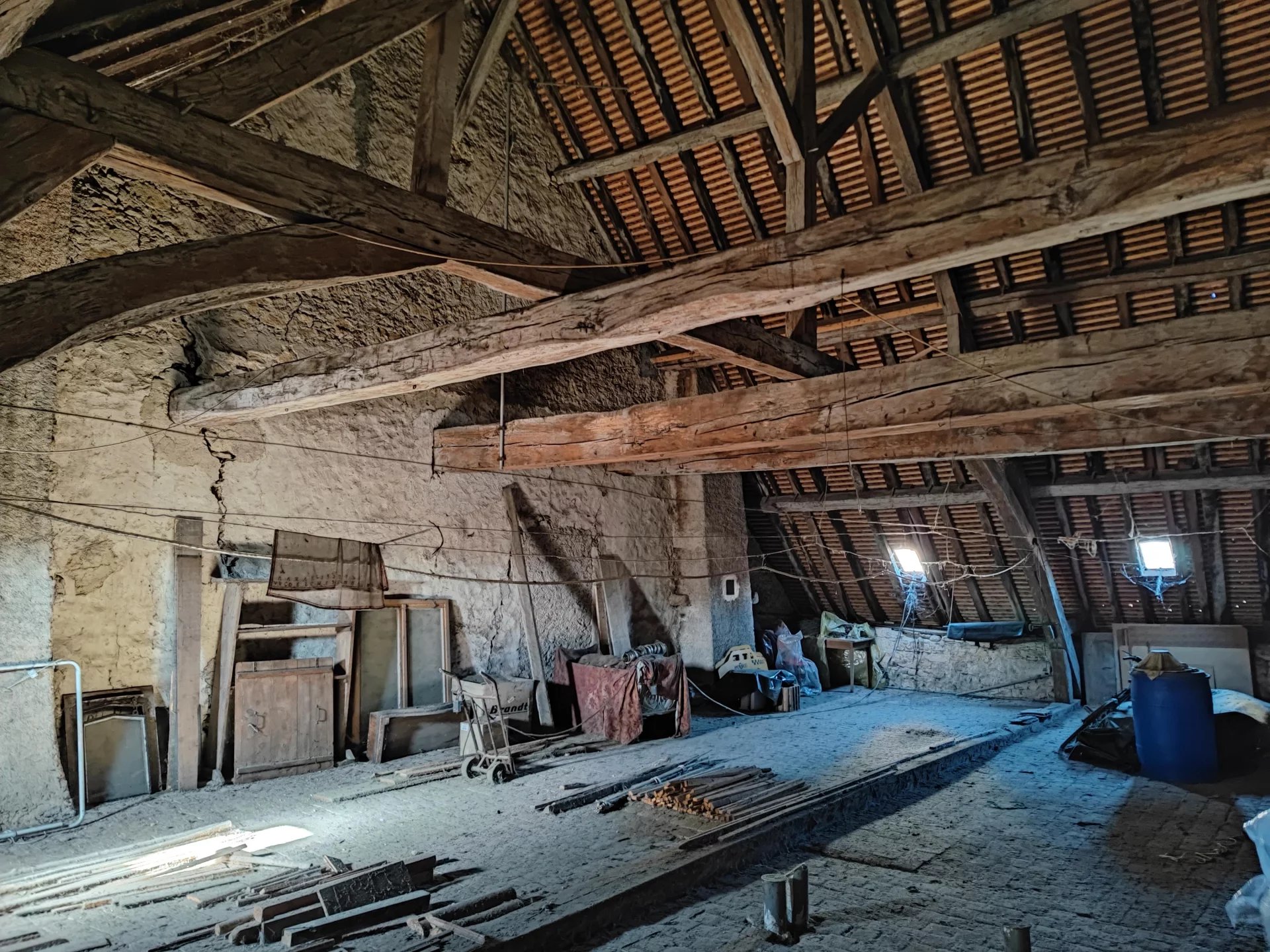 Le rez-de-chaussée est en bon état général, mais les étages supérieurs nécessitent des travaux de rénovation. Chauffage au granulé et appoint électrique. L’habitation est reliée au tout à l’égout.