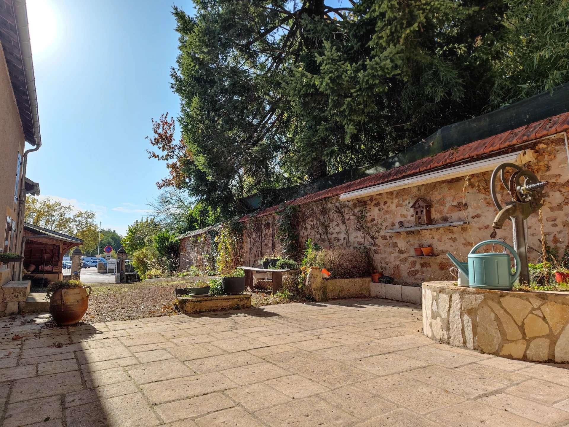 Une jolie cour fermée d’environ 250m2 vous permet de profiter d’un espace extérieur agréable. Cet espace donne également accès aux diverses dépendances, dont un atelier, appentis, carport et une cave.