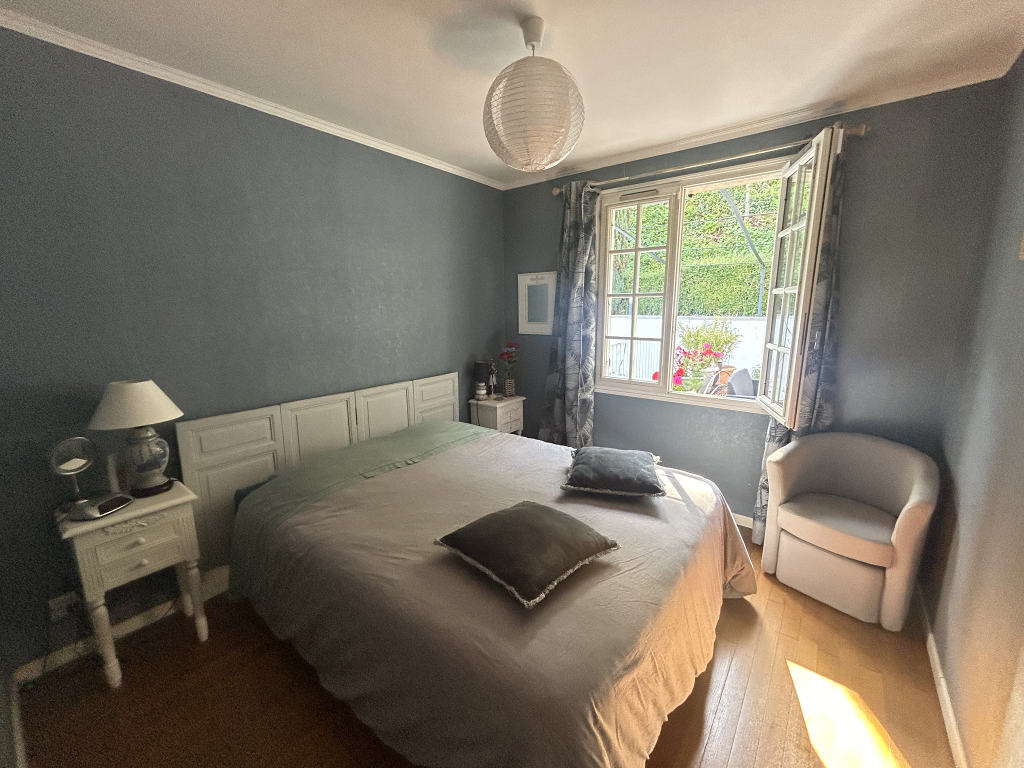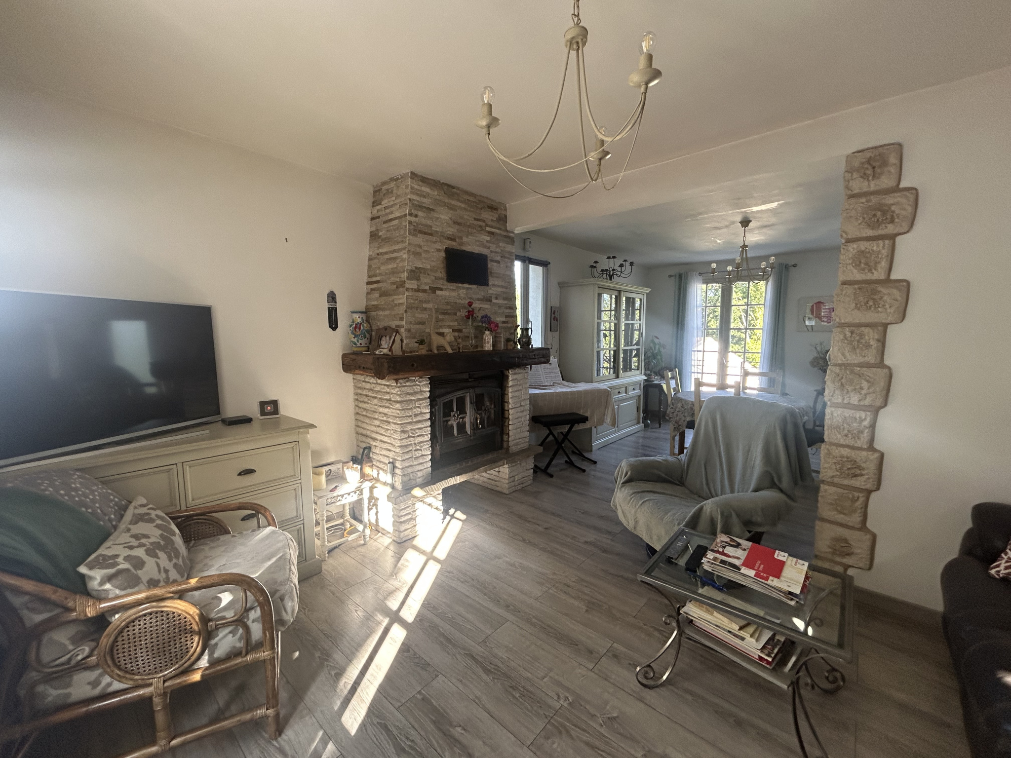 Dans un environnement privilégié, nous vous proposons ce pavillon élevé sur sous sol total de 106m2 habitables sur un terrain clos de 1433m2. Il comprend au rez de chaussée: Un salon/séjour avec cheminée insert, une cuisine équipée (four, plaques hotte, lave vaisselle), un couloir qui dessert une chambre, un bureau, une salle de bains, un wc. A l'étage, un palier dessert deux chambres, un bureau et une salle d'eau avec wc. combles de rangement. Le sous sol est aménagé (garage double, atelier et buanderie). une terrase de 60m2 avec store bannes vous attend pour vous prélassser et prendre vos repas à l'ombre. pas de nuisances ni vis a vis. La vue est imprennable.