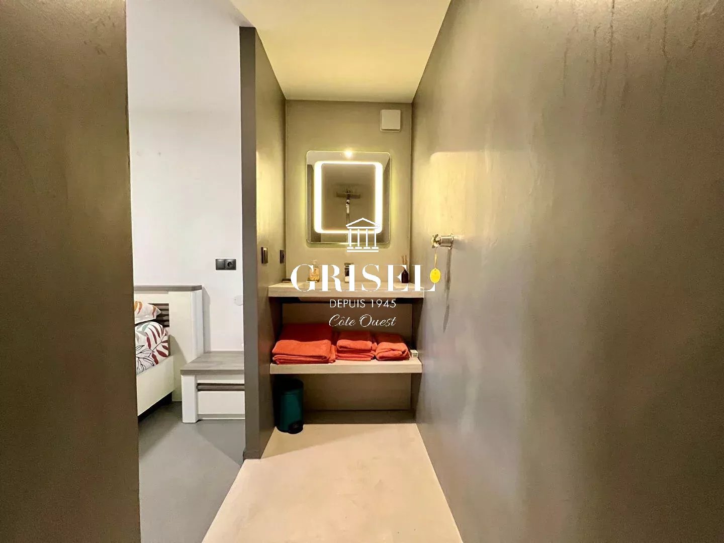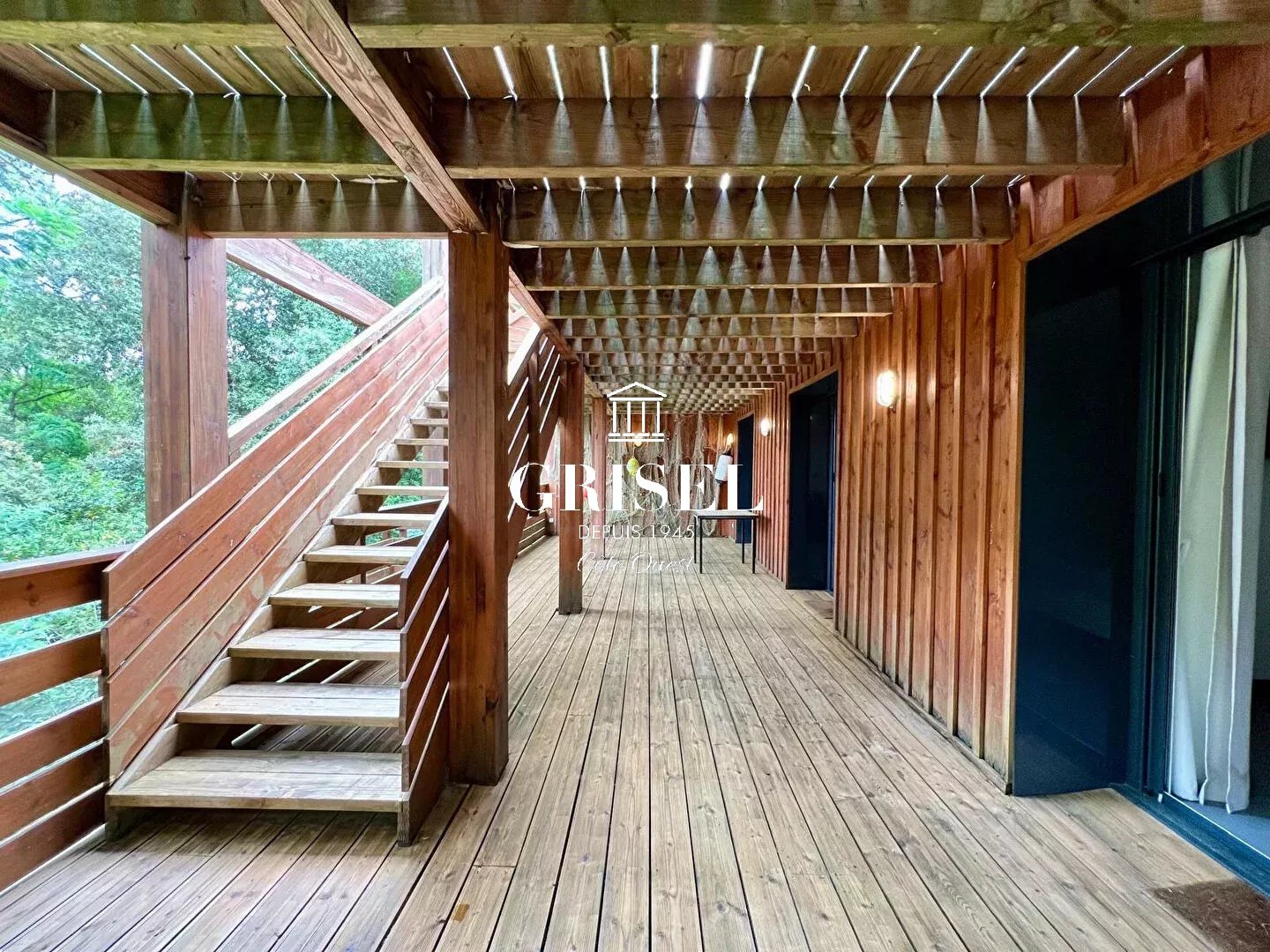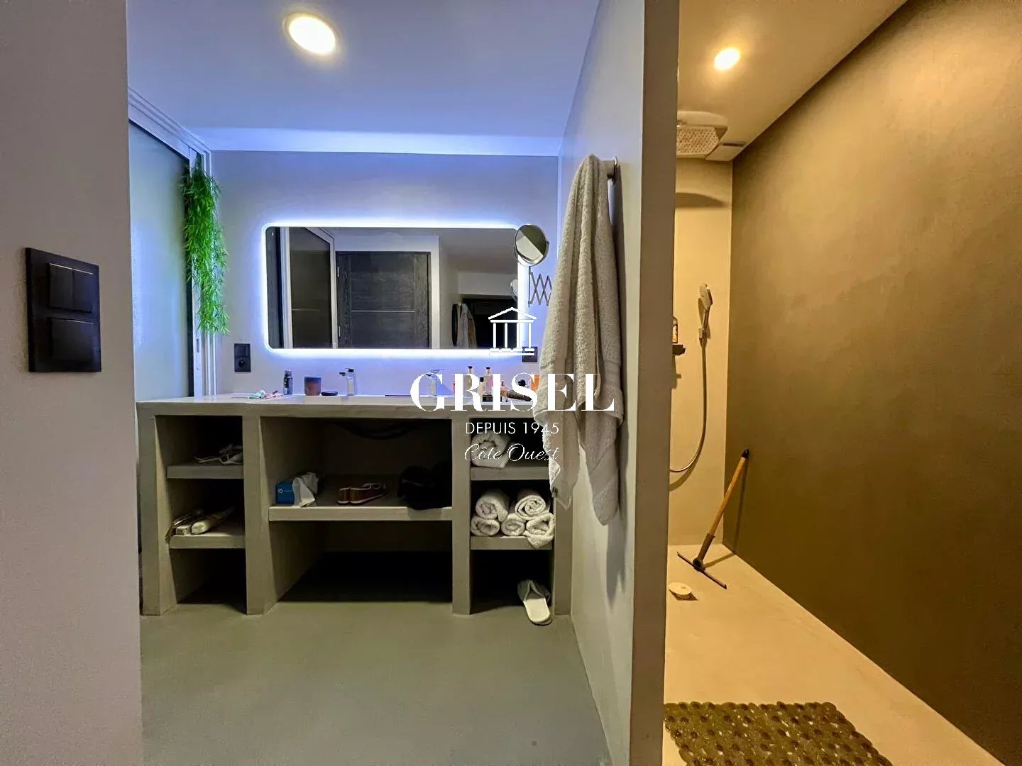 Bienvenue dans cette maison lumineuse et spacieuse de 150 m² sur deux niveaux, nichée dans un environnement calme et boisé, à seulement 5 minutes à pied du charmant village ostréicole de L'Herbe. Parfaite pour des vacances en famille ou entre amis, entre nature et bassin. Installée sur un terrain de 876 m², la maison offre tout le confort pour un séjour relaxant : Rez-de-chaussée : - Un salon chaleureux et lumineux - Une cuisine américaine toute équipée (four, lave-vaisselle, plaque, frigo, cafetière, etc.) - Une salle à manger conviviale donnant sur une grande terrasse exposée est pour vos petits-déjeuners ensoleillés - chambre avec sa propre salle d'eau - WC indépendant Mezzanine : Une belle mezzanine de 24 m² avec une vue dégagée sur la pinède, idéale comme coin lecture, jeux ou détente Rez-de-jardin : - 3 chambres avec placards, chacune avec leur propre salle d'eau privative - 2 WC indépendants - Accès à une seconde terrasse exposée est, ombragée le matin, parfaite pour les moments de calme Emplacement idéal Située à seulement 5 minutes à pied du village ostréicole de L'Herbe, vous pourrez profiter des cabanes d'huîtres en bord de bassin, des plages et des balades à vélo dans la forêt toute proche. Les plus : - 4 chambres avec 4 salles d'eau - Double terrasse exposée est - Vue imprenable sur les pins - Quartier calme et authentique - Cuisine toute équipée - Accès facile aux plages, au bassin et aux pistes cyclables À noter : Maison idéale pour 8 personnes. Linge de maison en option. Stationnement possible sur le terrain.