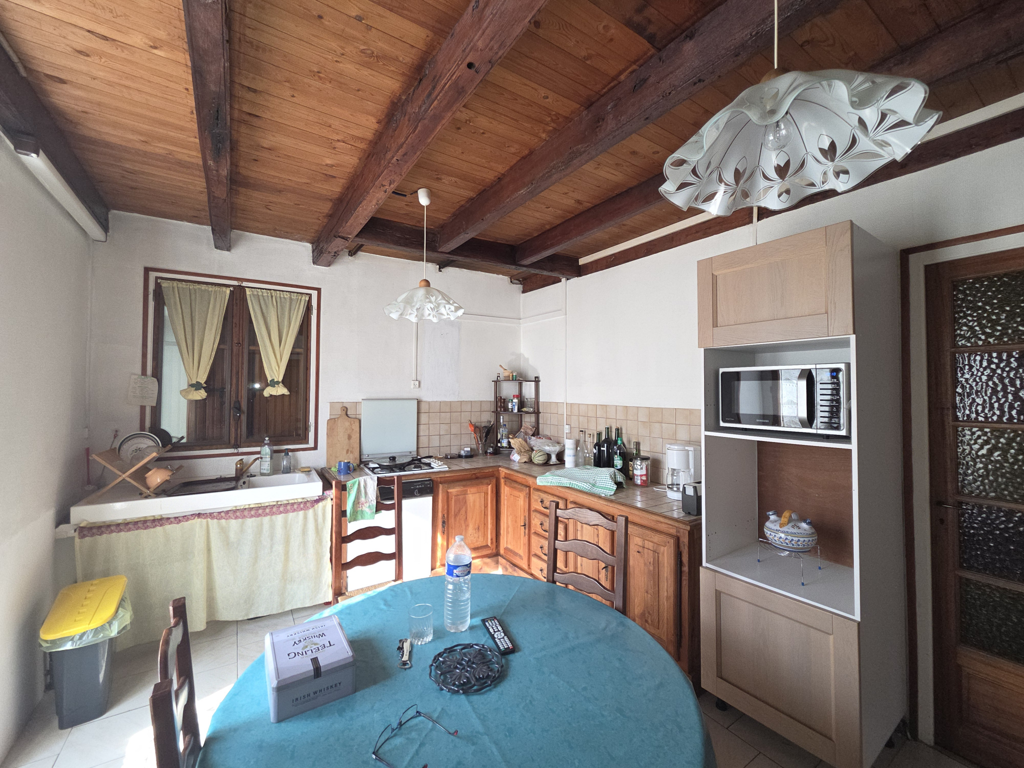 Bien caché derrière son porche, cette maison charentaise rénovée de près de 160 m2 est composé au rez de chaussée d'une spacieuse entrée avec placards, d'une cuisine aménagée, d'un séjour/salon avec cheminée (insert au gaz), un bureau, deux salles d'eau, deux wc , et une grande dépendance attenante de plus de 60 m2 permettant de laisser libre cours à d'autres projets.