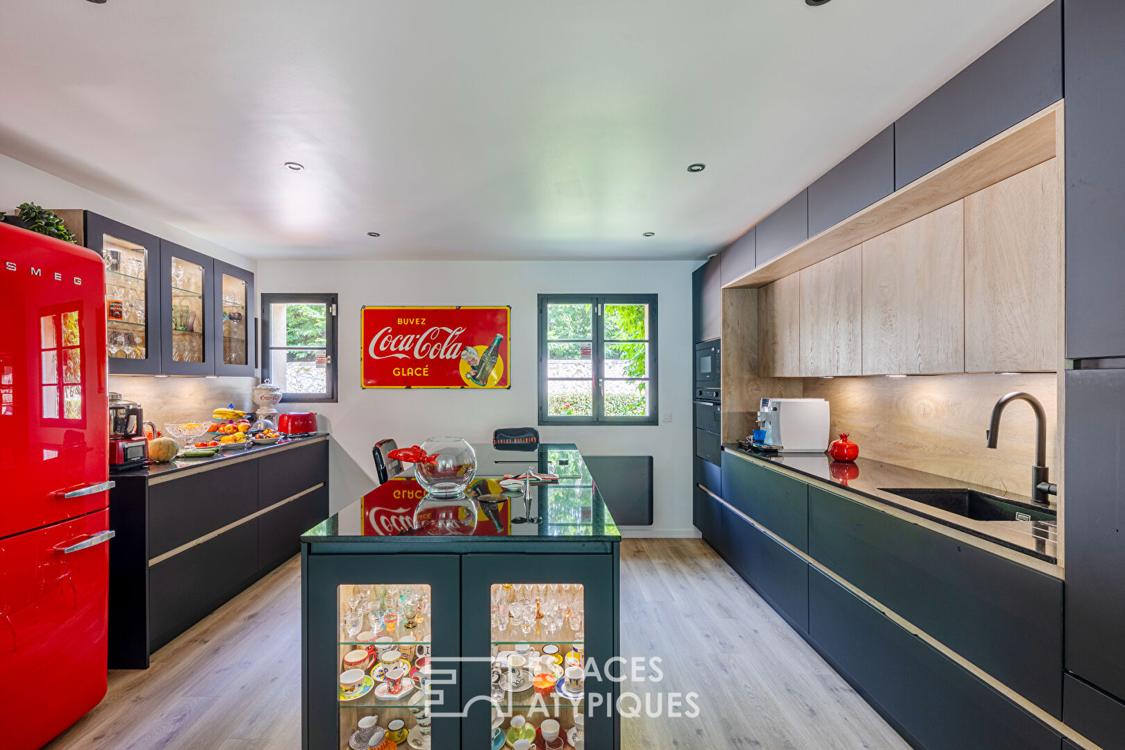 Au coeur de la vallée de Chevreuse, cette maison familiale de plus de 200 m², récemment rénovée dans un style contemporain et chaleureux, offre un cadre unique où nature et confort s'accordent en parfaite harmonie. Implantée au calme d'une impasse avec accès sécurisé, sur un terrain paysager de 1 000 m² , elle séduit par ses volumes baignés de lumière, ses prestations soignées et ses espaces conçus pour la convivialité. Dès l'entrée, un vaste salon/salle à manger s'ouvre sous une verrière inondant la pièce de lumière et offrant une vue apaisante sur le jardin. Une élégante suite parentale complète le rez-de-chaussée. L'étage accueille quatre chambres confortables, une salle de douche et un espace modulable pouvant servir de salle de jeux, bureau ou coin détente. Un garage double, un jacuzzi extérieur et de belles terrasses au bord de l'eau prolongent les moments de plaisir en toutes saisons. A deux pas du centre de Chevreuse et de ses commerces, cette maison bénéficie d'un cadre préservé tout en restant proche des écoles, des commodités et des axes de transport vers Paris. CLASSE ENERGIE : C / CLASSE CLIMAT : A Montant moyen estimé des dépenses annuelles d'énergie pour une usage standard, établi à partir des prix de l'énergie au 01/01/2021 entre 2520 euros et 3480 euros Contact : Hiba PROTAIS 07 60 88 34 97 RSAC : 925 249 500 VERSAILLES Hiba PROTAIS (EI) Agent Commercial - Numéro RSAC : 925249500 - Versailles.