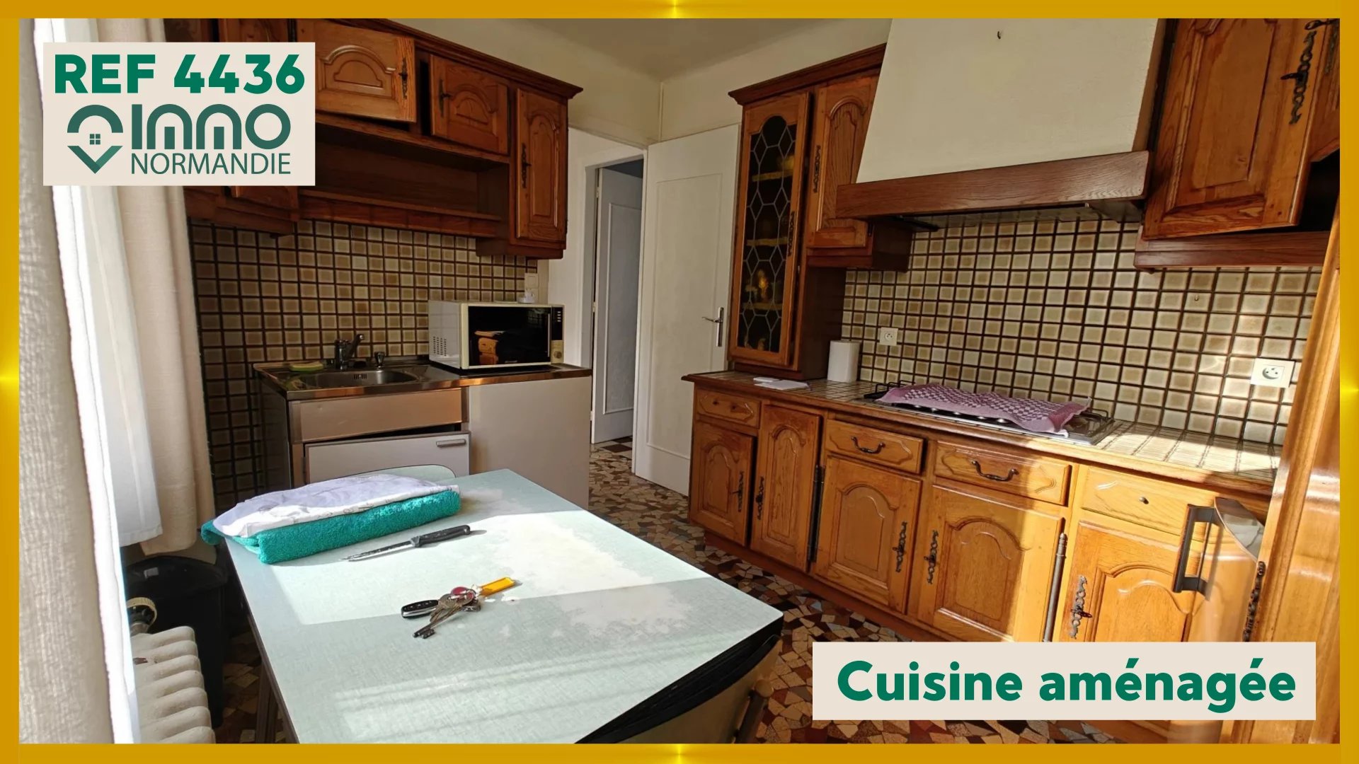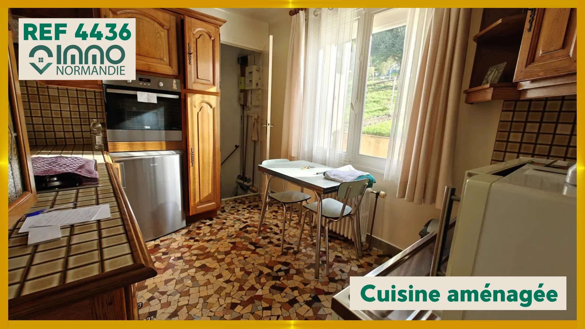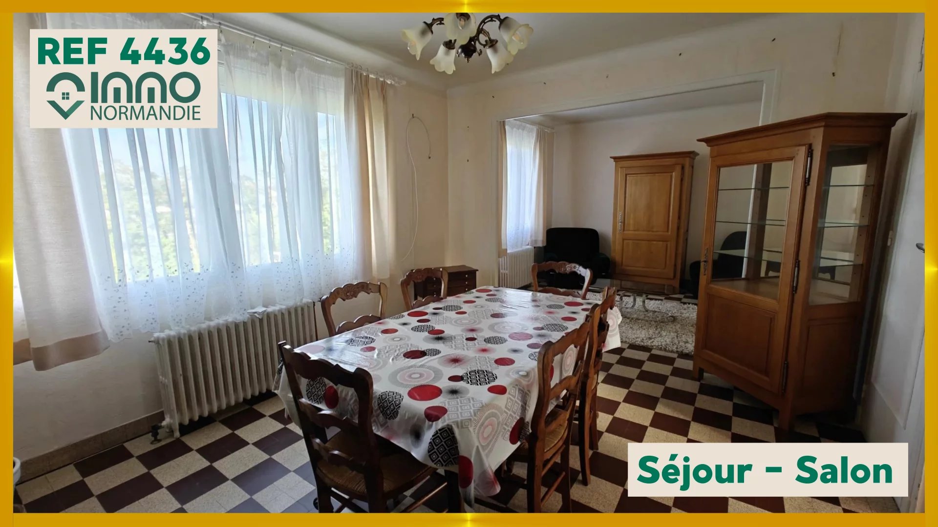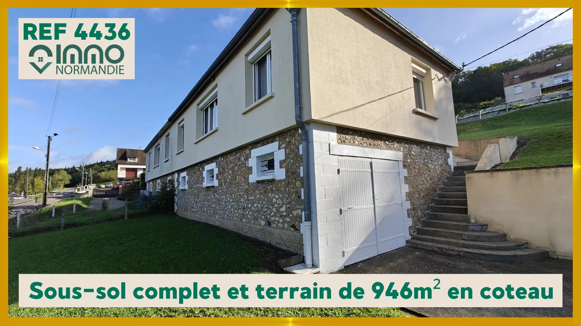 Maison proche du centre ville de Brionne de plain-pied sur sous-sol surélevé. Venez découvrir une entrée qui va desservir, un salon/séjour lumineux, cuisine aménagée, chambre, bureau/chambre d'enfant, salle de bains et WC suspendu séparé. Sous-sol complet et terrain de 946m² en coteau. Chauffage au fioul. Tout à l'égout. Survitrage bois et volets roulants électriques.