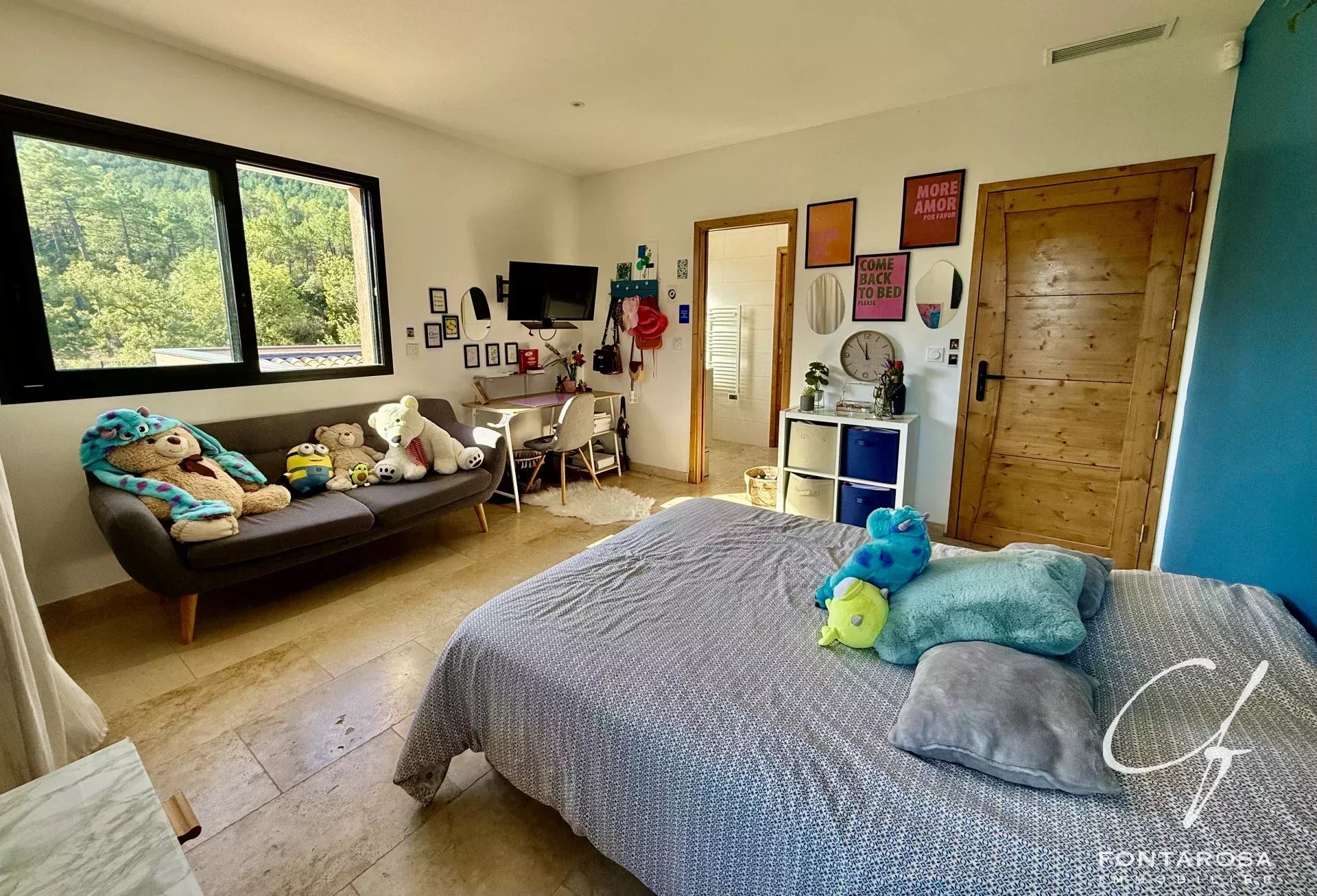 Situata ai margini della regione protetta dell'Estérel, questa sontuosa proprietà di nuova costruzione unisce la tranquillità assoluta alla privacy totale. Progettata con volumi generosi e caratteristiche di lusso, offre un ambiente di vita lussuoso nel cuore della natura.