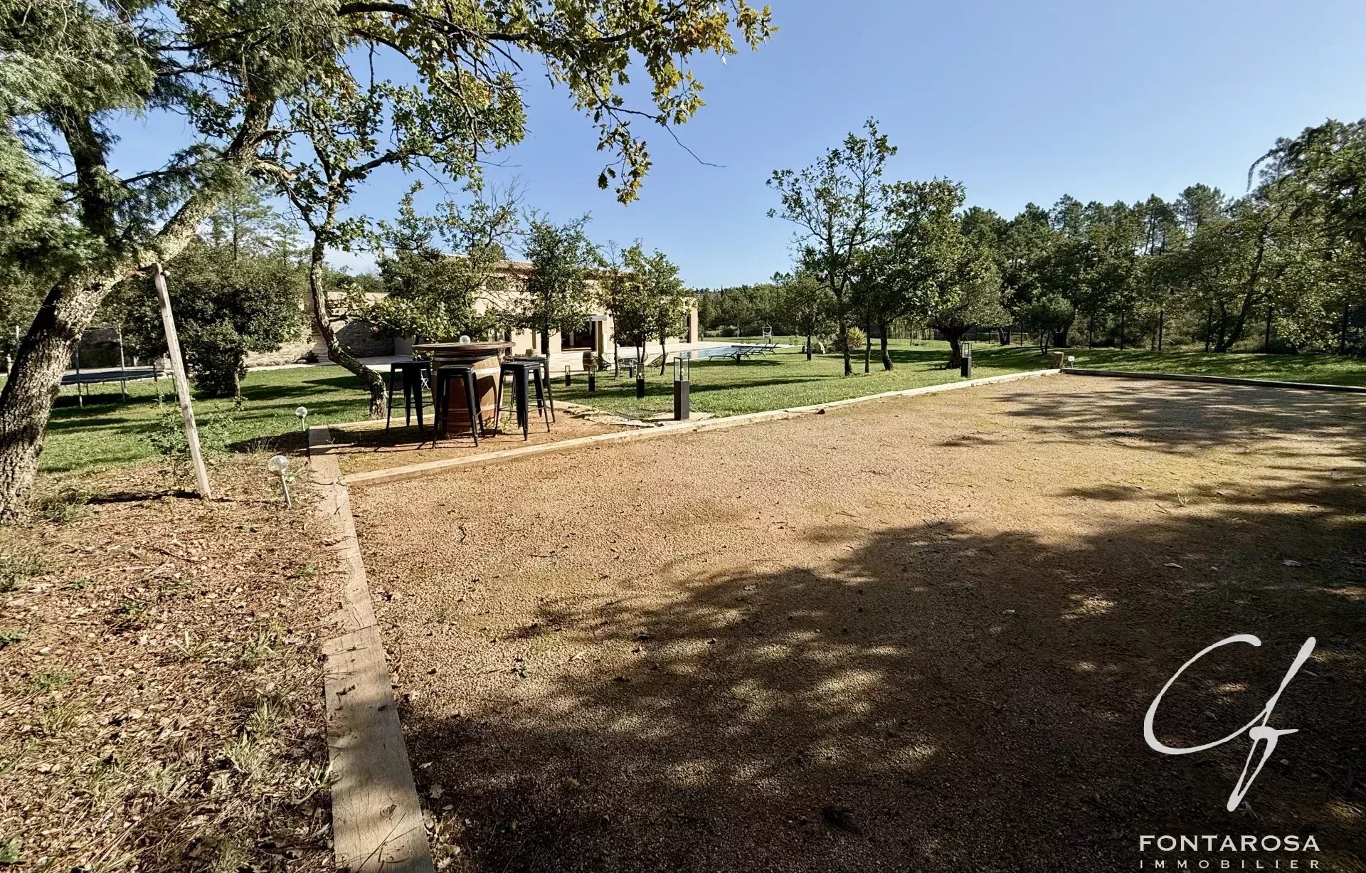 Immersa in un contesto privilegiato e appartato, questa proprietà emana lusso e serenità. Vera oasi di pace, si trova nel vicino entroterra, a soli 10 minuti a piedi dall'incantevole villaggio di Bagnols-en-Forêt, con i suoi ristoranti sotto i platani e le sue viste panoramiche. Le spiagge di Saint-Raphaël sono a soli 20 minuti di auto e offrono un perfetto equilibrio tra natura, tranquillità e accesso ai servizi della costa.