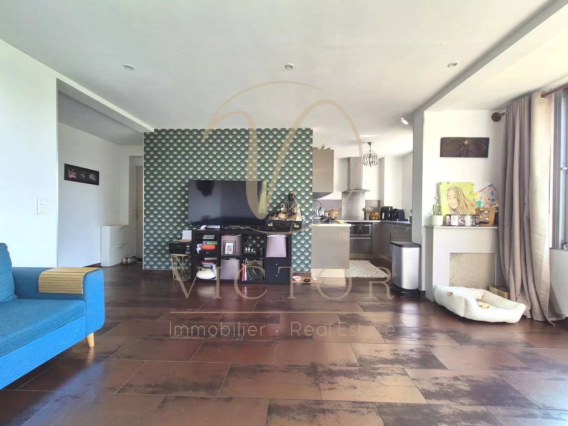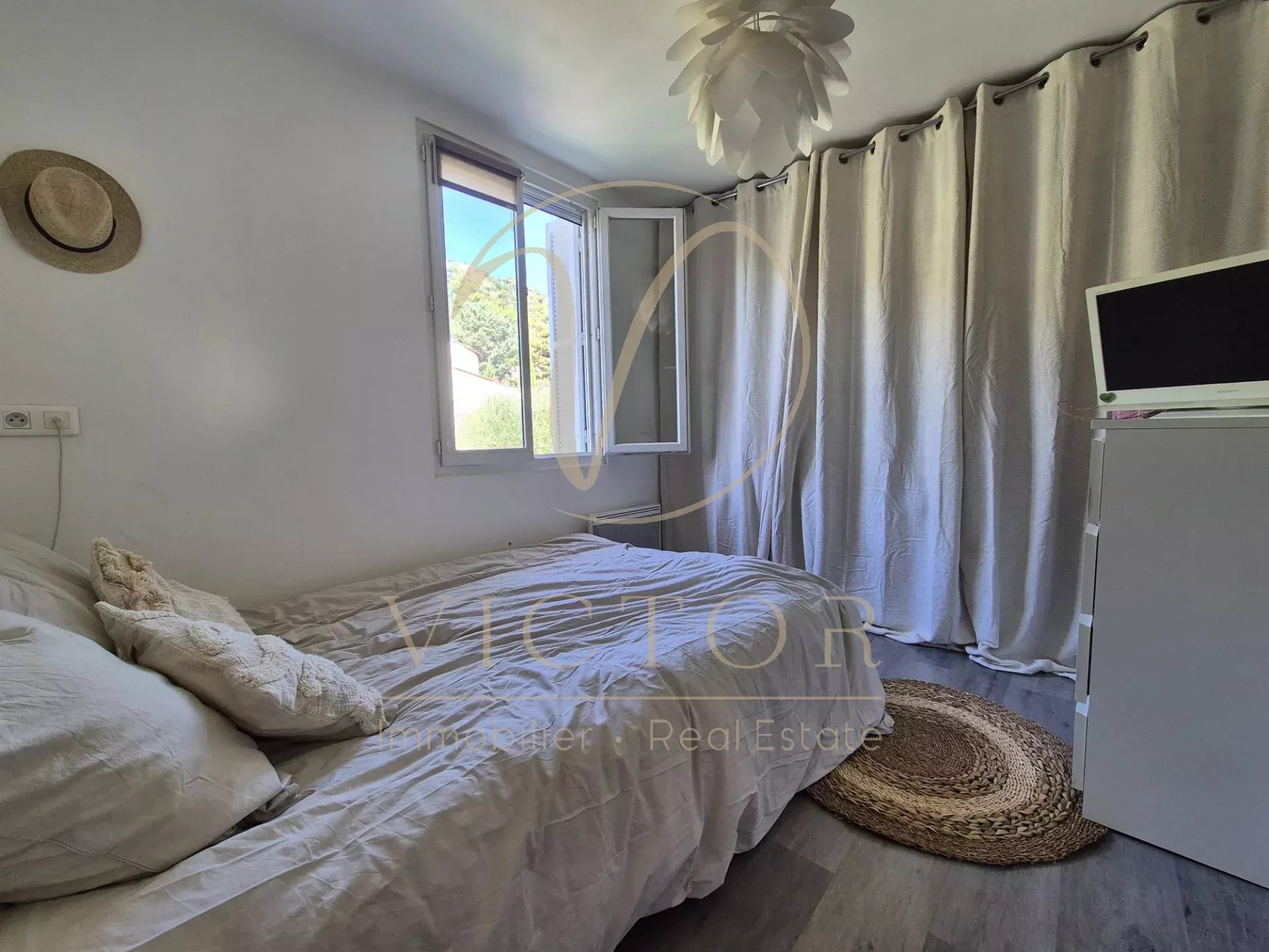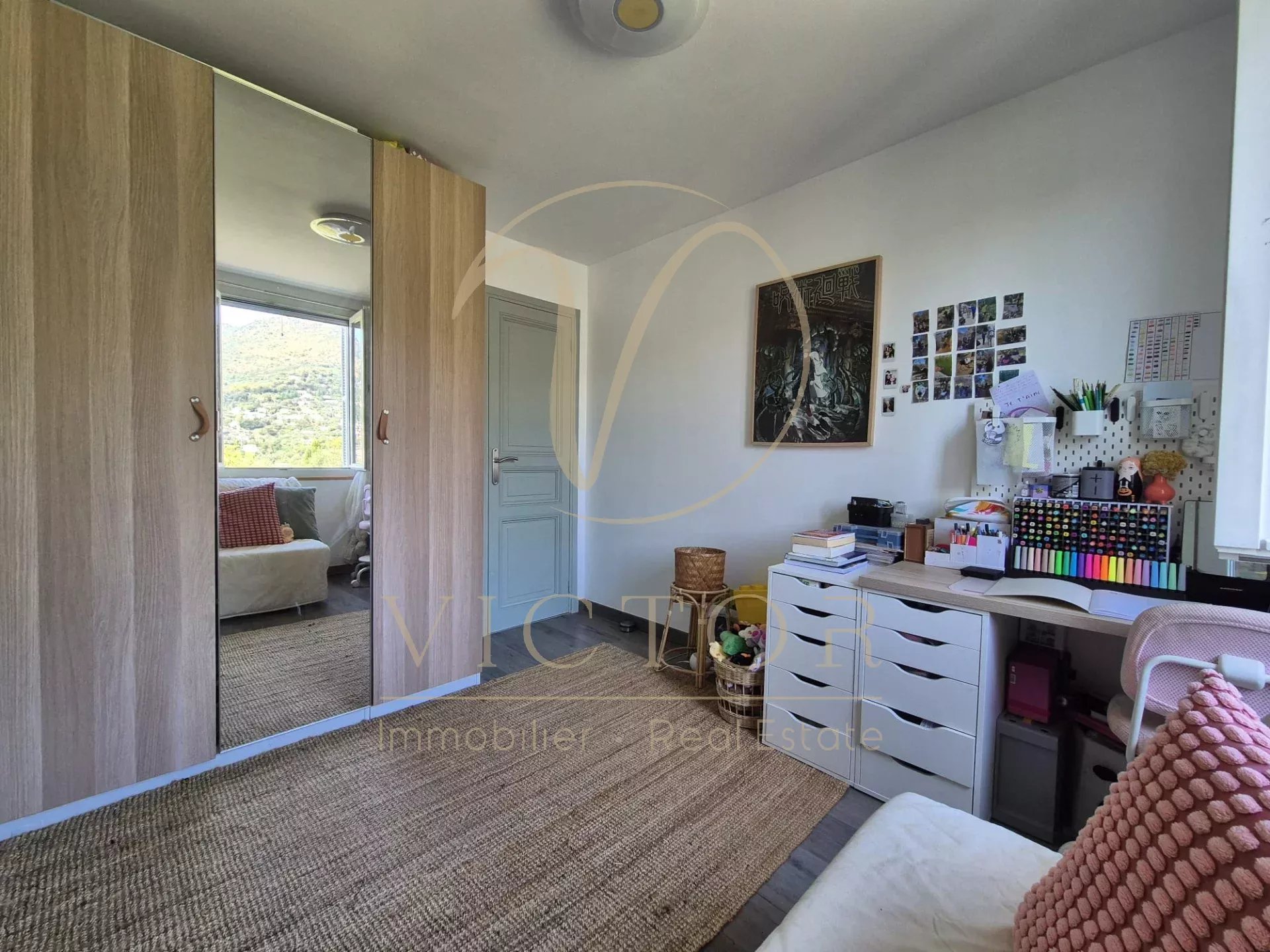 Dans une copropriété familiale. 3ème et Dernier étage, sans ascenseur, 3p de 56m² bien agencé et en bon état avec vue dégagée sur les collines sans vis à vis et baigné de lumière. Triple exposition: SUD, OUEST et NORD Composé comme suit: Entrée avec placards, séjour avec cuisine ouverte, 2 chambres, une salle de douche avec WC, une cave et 2 places de parkings privatives extérieurs. Au dessus de l'appartement, 61m² de combles avec 4,25m² au dessus de 1m80, à exploiter selon les besoins, poue ceux qu'ils veulent une terrasse, une terrasse tropézienne est faisable. Village de Falicon à 2min, bus et ramassage scolaires à proximité immédiate. Climatisation, porte blindée. Faibles charges 17€/mois - Foncier 850€. Honoraires d'agence à la charge du vendeur - les informations sur les risques auxquels ce bien est exposé sont disponibles sur le site Géorisques : georisques.gouv.fr