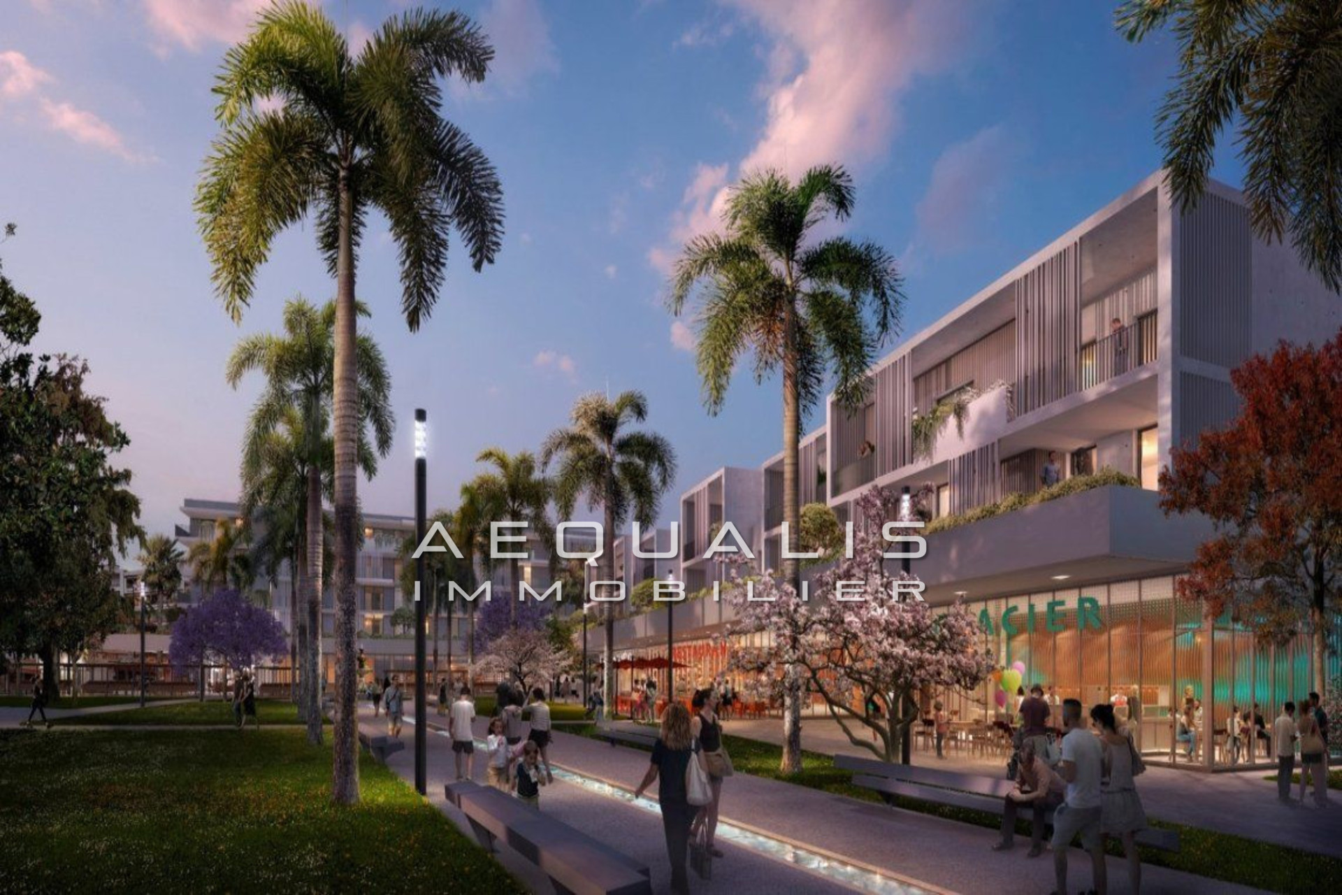 Chaque bâtiment, avec ses toitures végétalisées et façades agrémentées de jardinières, offre un équilibre entre ville et nature. Les terrasses spacieuses, ornées de jardinières et protégées par des brise-soleil, offrent une transition douce entre l'intérieur et l'extérieur.