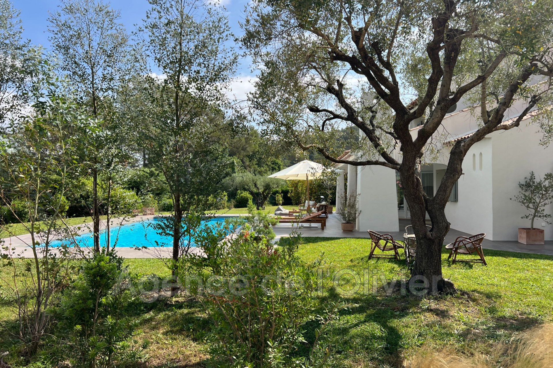 Garage attenant et un local piscine. À l'extérieur, le jardin paysager d'environ 3 000 m² complanté d'oliviers centenaires et d'essences méditerranéennes accueille une piscine.
