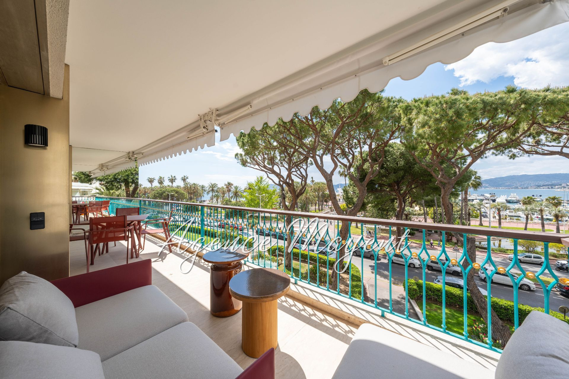Une superbe terrasse ensoleillée offre une très belle vue sur la mer et port.