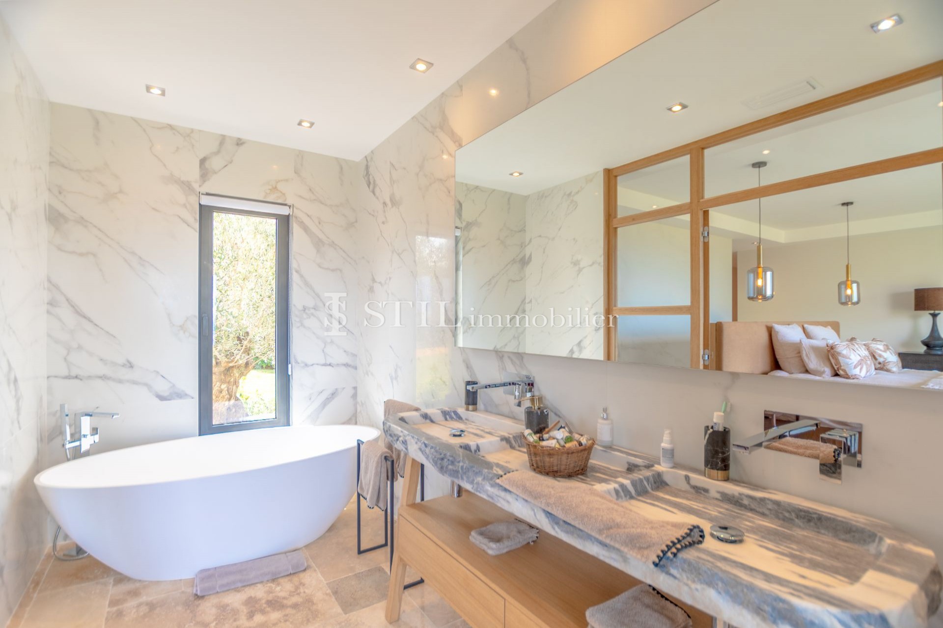 Location saisonnière Sainte-Maxime. Surplombant la baie de Sainte-Maxime. Splendide villa contemporaine avec vue mer panoramique. Cette propriété se compose de 4 chambres avec dressing et salle de bains. Vaste séjour salle à manger ouvrant sur terrasse et patio avec fontaine, cuisine équipée et chambre froide. Climatisation dans toute la villa. Piscine chauffée et pool house équipé. Hammam, salle de sport, cave à vins. Garage fermé pour 5 voitures.