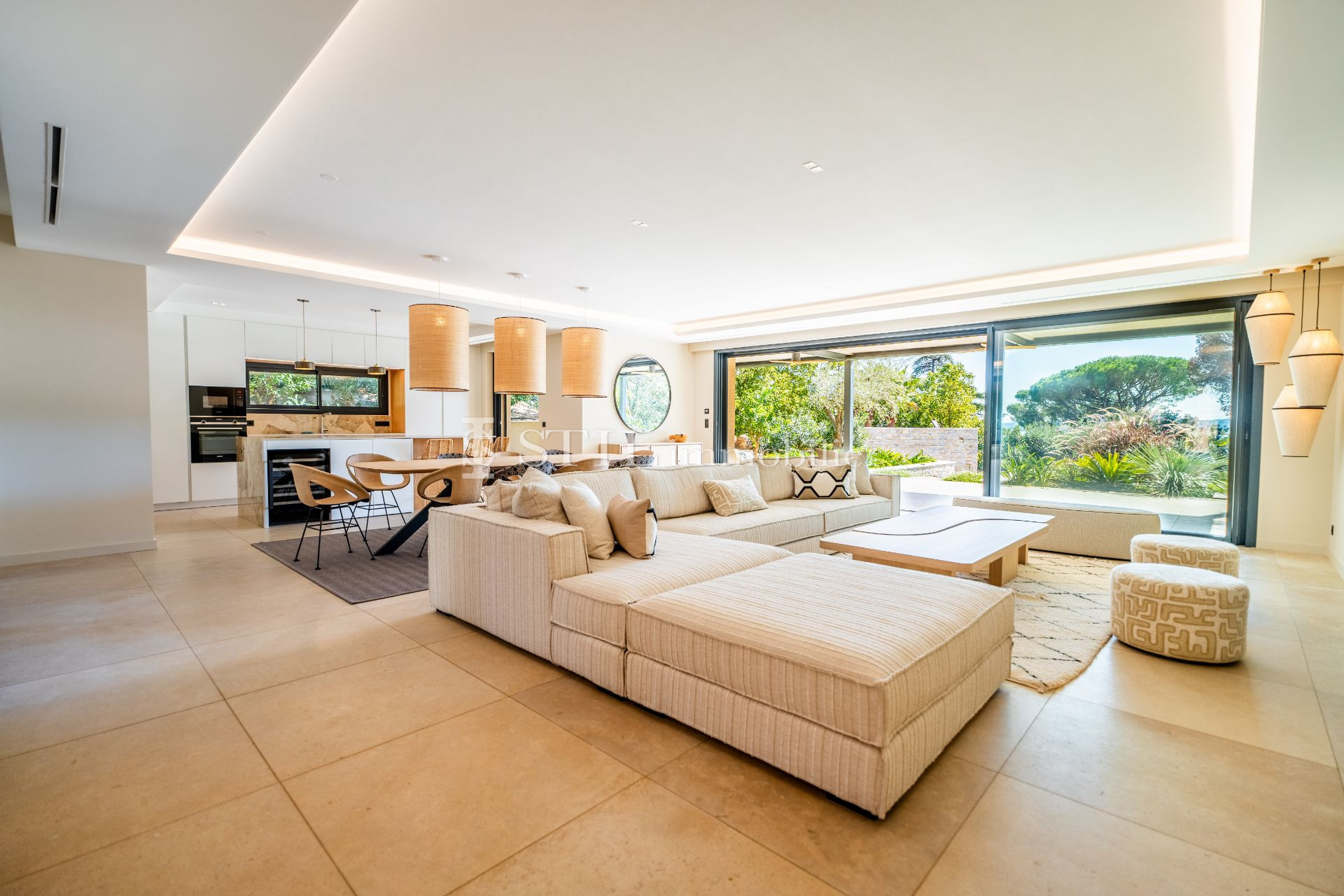 Vente villa Sainte-Maxime. Dans le secteur prisé du Sémaphore, à proximité du centre-ville, superbe villa neuve avec une magnifique vue sur la mer. Elle offre : hall de réception, vestiaire et wc invités, vaste séjour ouvrant sur terrasse, cuisine us équipée, 5 suites avec salle d'eau et dressing, bureau, cave à vins et grand garage. Une piscine agrémente le jardin joliment arboré.